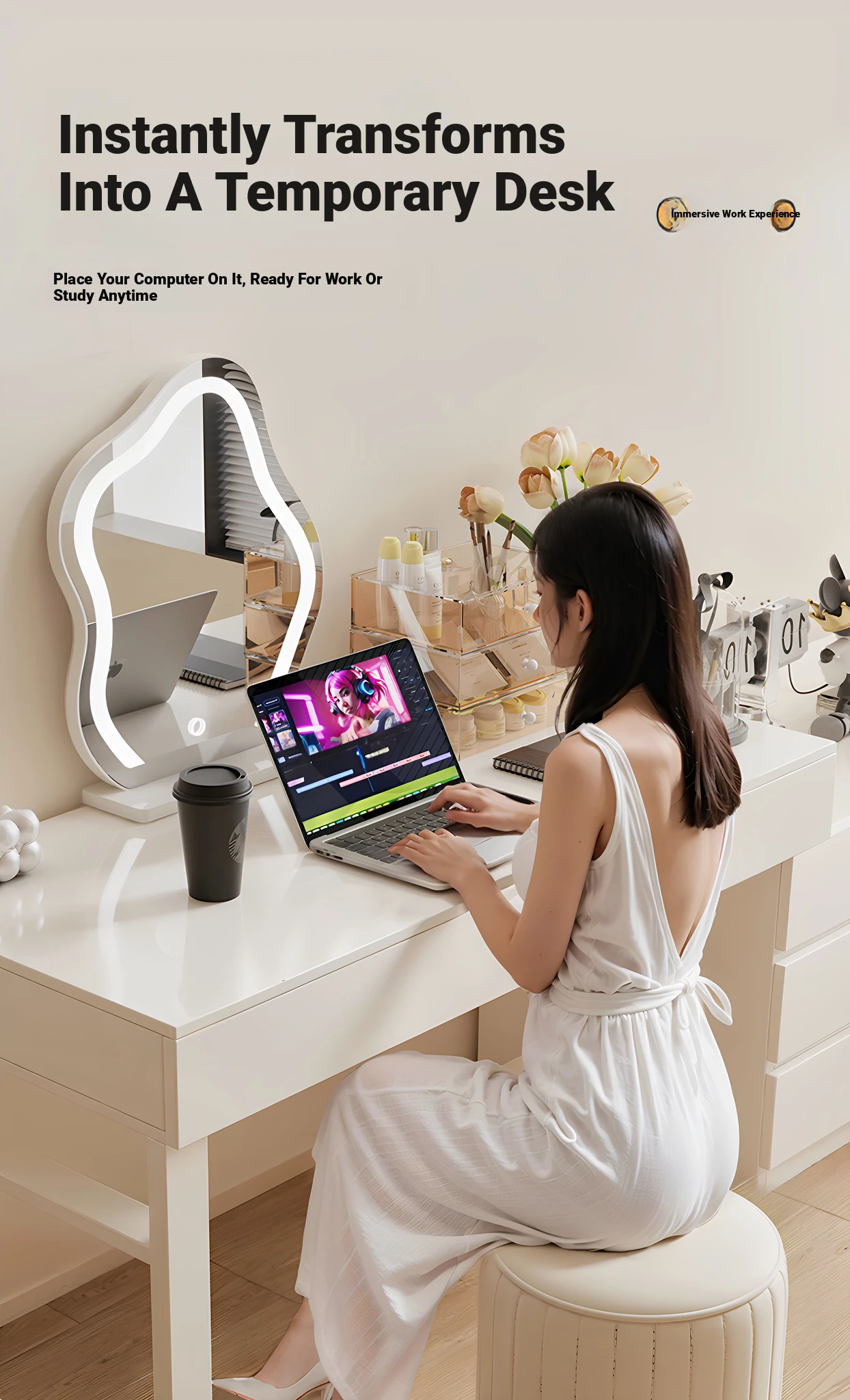 2025 New Modern Corner Vanity Dresser - Sleek and Stylish Makeup Desk, Perfect for Bedrooms and Home Offices, Versatile as a Computer Desk or Makeup Station