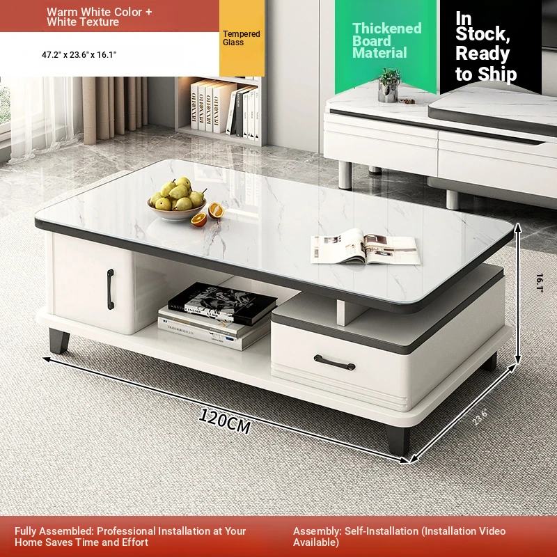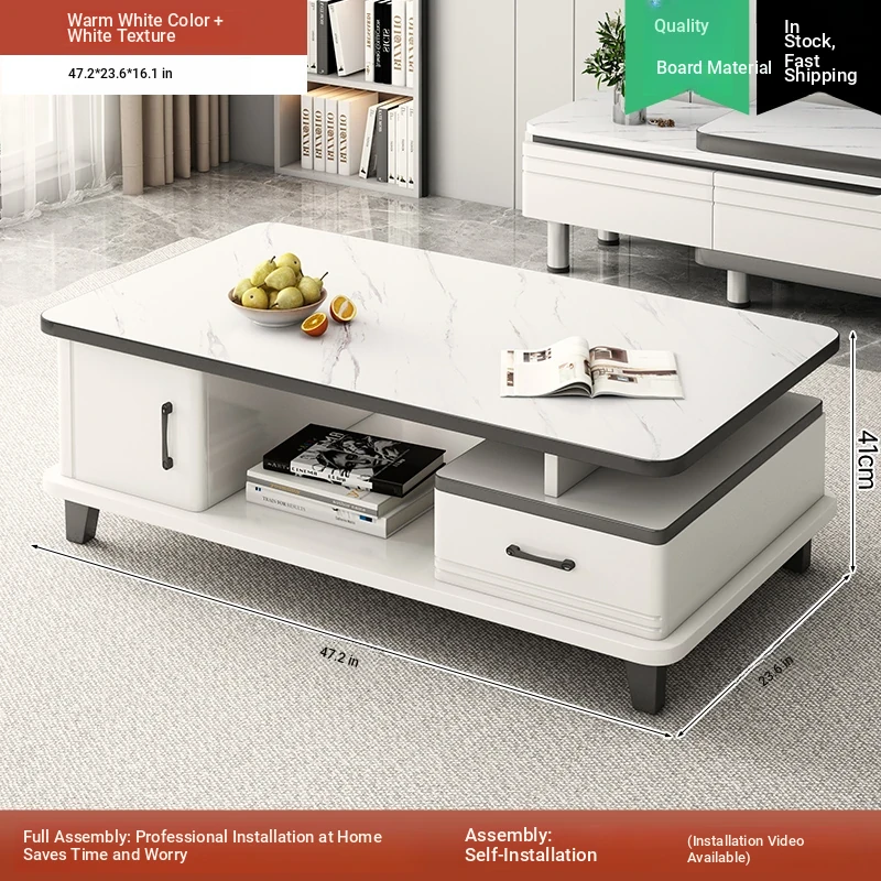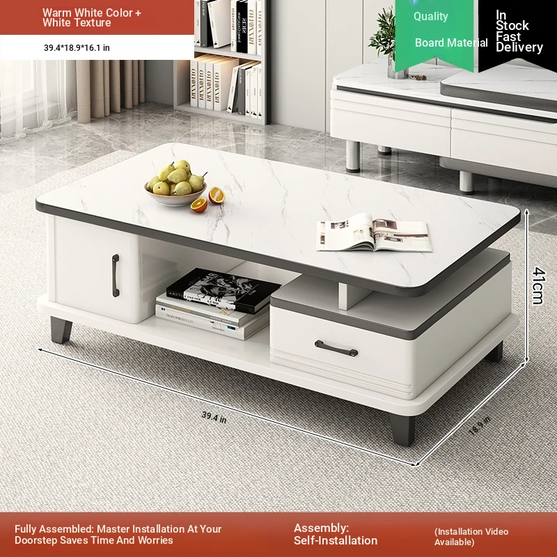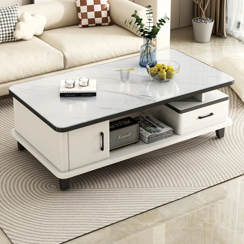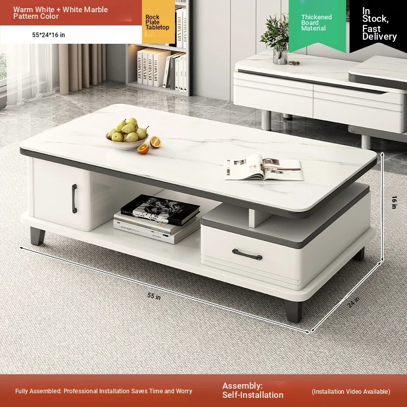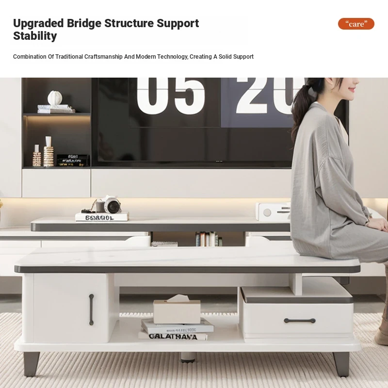 2025 New Modern Minimalist Coffee Table Set for Small Living Rooms - High-End Ceramic Top TV Stand and Coffee Table Combination