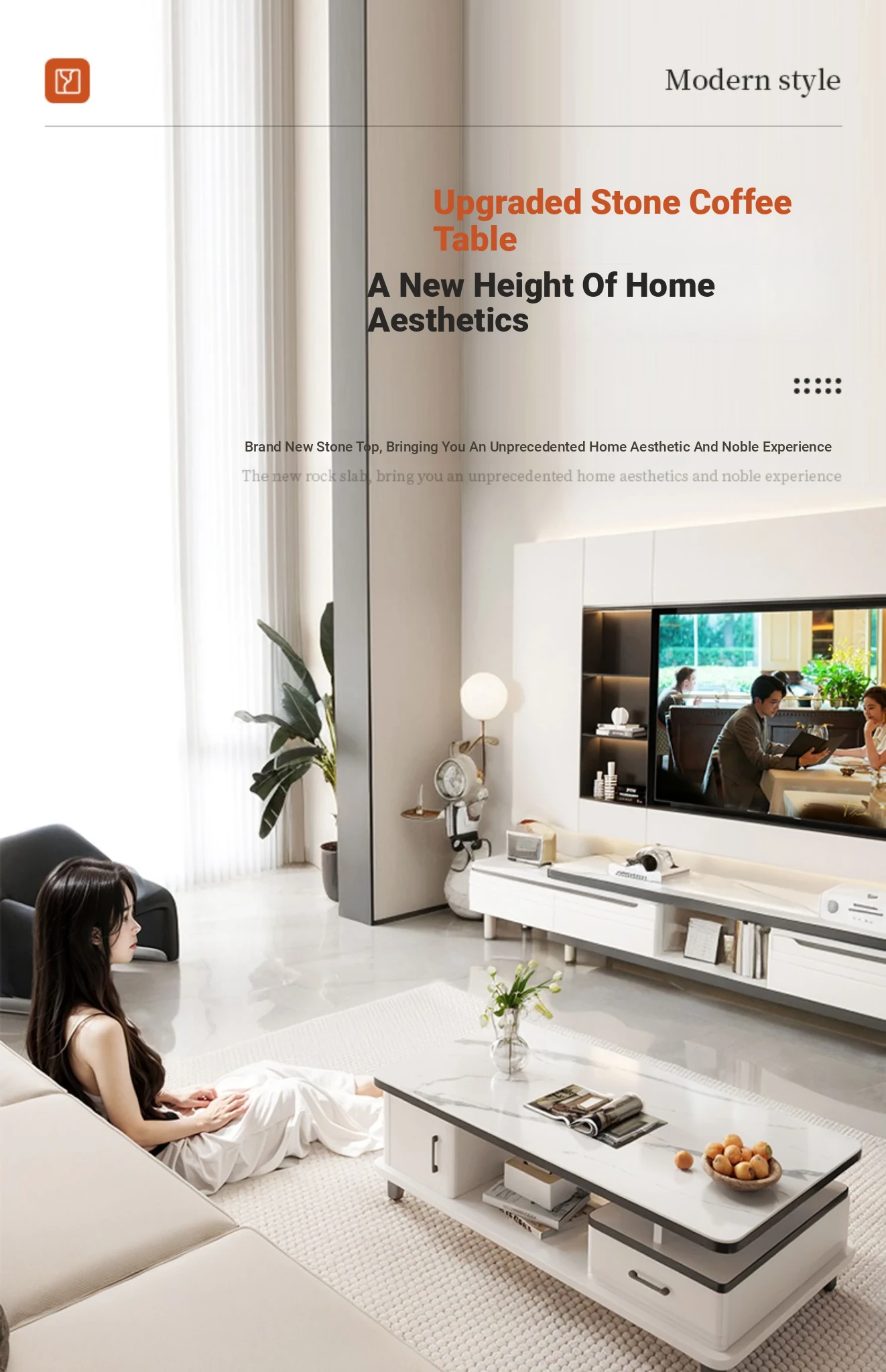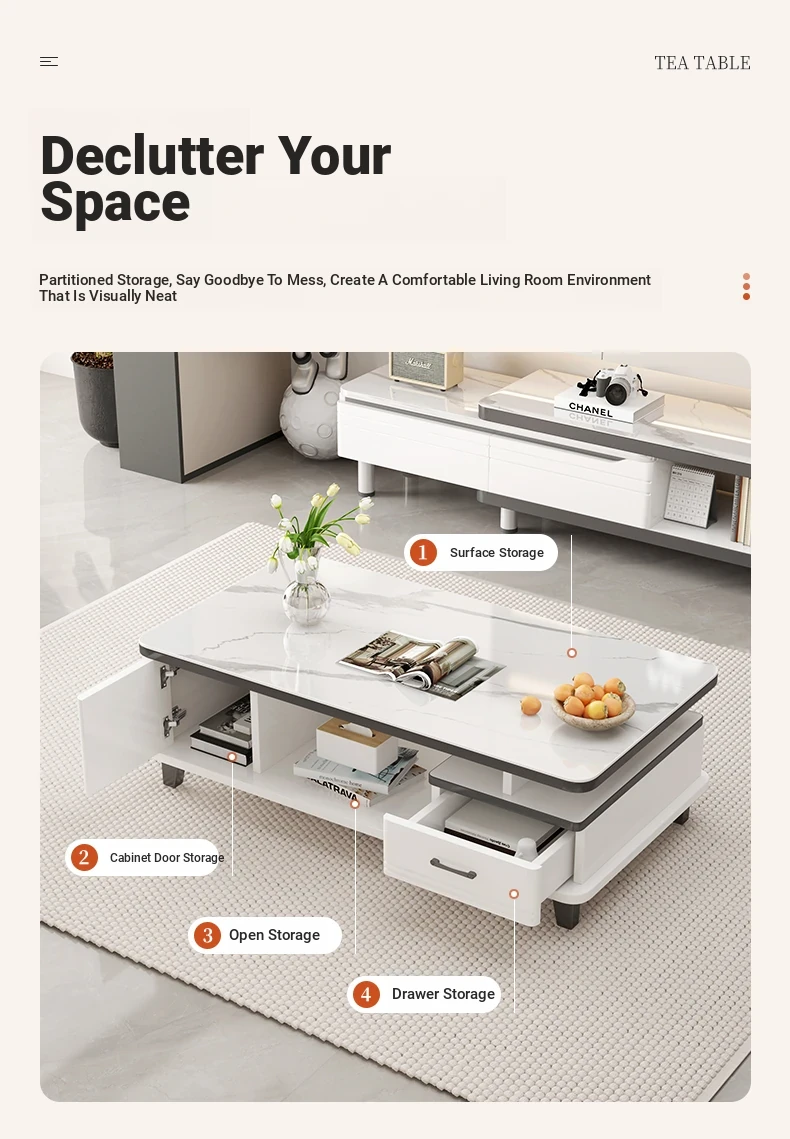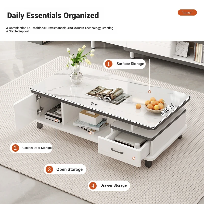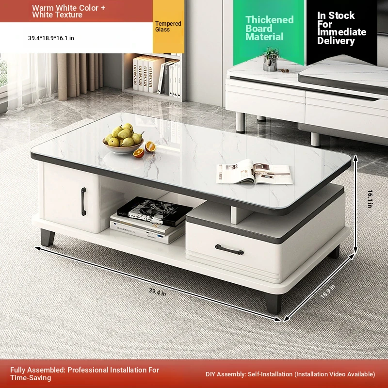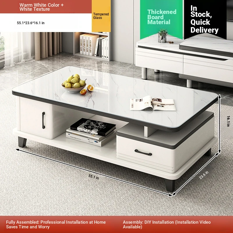 2025 New Modern Minimalist Coffee Table Set for Small Living Rooms - High-End Ceramic Top TV Stand and Coffee Table Combination
