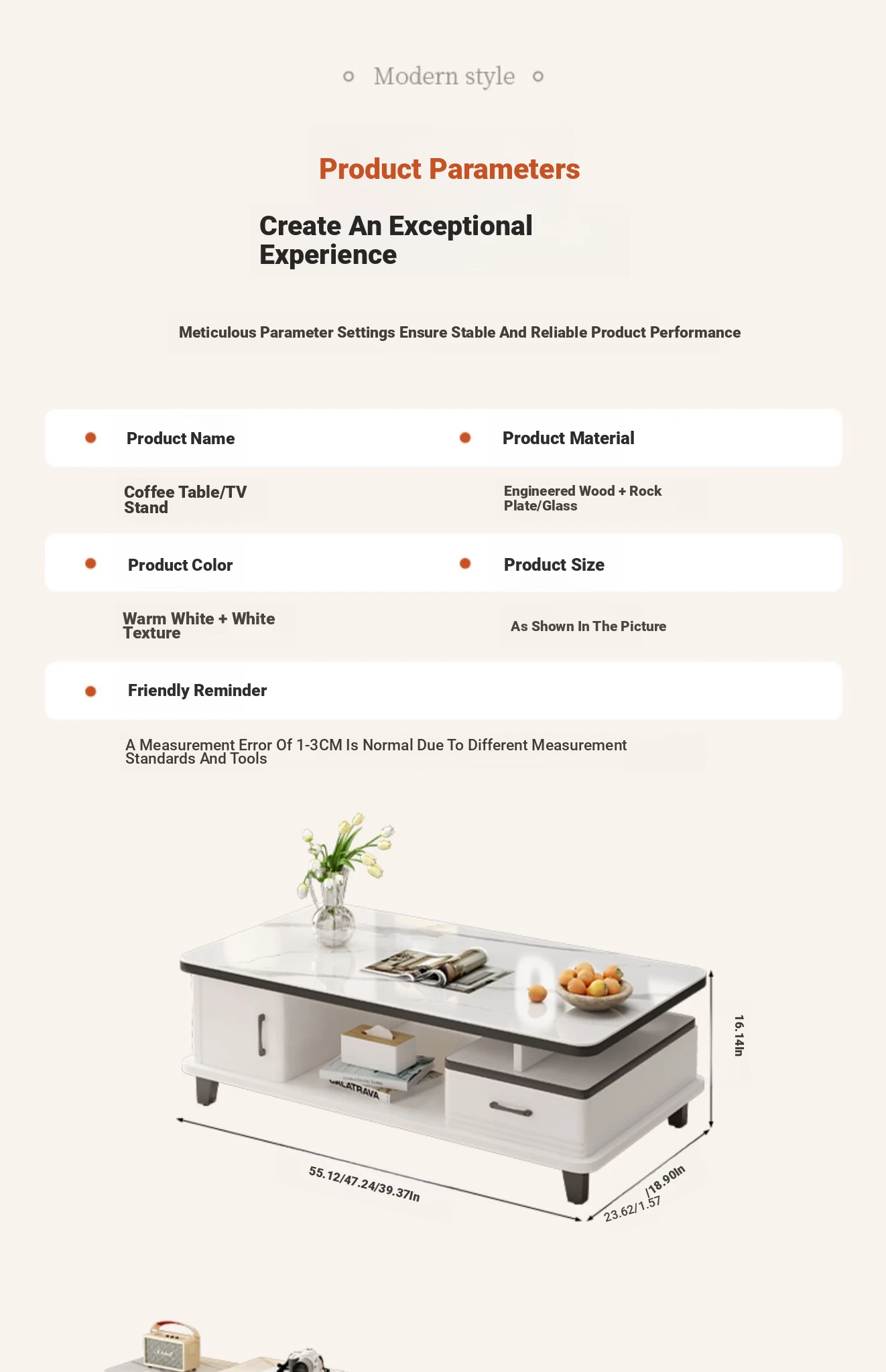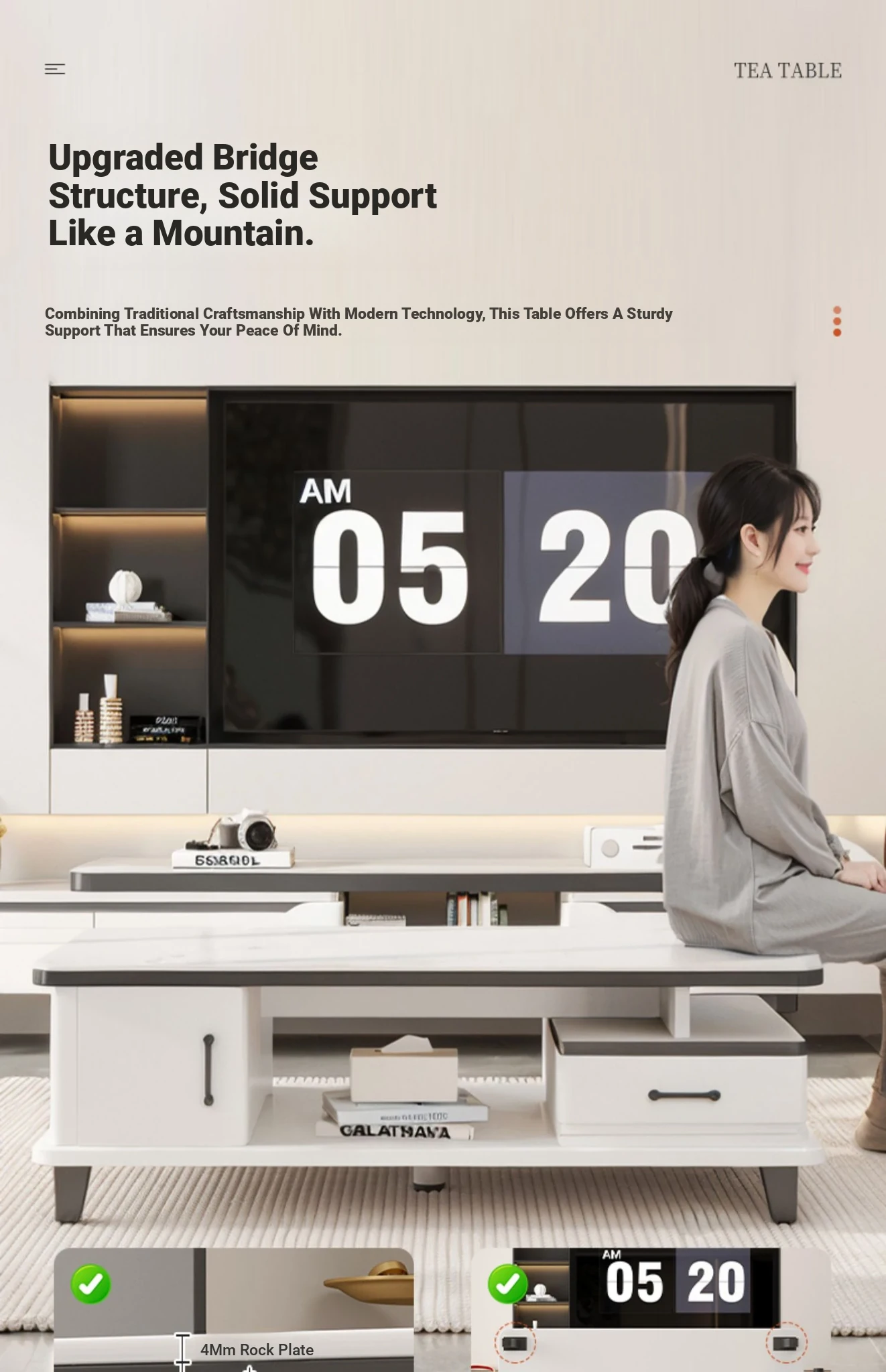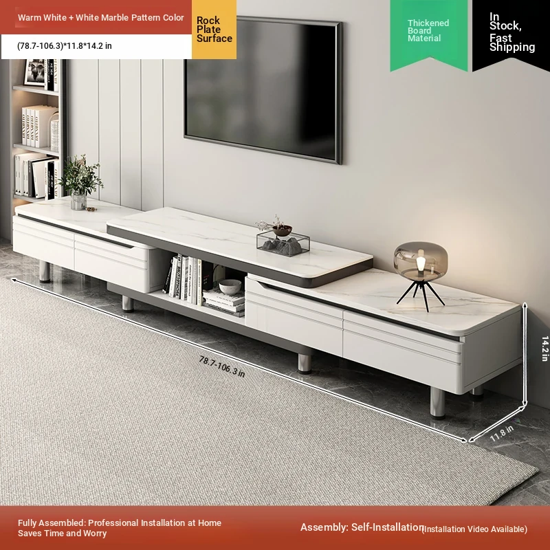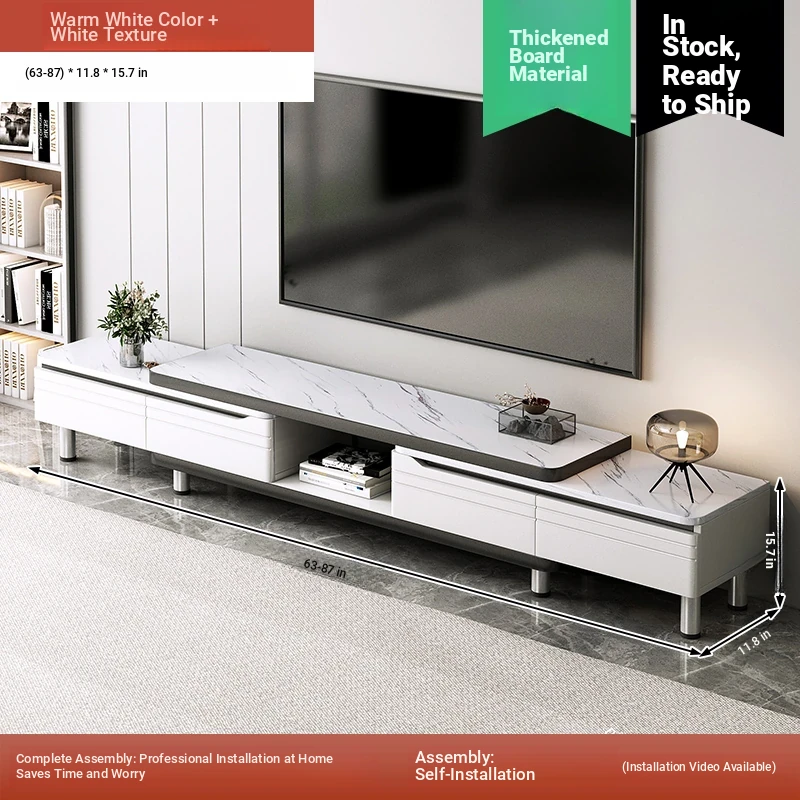 [Rock plate TV cabinet] retractable (160-220)in warm white + white texture