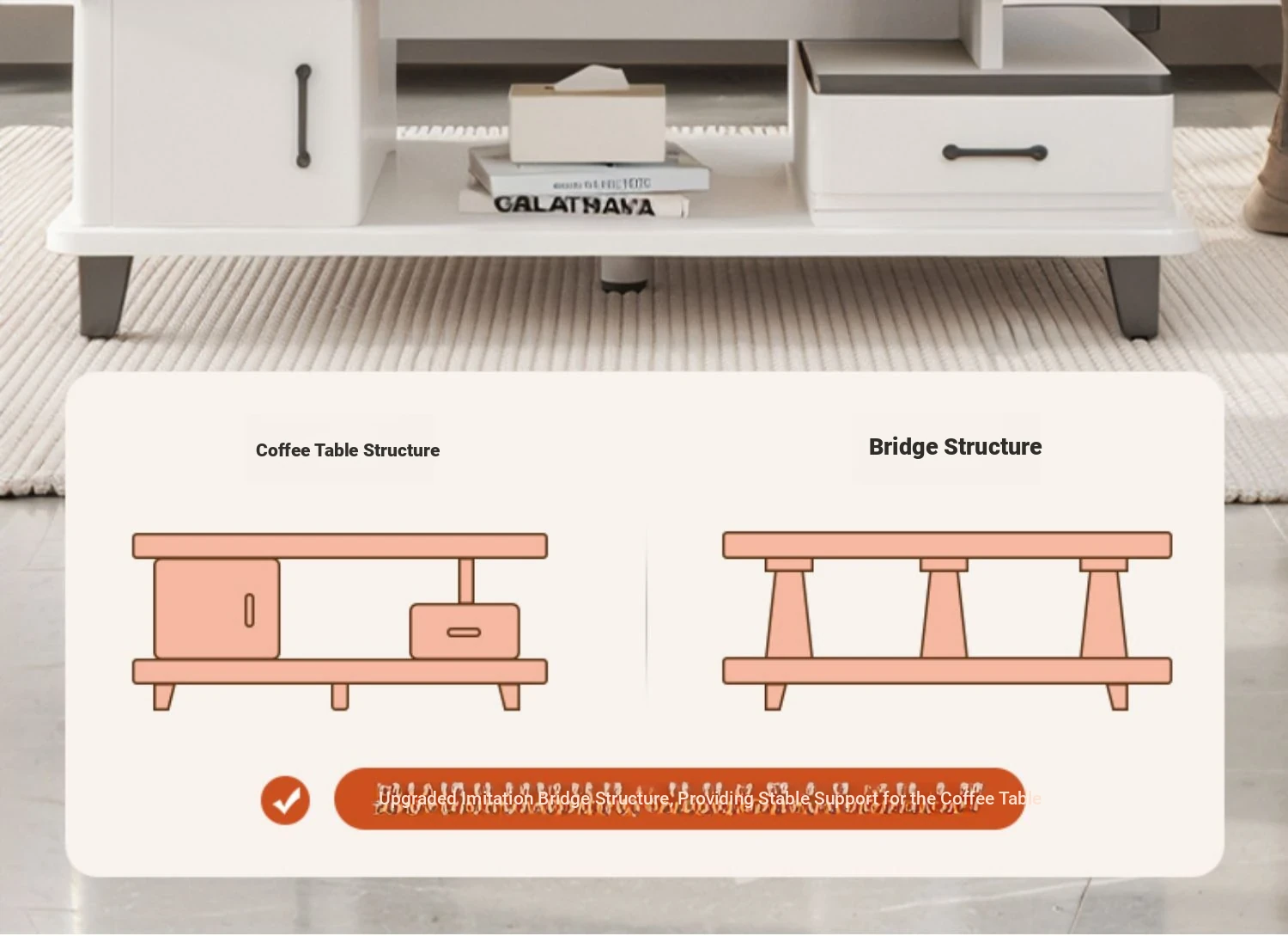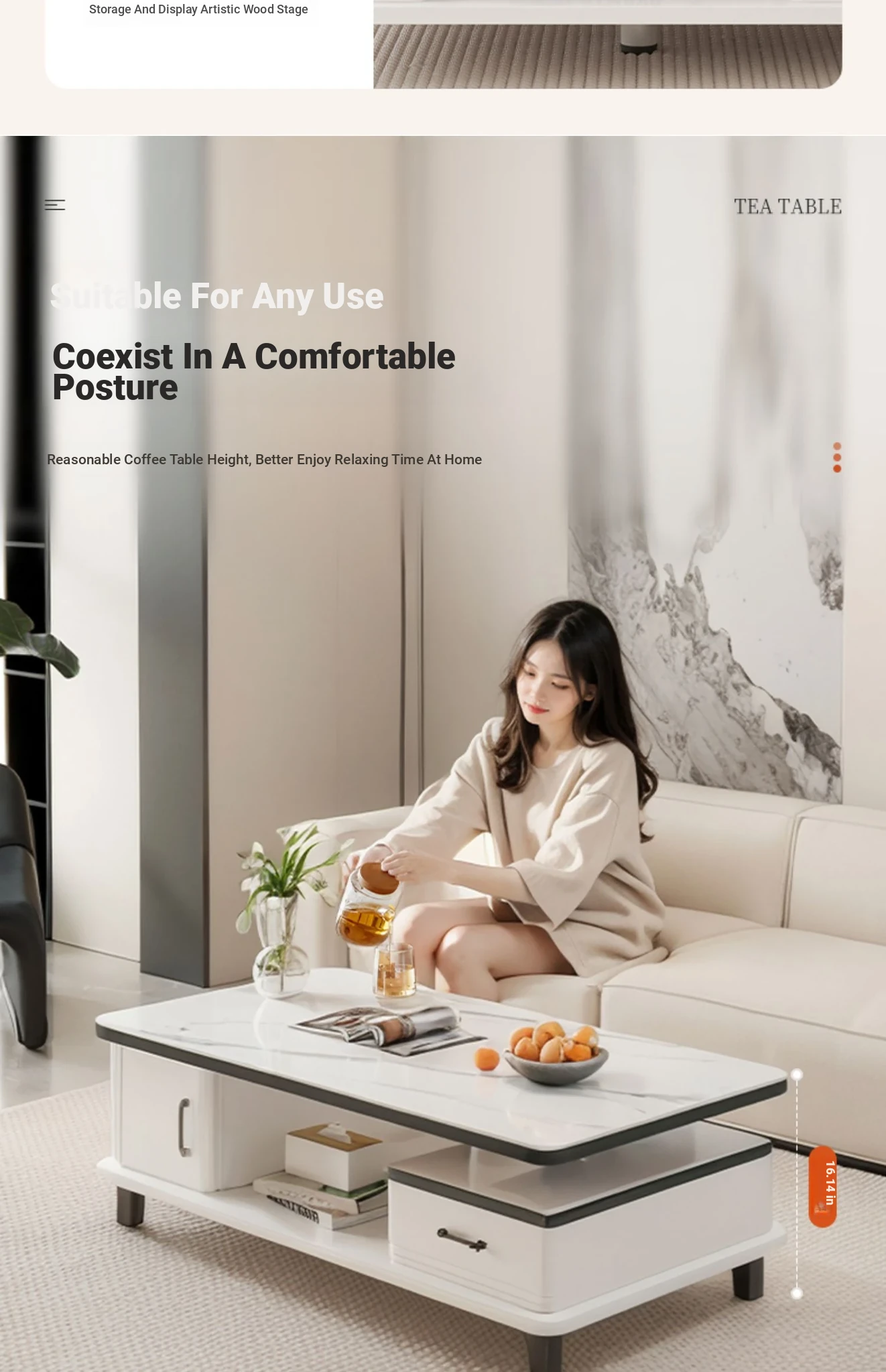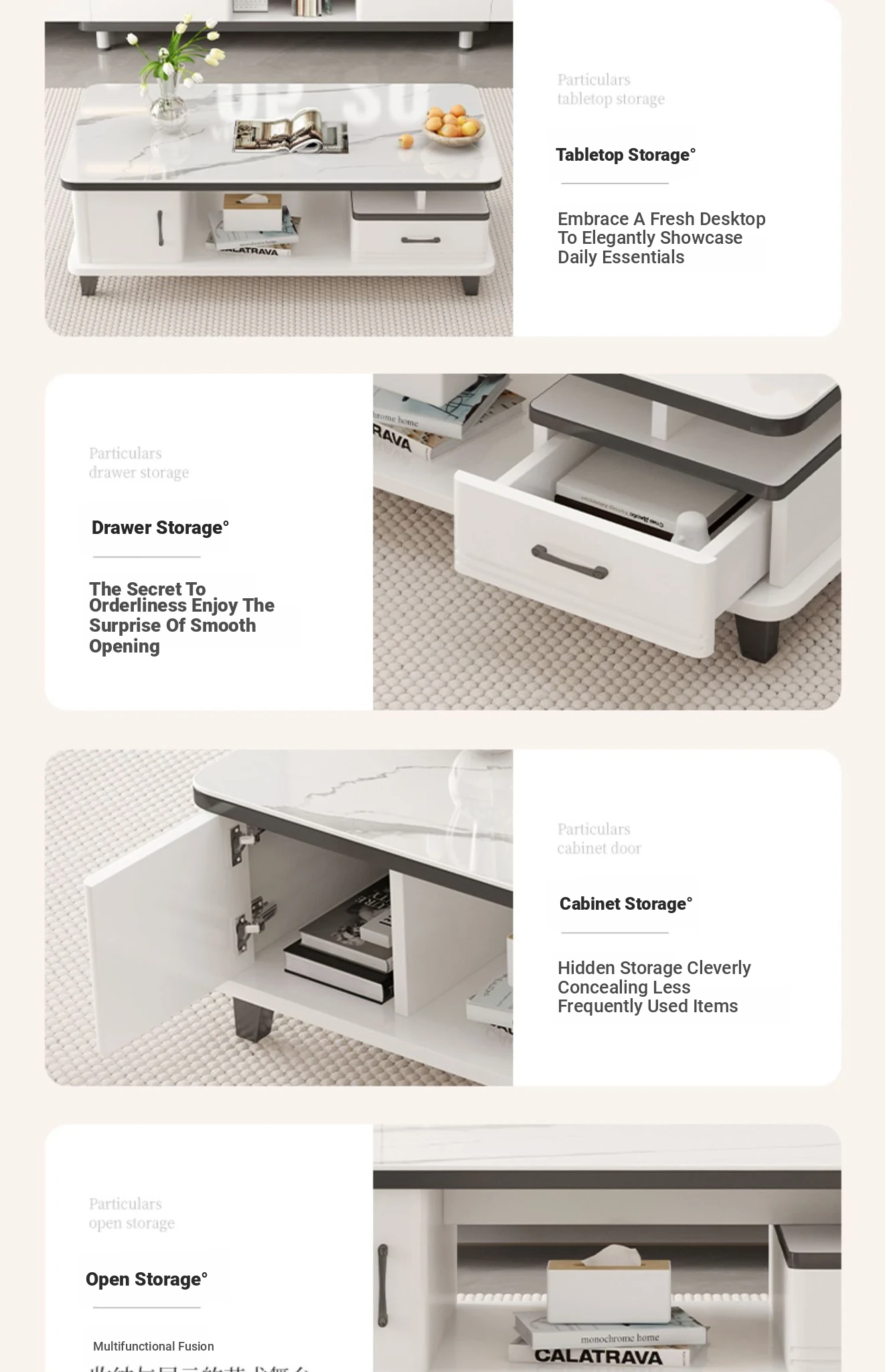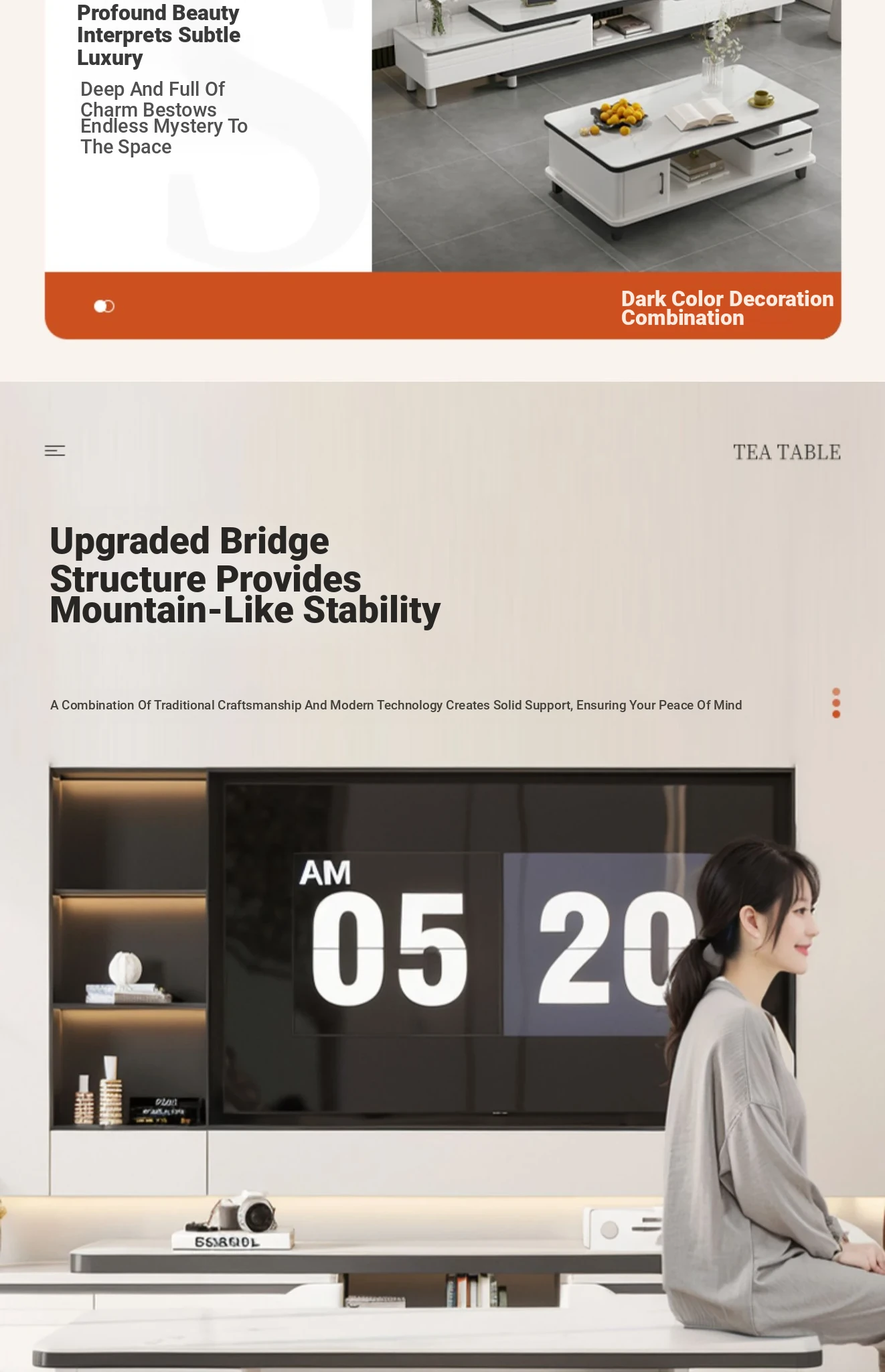 [Rock plate TV cabinet] retractable (160-220)in warm white + white texture
