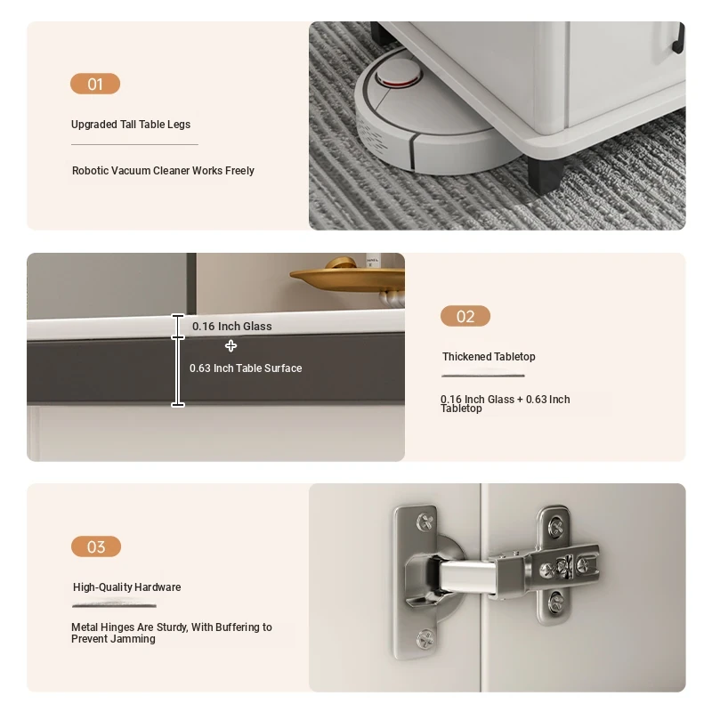[Rock Plate TV Cabinet] Retractable (200-270)in Warm White + White Texture