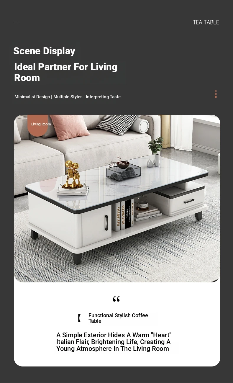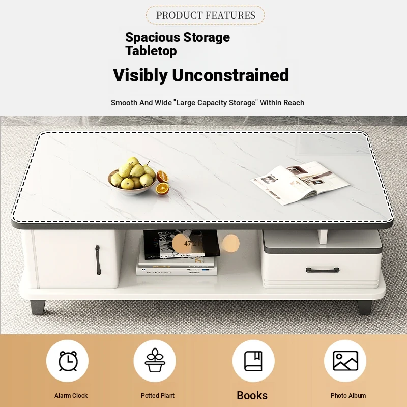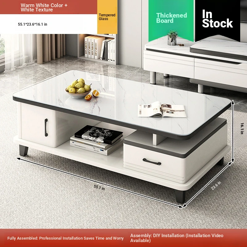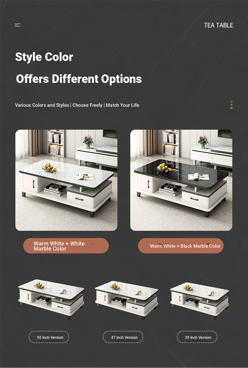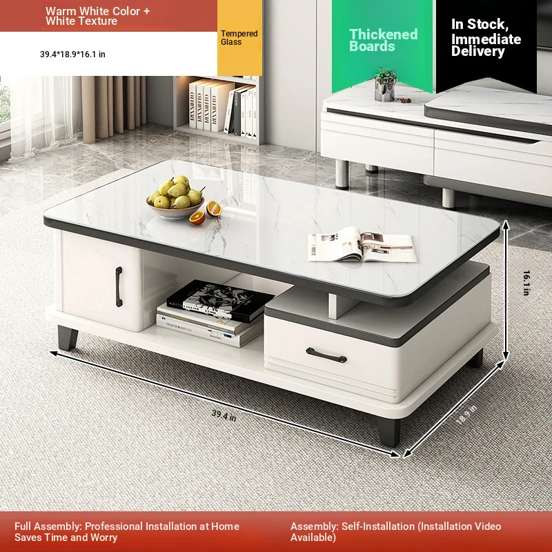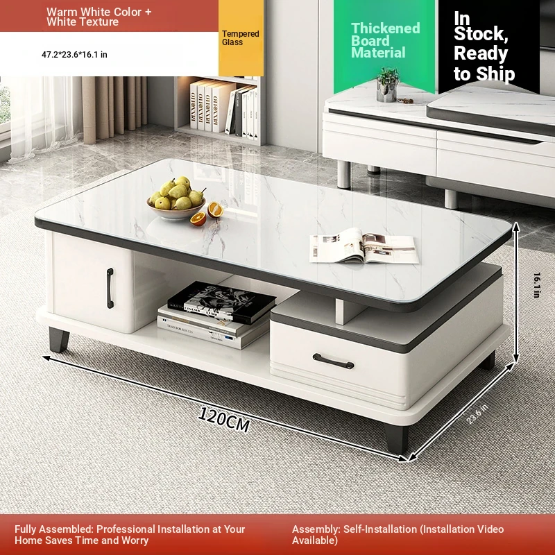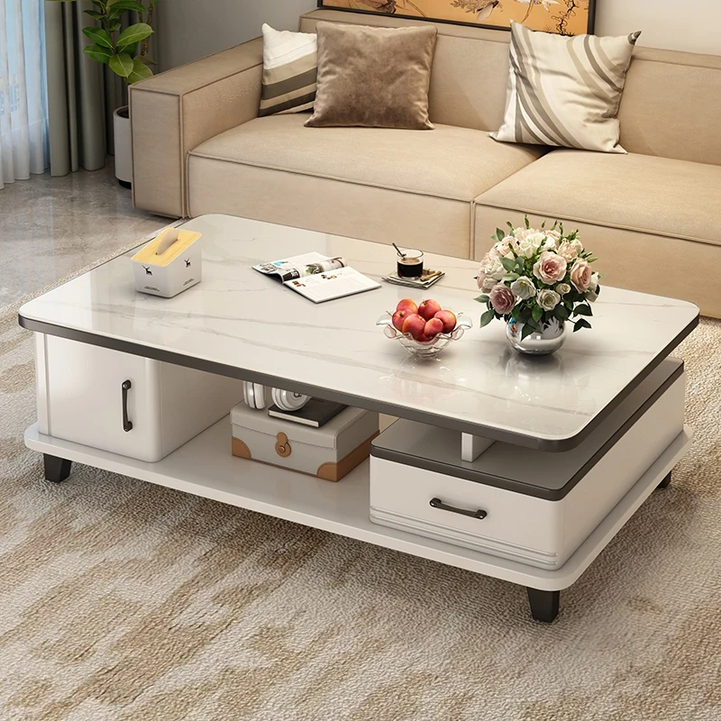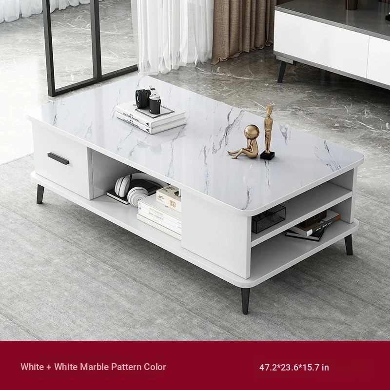 2025 New Modern Minimalist Square Coffee Table Set with TV Stand for Small Living Rooms - Stylish Rock Plate Design for Home Use