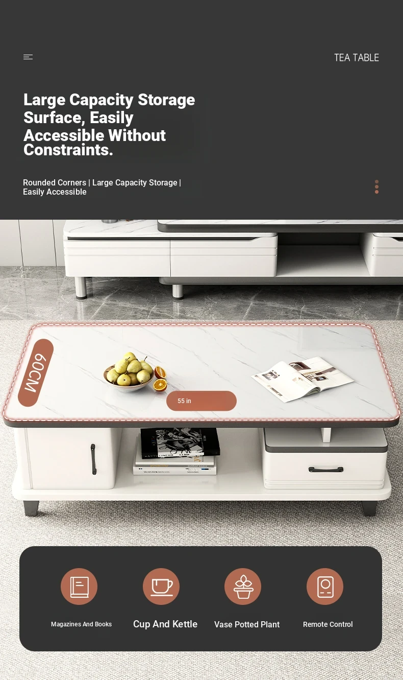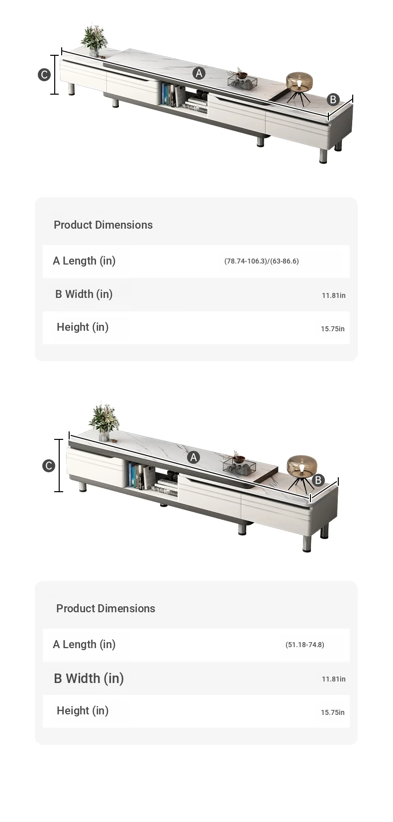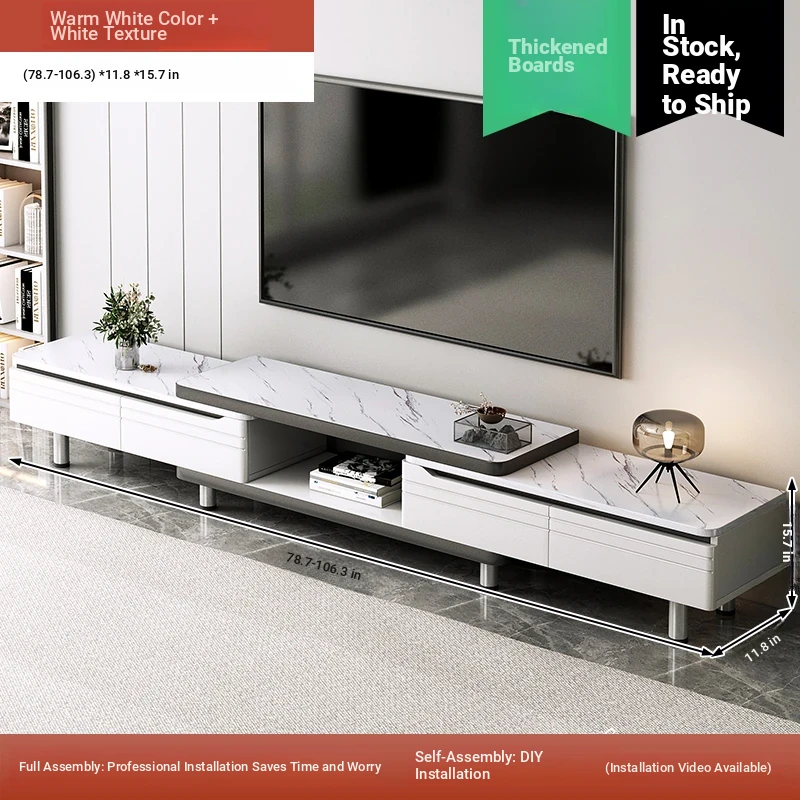 [Rock plate TV cabinet] retractable (160-220)in warm white + white texture