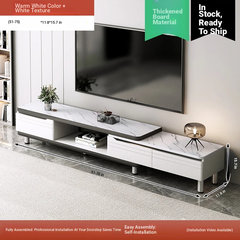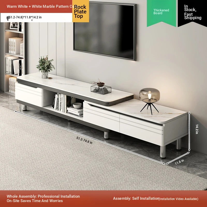 [Rock plate TV cabinet] retractable (130-190)in warm white + white texture