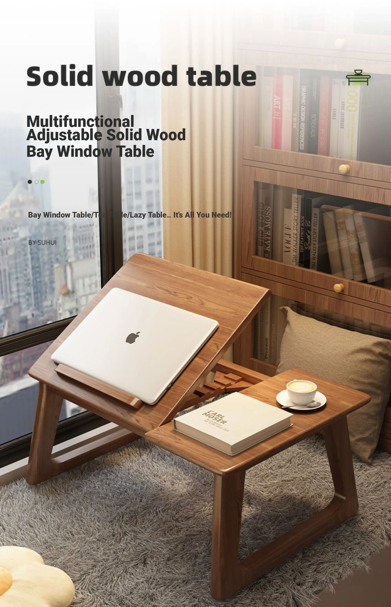 2025 New Solid Wood Bay Window Desk - Versatile Small Table for Home, Ideal for Balconies, Tatami, and Bedrooms, Perfect for Study and Cozy Spaces
