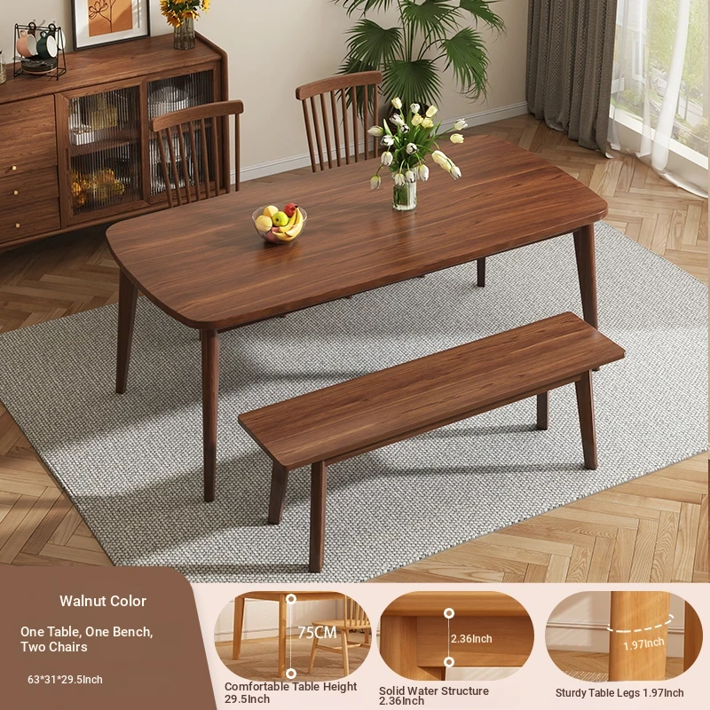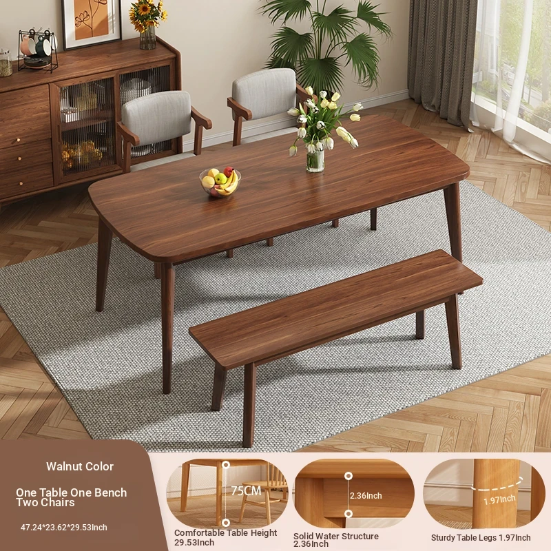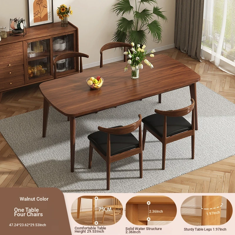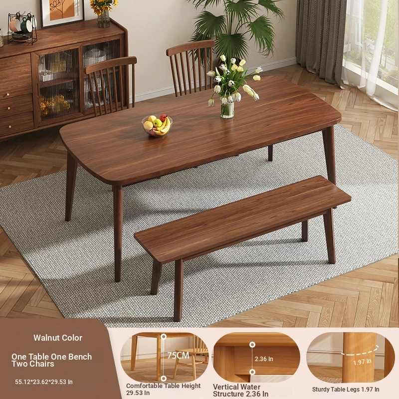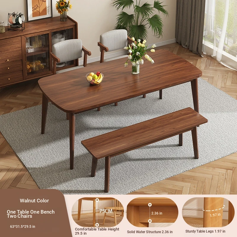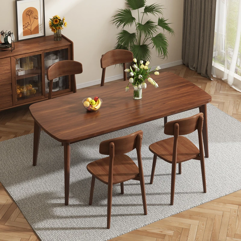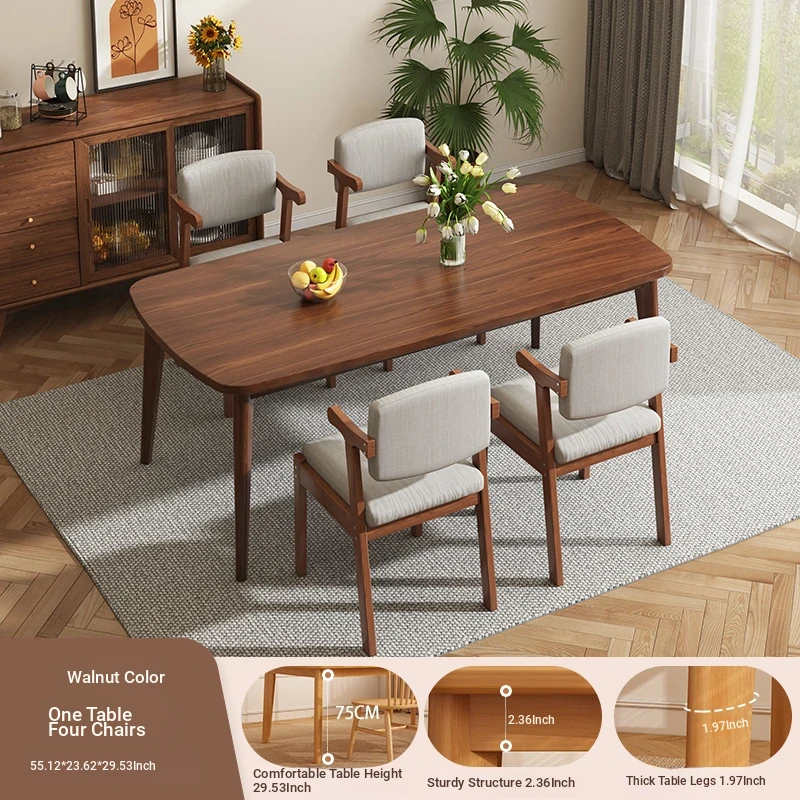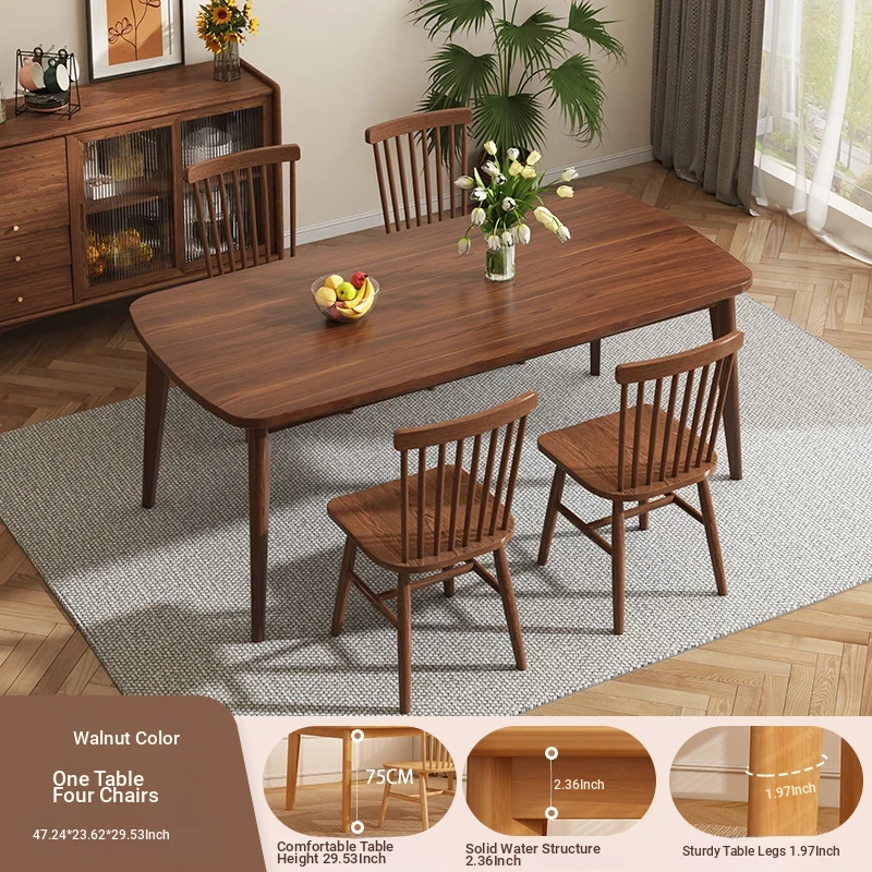 2025 New Solid Wood Dining Table Set - Modern Walnut Color Rectangular Table and Chair Combo for Small Living Spaces, Perfect for Family Meals