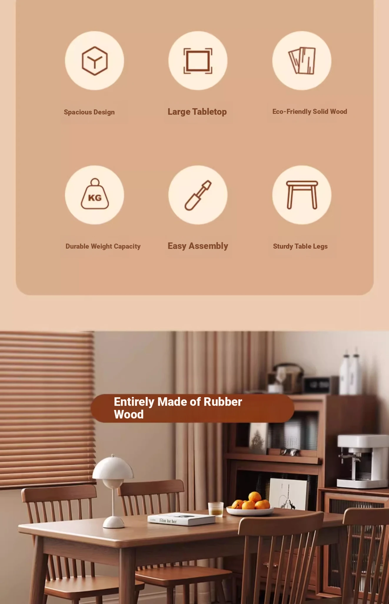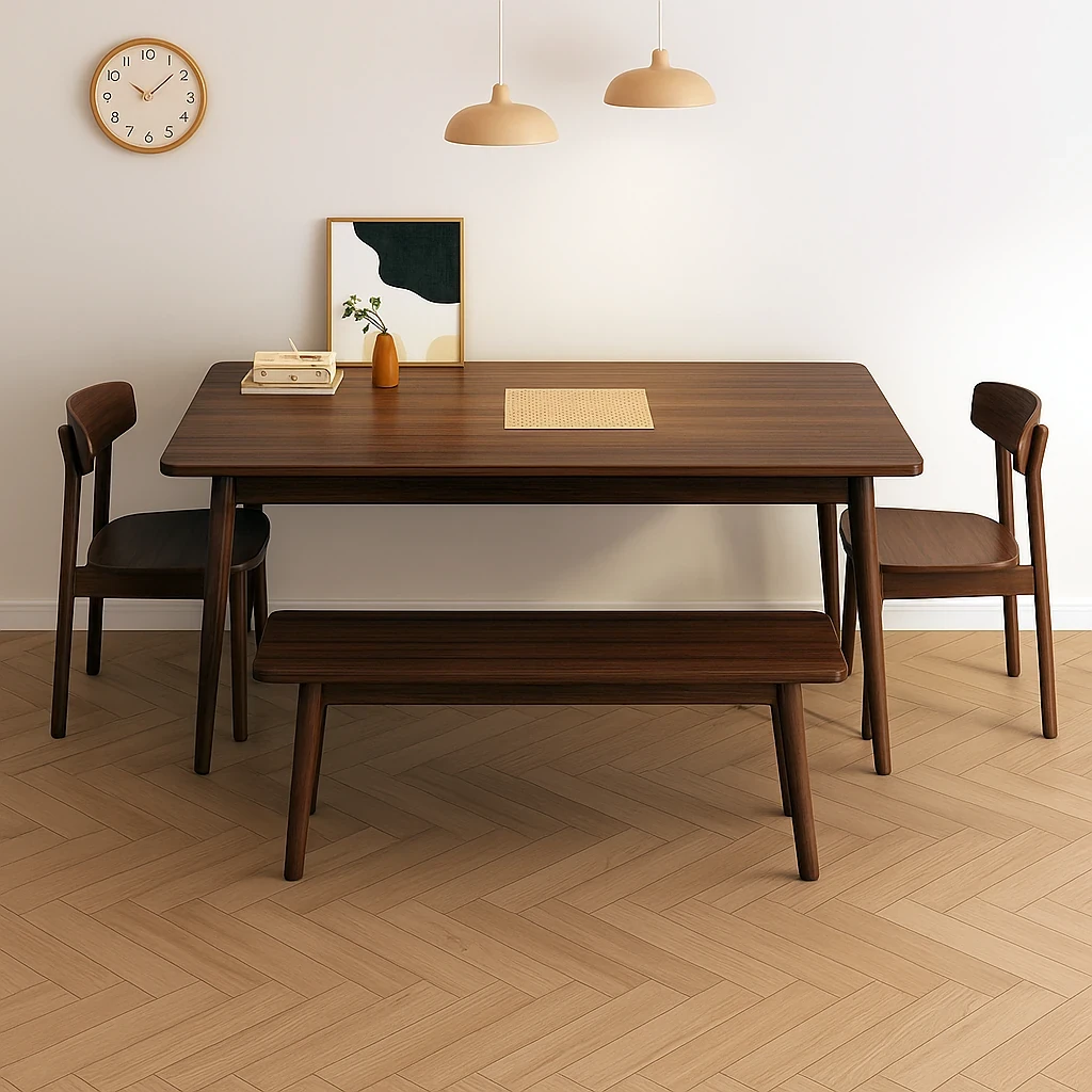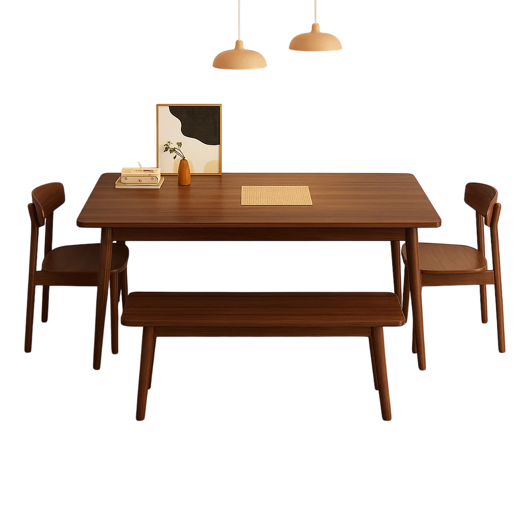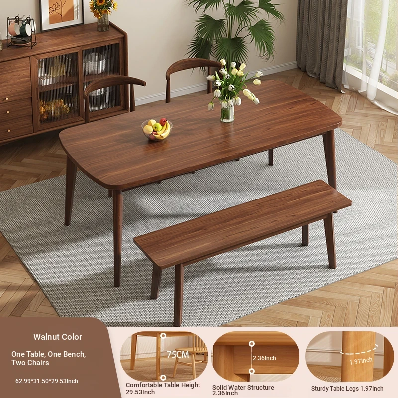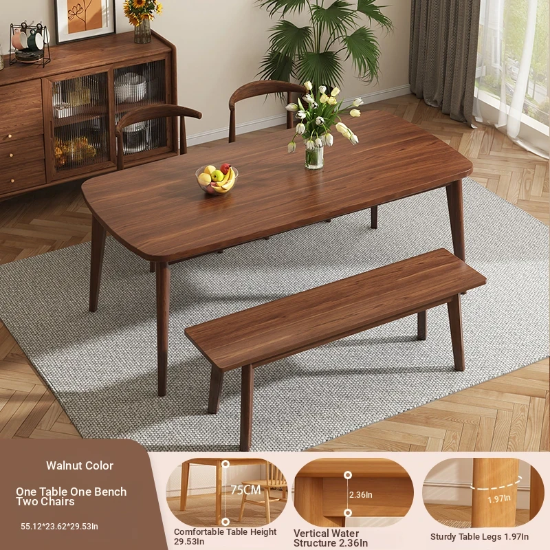 2025 New Solid Wood Dining Table Set - Modern Walnut Color Rectangular Table and Chair Combo for Small Living Spaces, Perfect for Family Meals