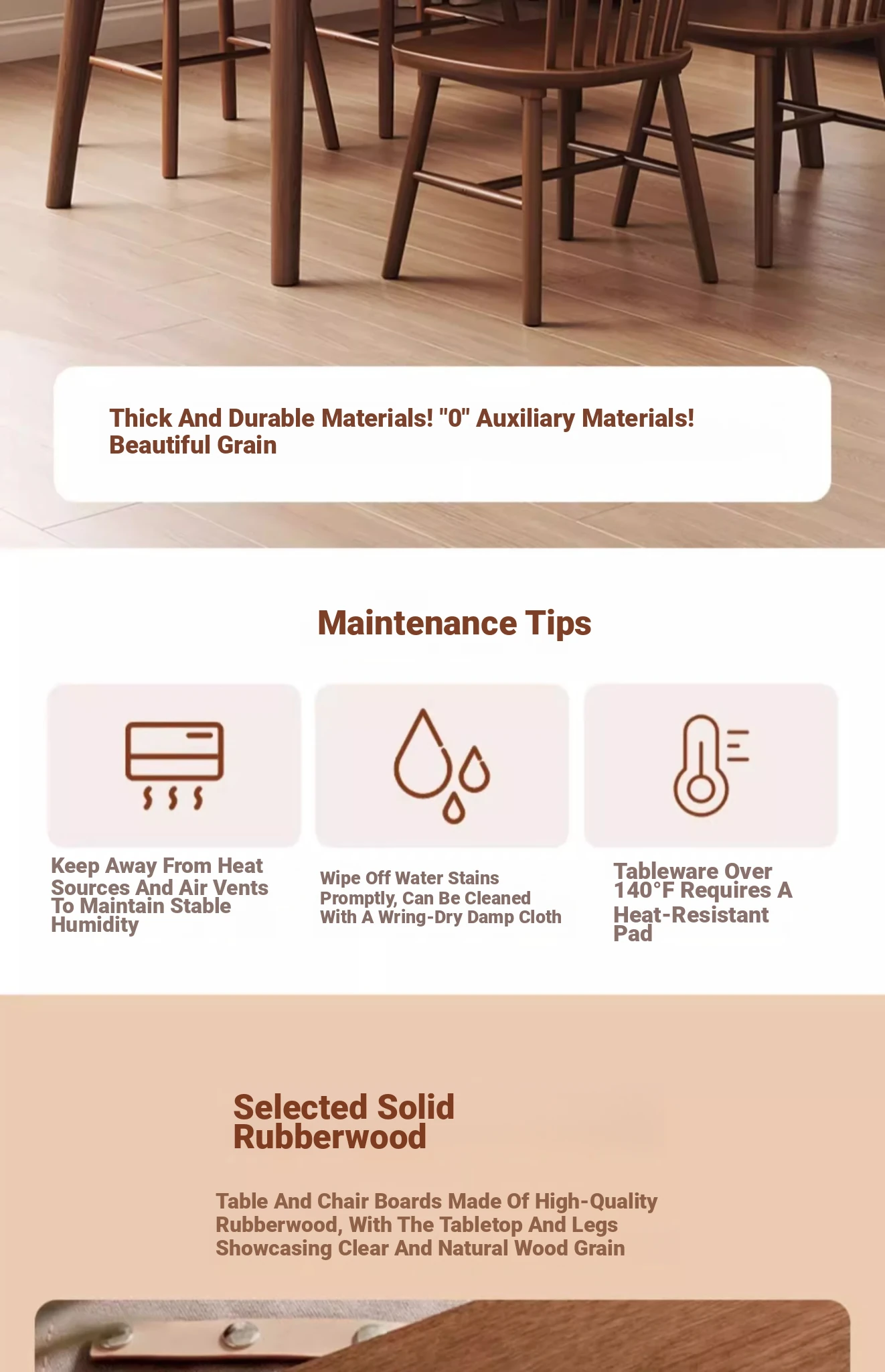 [One table, one stool and two chairs] walnut color 62.99in★Solid wood chair