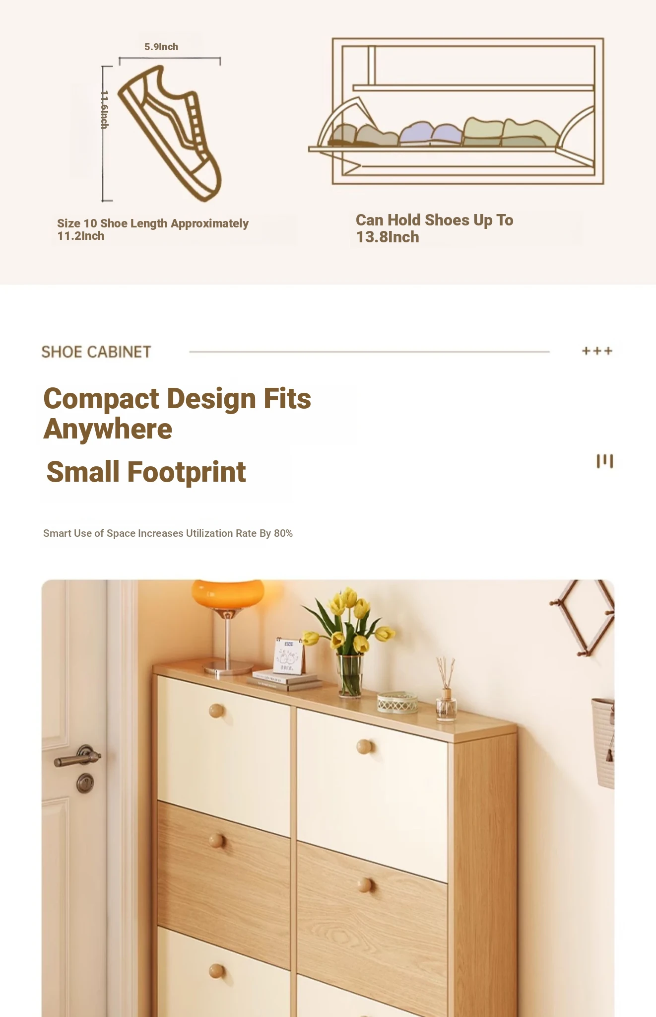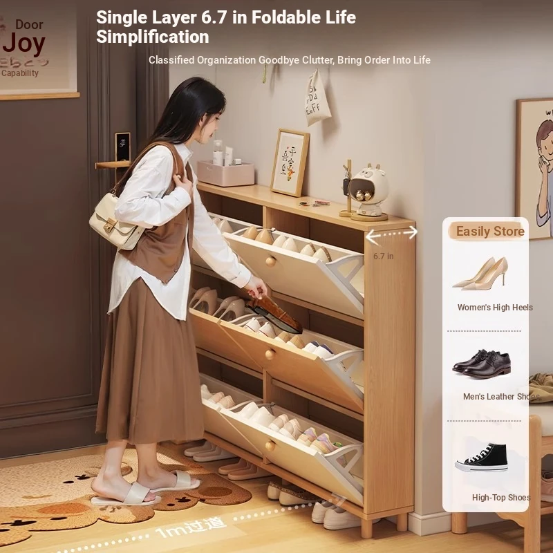 2025 New Solid Wood Flip Shoe Cabinet - Slim, Wall-Mounted Entryway Storage Solution for Home, Perfect for Narrow Spaces, Stylish and Functional Shoe Rack
