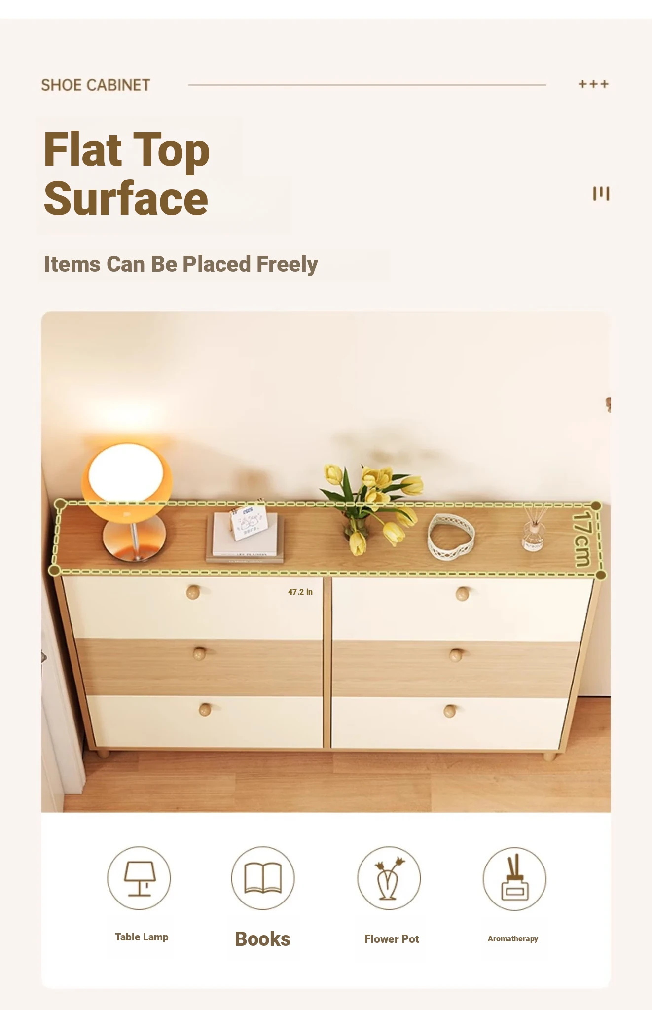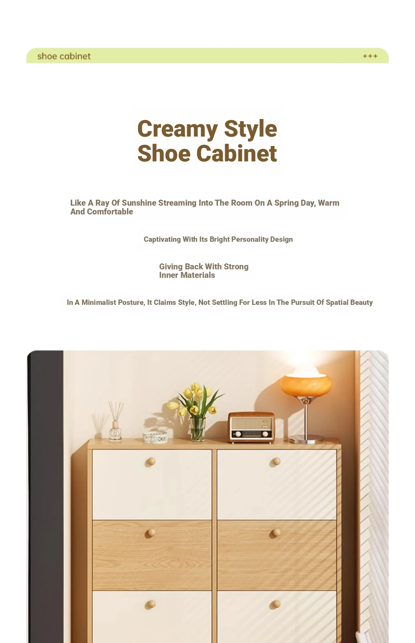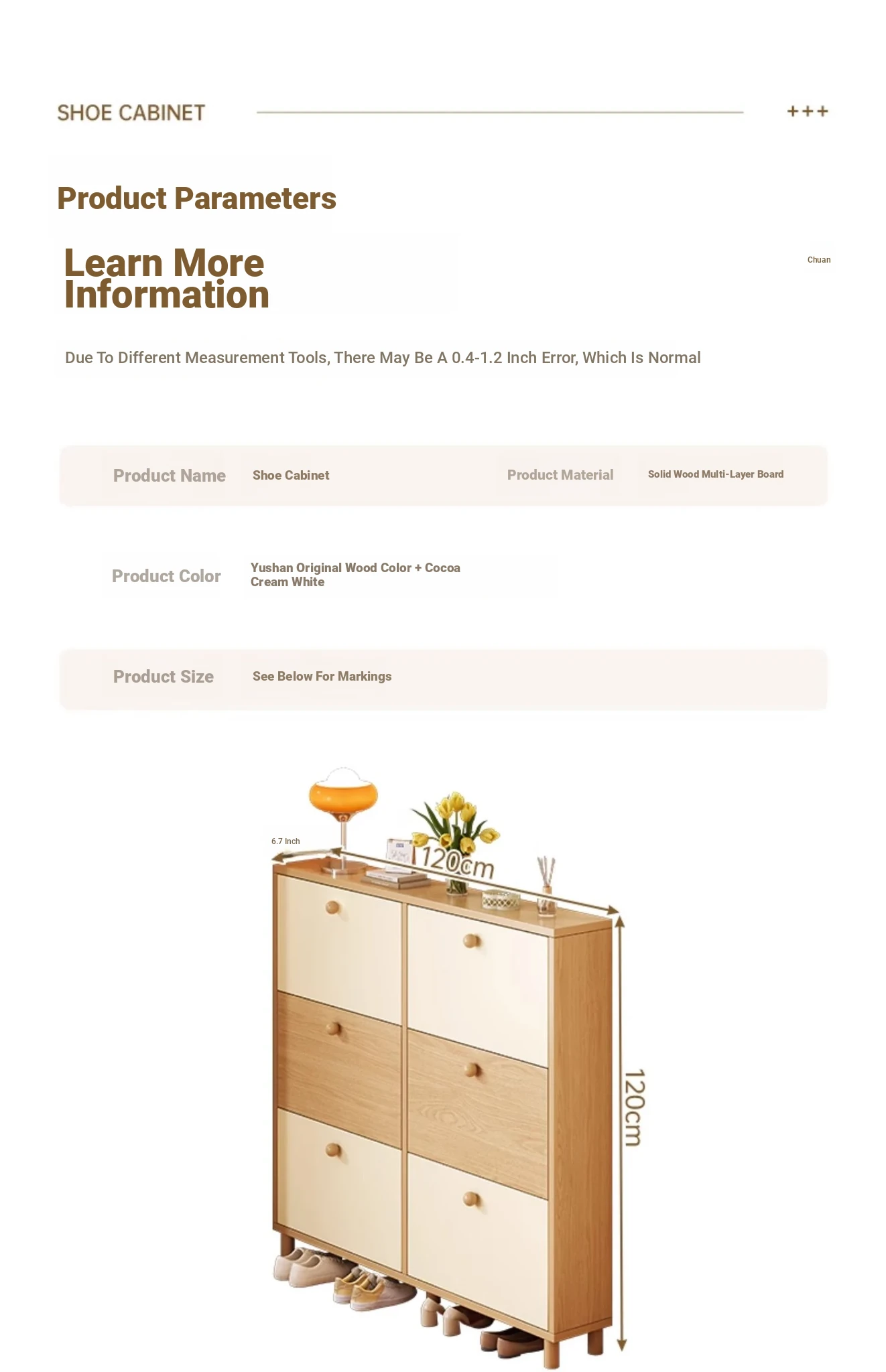[Solid wood ecological board❤Upgrade thickened inner core] Yushan log color + cocoa cream white 31.50in*6.69in*47.64in