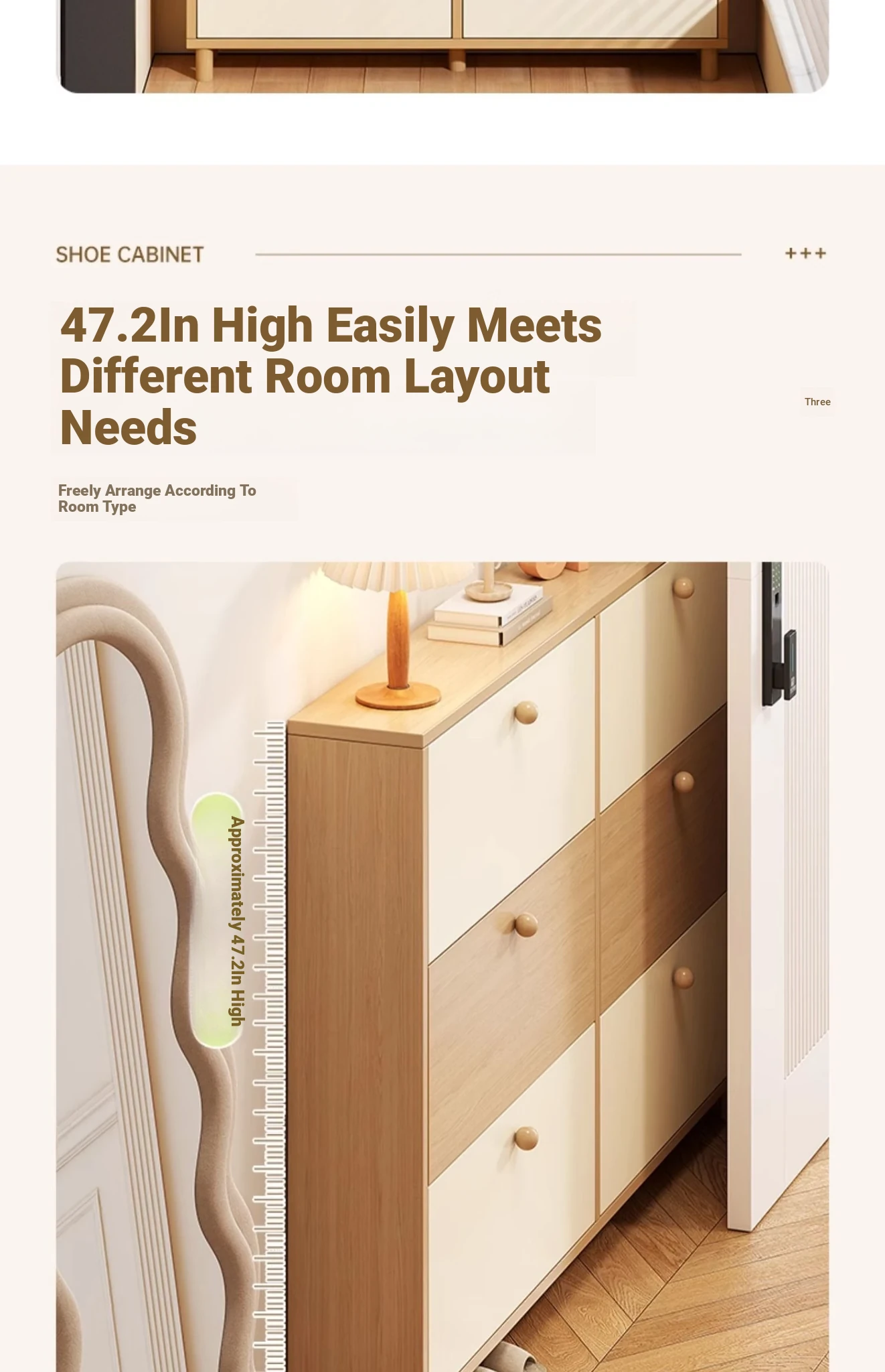 [Solid wood ecological board❤Wood upgrade❤Round handle] Yushan log color + cocoa cream white 23.62in*6.69in*47.64in