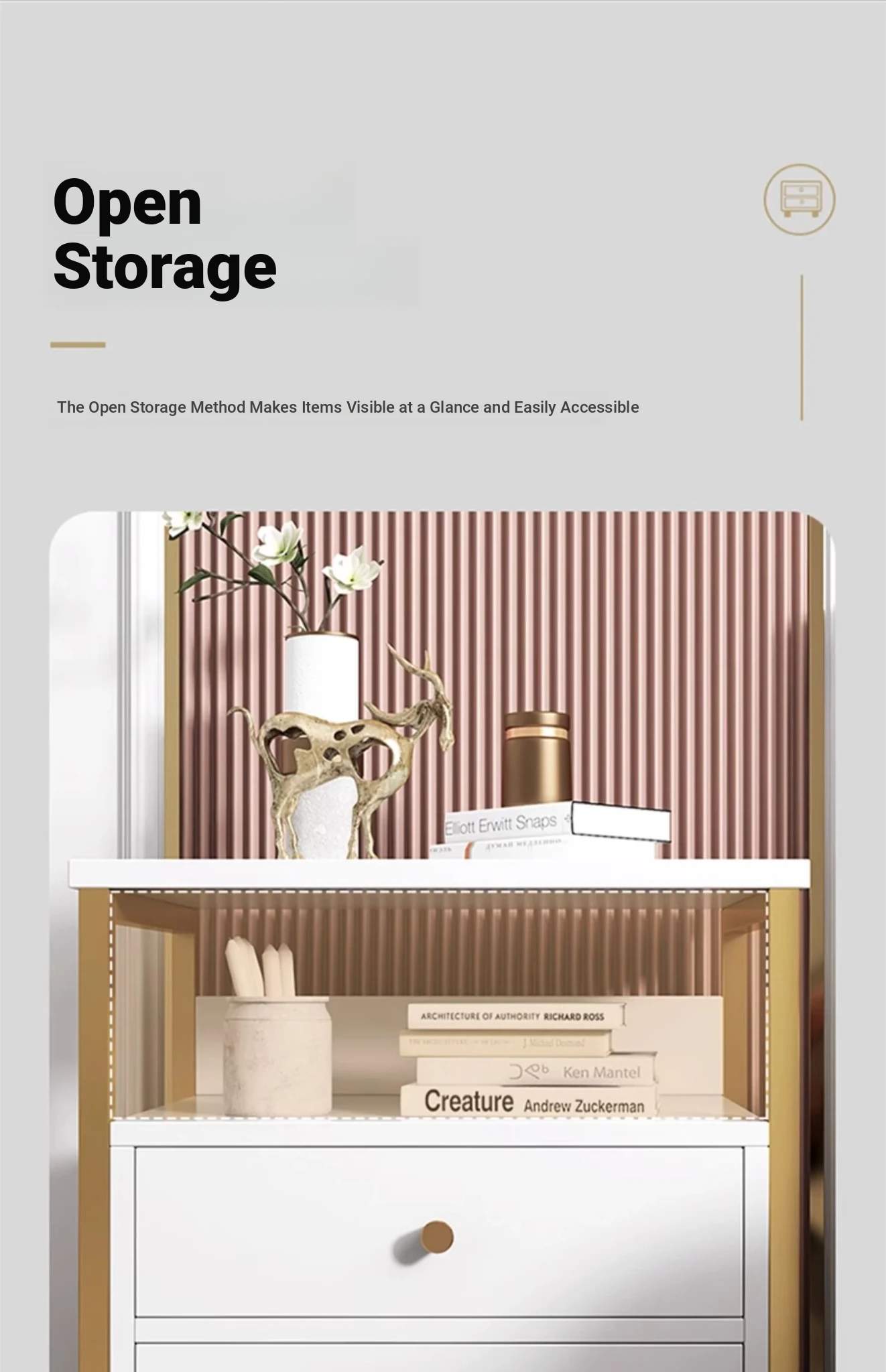 [Double smoke + gold shelf] Warm White_15.75in