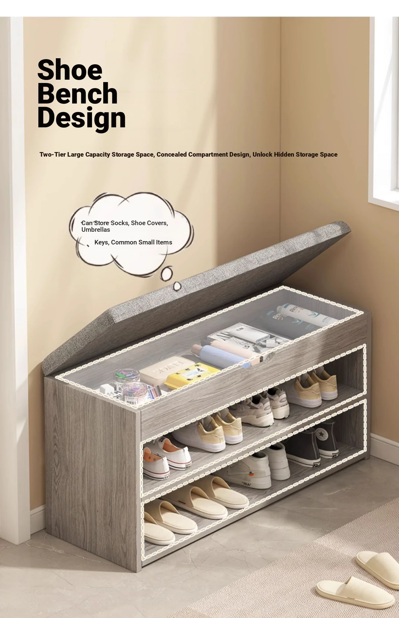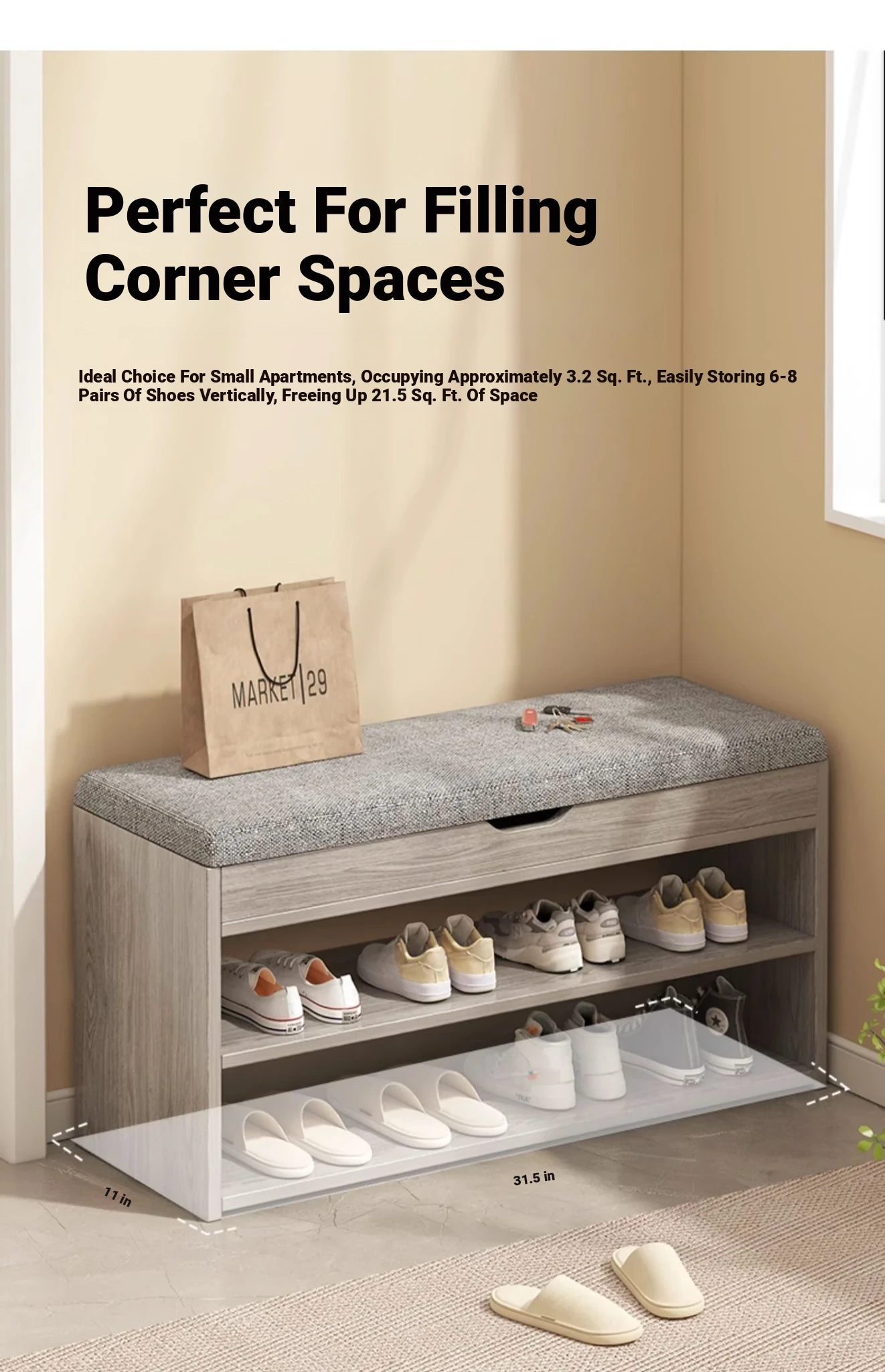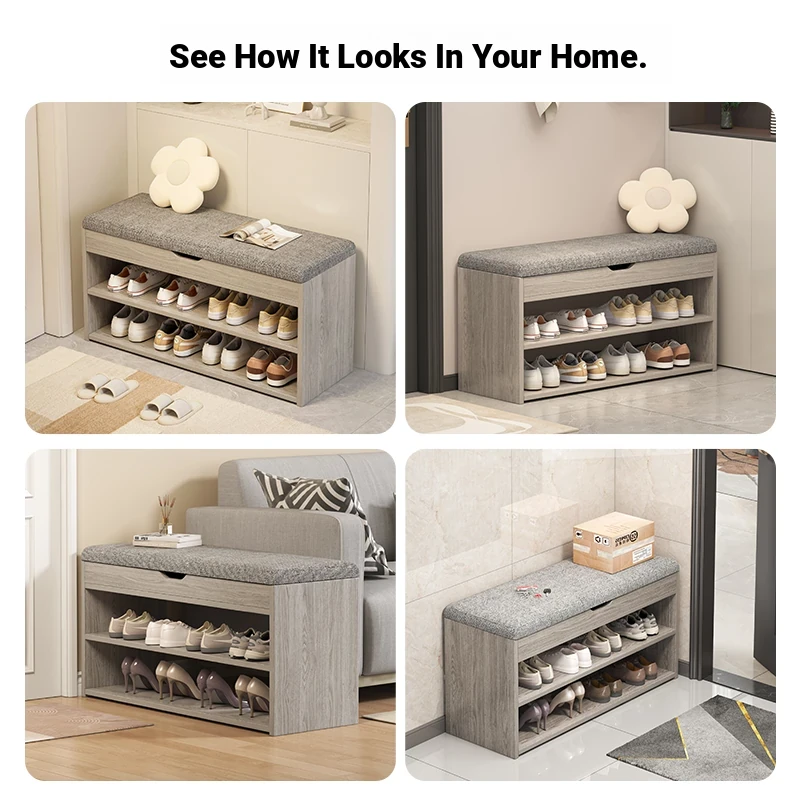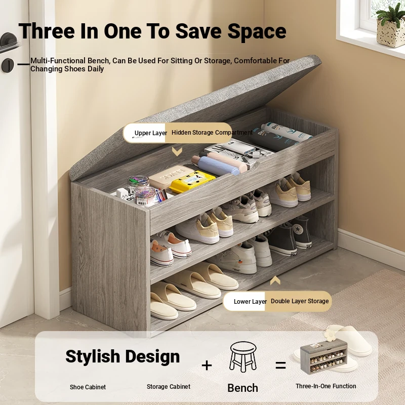 2025 New Stylish Wall-Mounted Shoe Cabinet with Storage - Elegant Entryway Organizer and Bench, Perfect for Indoor Use, Easy to Assemble, Space-Saving Design