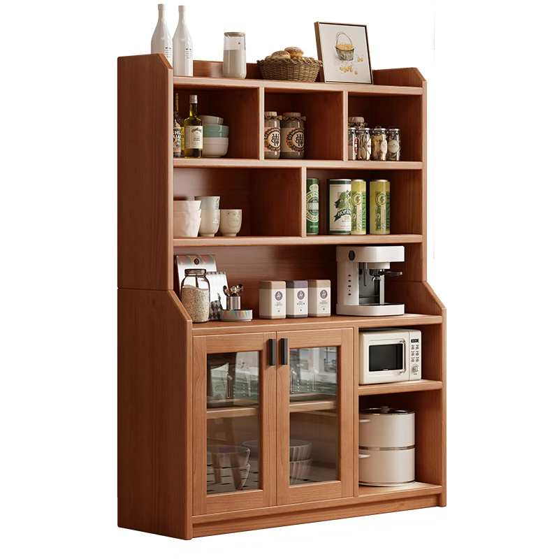 [Solid Wood Shell Handle☆ Select Density Board] 39.37in Cherry Wood + Milk White Cabinet Door