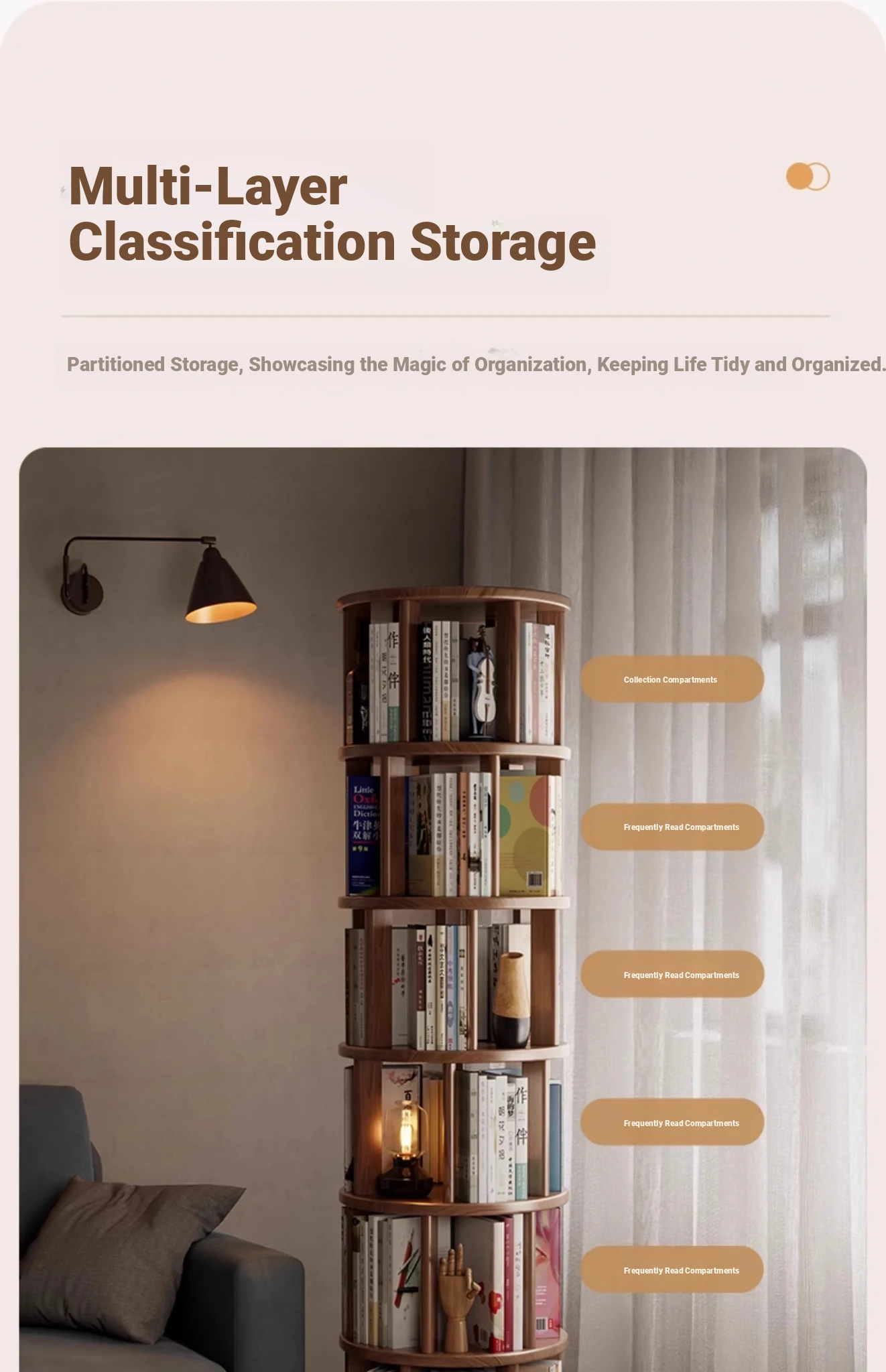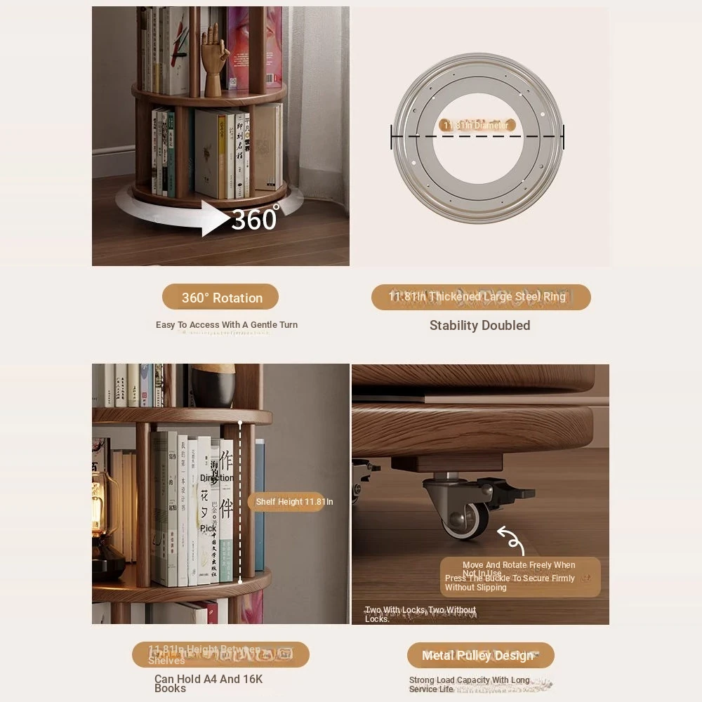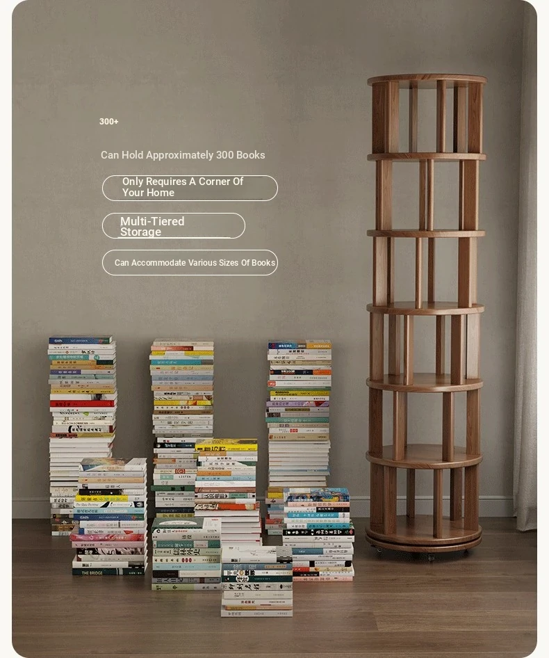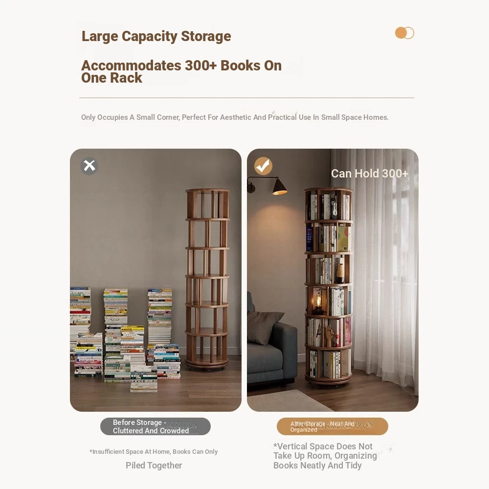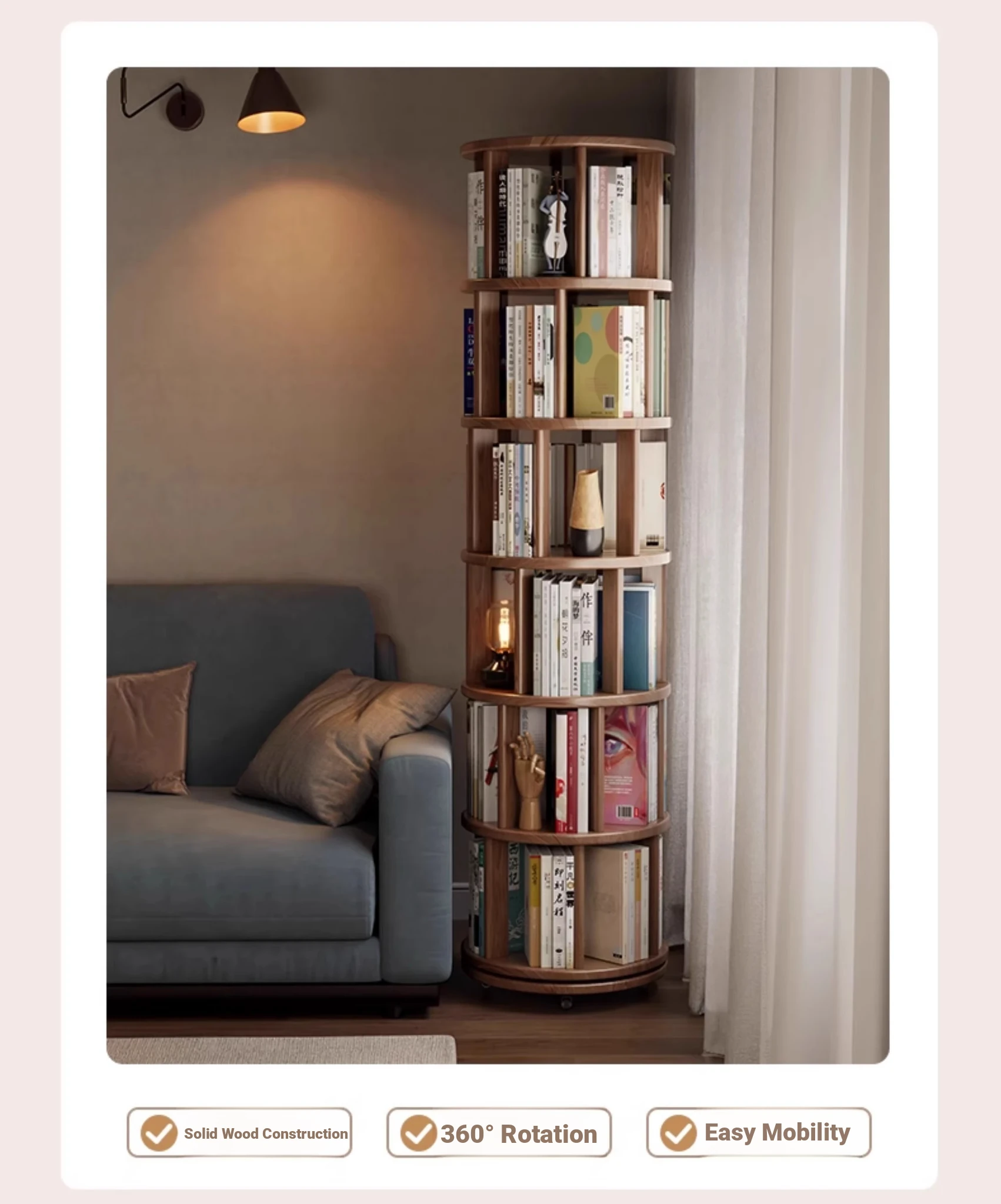 360-Degree Rotating Wooden Bookshelf - Space-Saving Corner Storage Rack for Bedroom, Easy to Move and Stylish Wall-Mounted Design, Perfect for Home Organization
