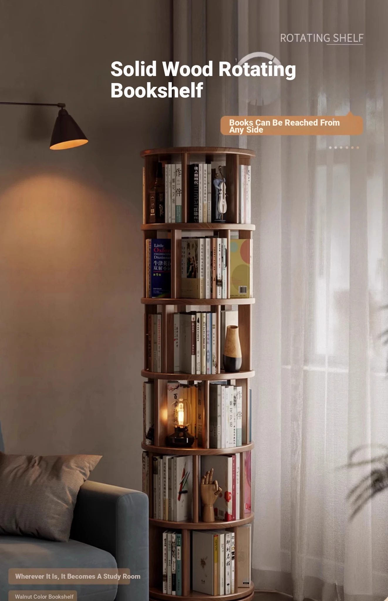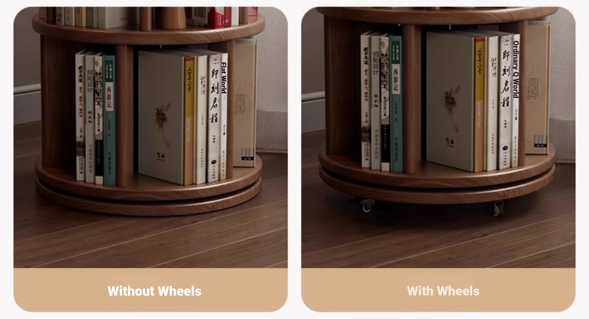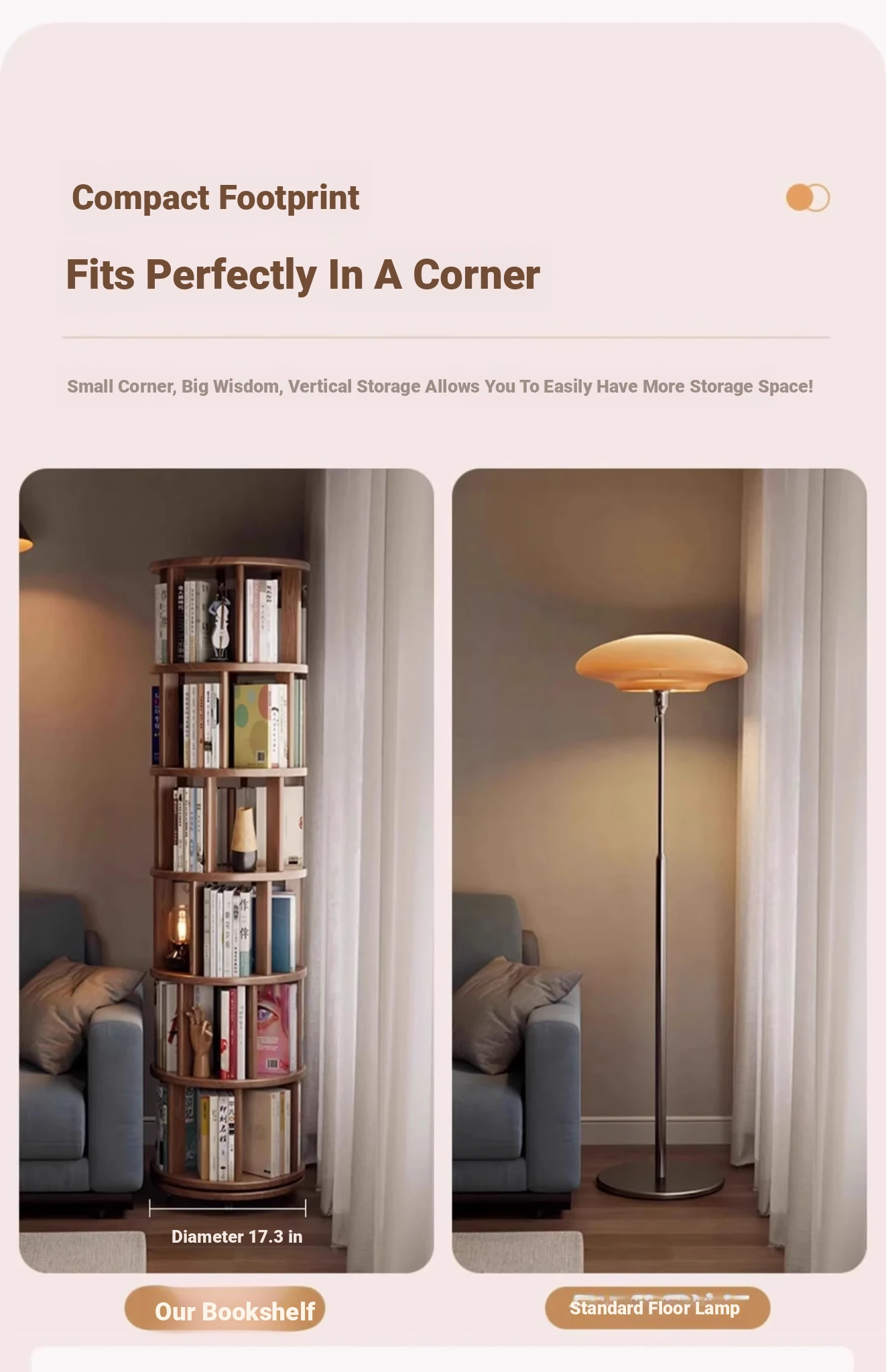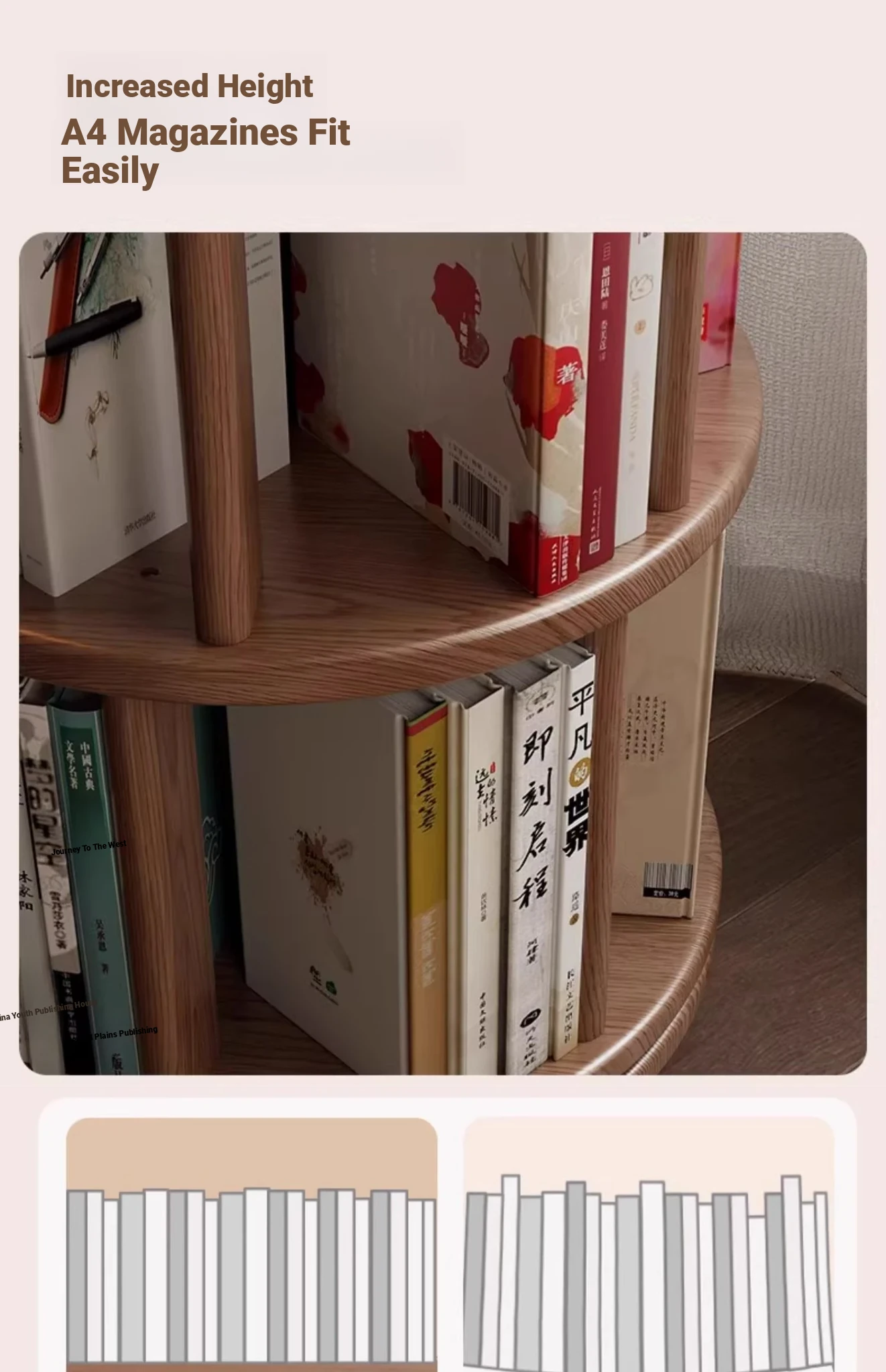 360-Degree Rotating Wooden Bookshelf - Space-Saving Corner Storage Rack for Bedroom, Easy to Move and Stylish Wall-Mounted Design, Perfect for Home Organization