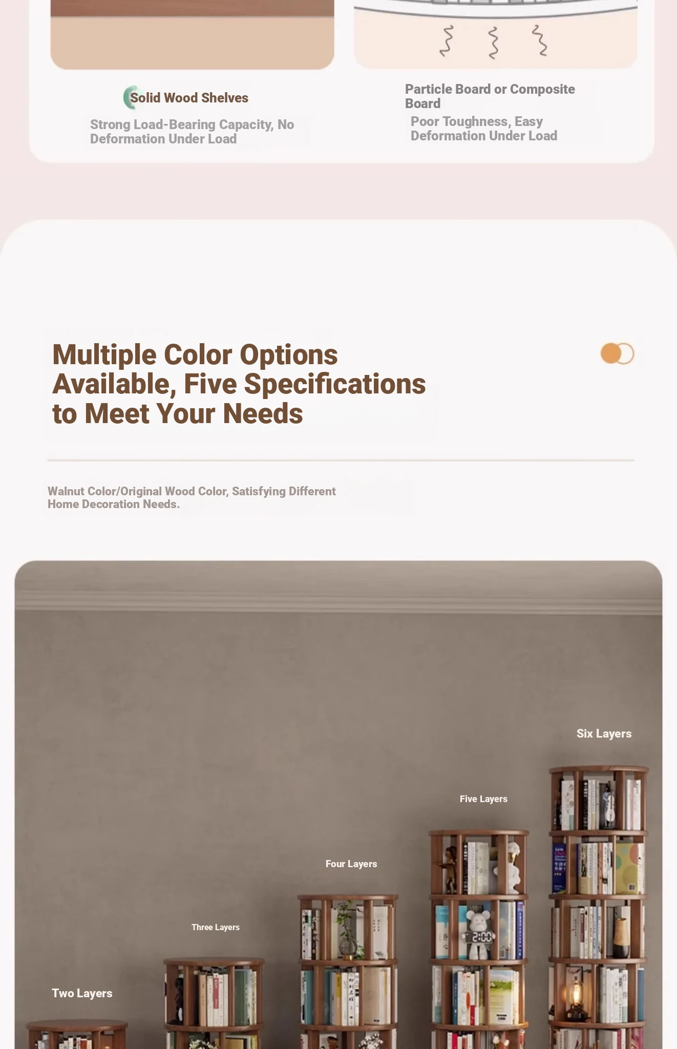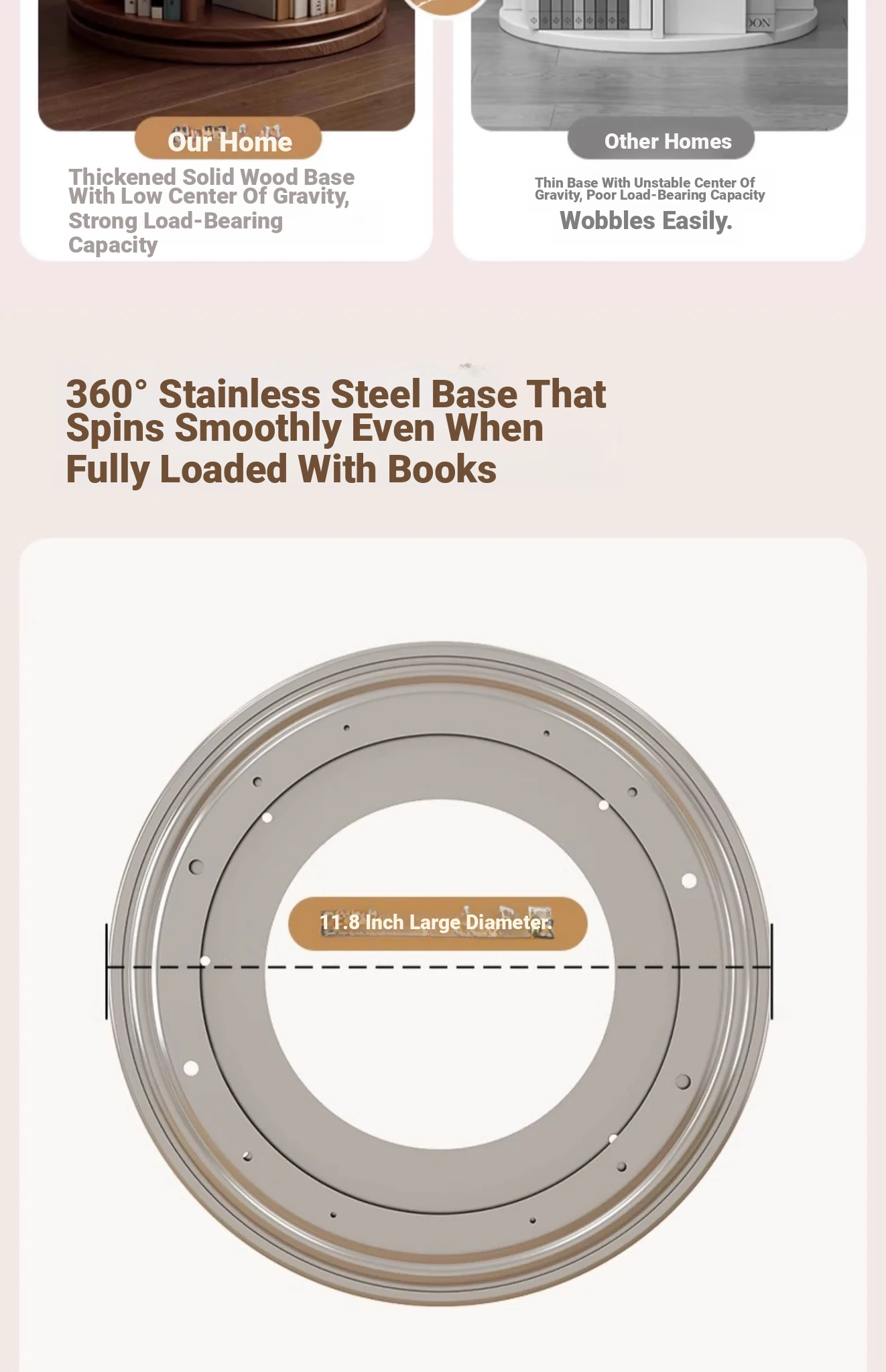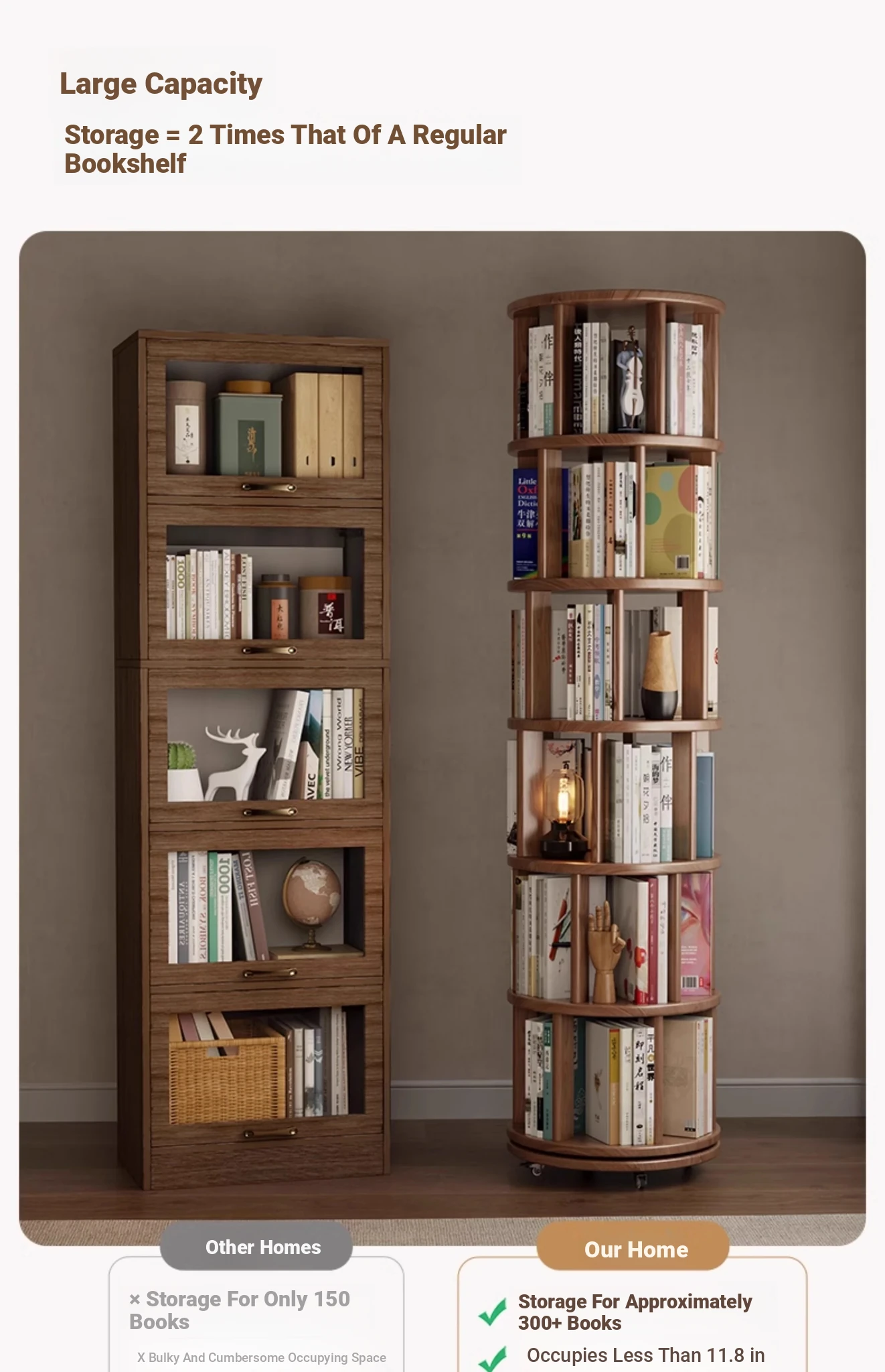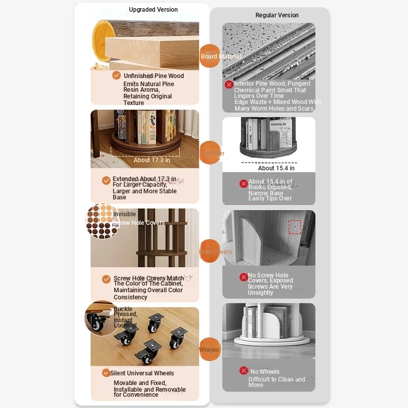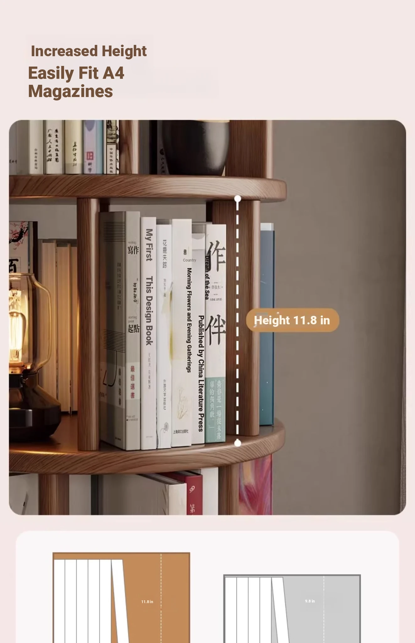 360-Degree Rotating Wooden Bookshelf - Space-Saving Corner Storage Rack for Bedroom, Easy to Move and Stylish Wall-Mounted Design, Perfect for Home Organization