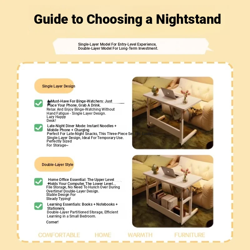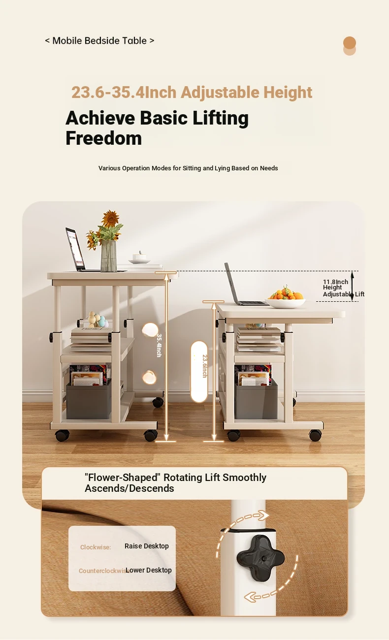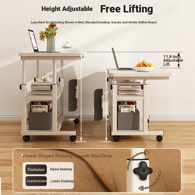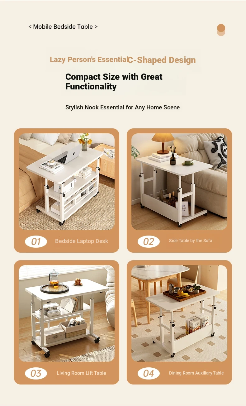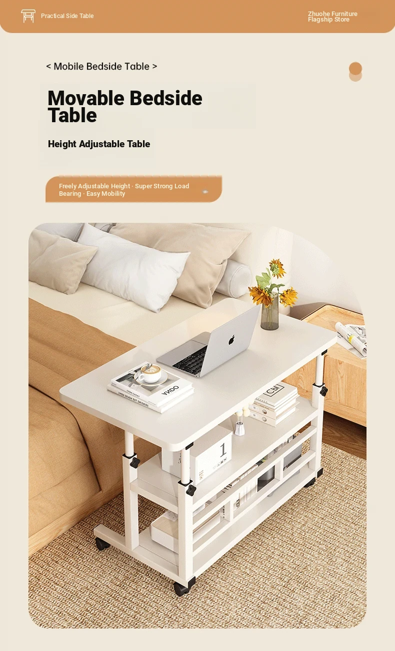 Adjustable Height Bedside Table - Versatile Mobile Computer Desk for Home & Office, Perfect for Small Spaces - Ideal Entertainment and Work Solution