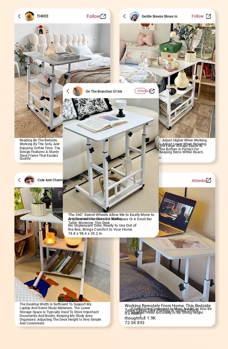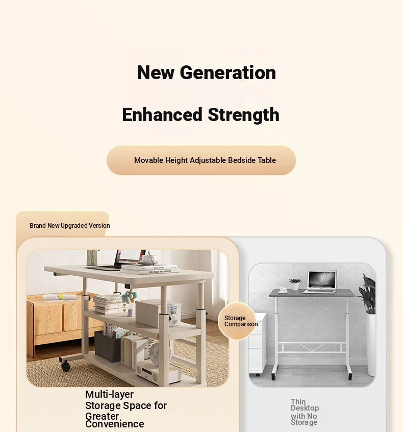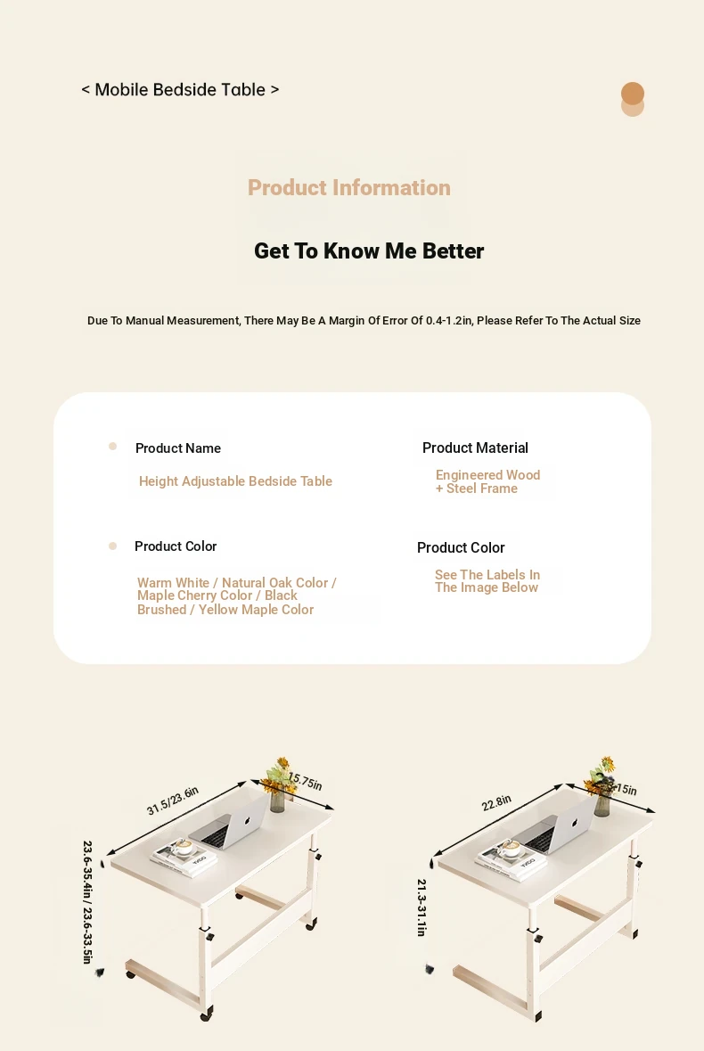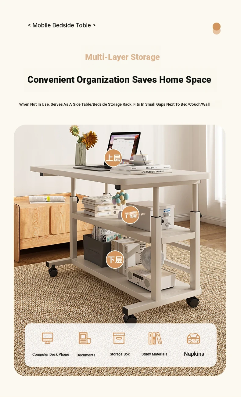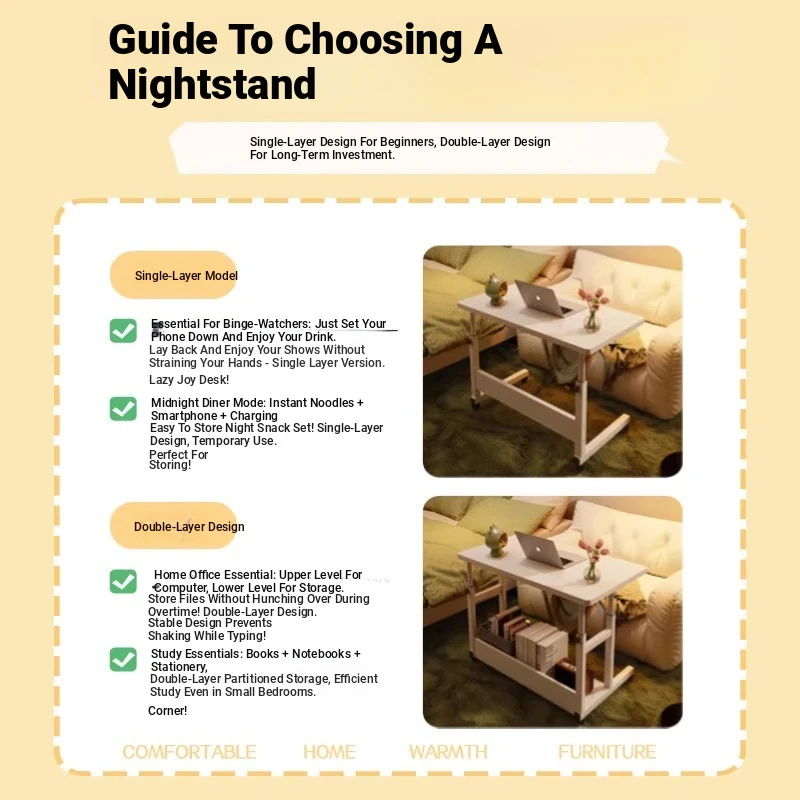 Adjustable Height Bedside Table - Versatile Mobile Computer Desk for Home & Office, Perfect for Small Spaces - Ideal Entertainment and Work Solution