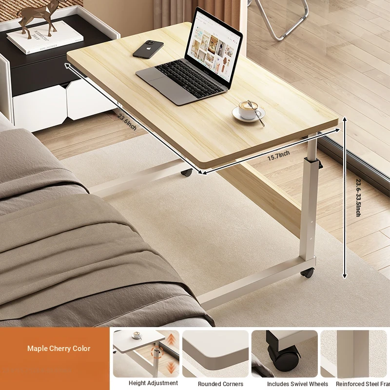 Temporary office/chase drama [single layer] Maple cherry wood color 23.62in*15.75in [Adjustable + universal wheel]]