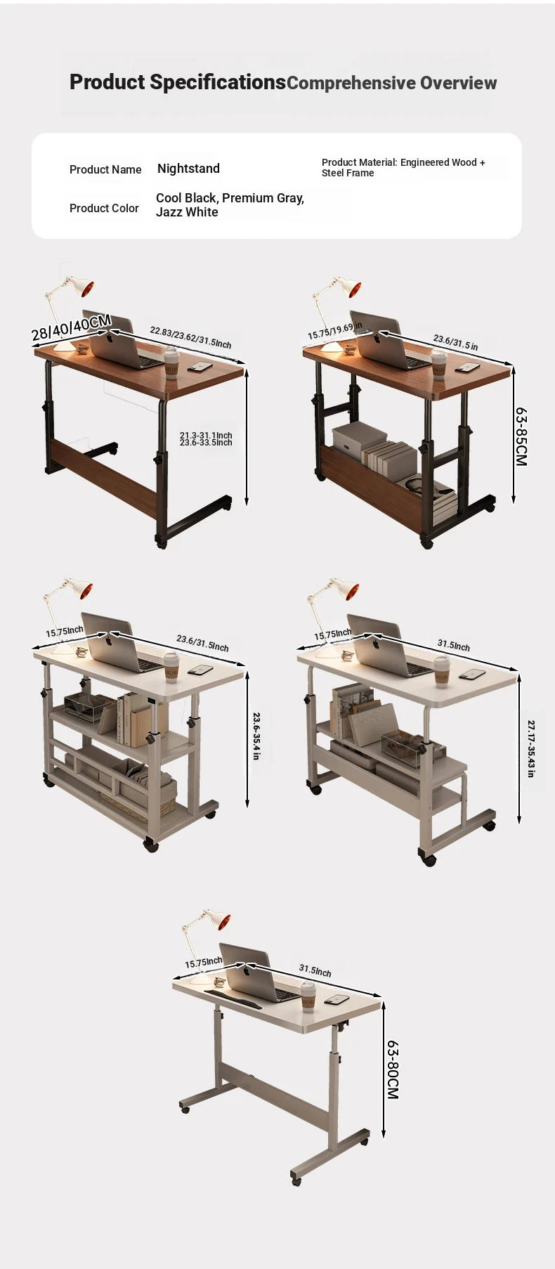 Adjustable Mobile Bedside Table – Versatile Laptop Desk for Students, Home Office & Bedroom Use – Compact Study Table for Easy Learning and Work Setup