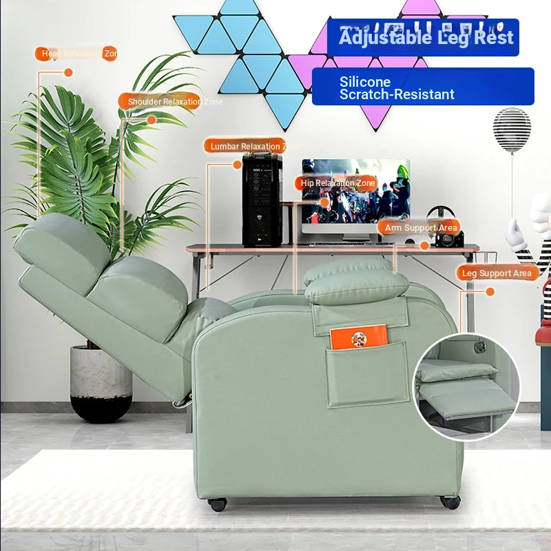 Adjustable Reclining Gaming Chair with Leg Rest - Ergonomic Single Sofa for Home, Office, and Internet Cafe - Perfect for Gamers and Relaxation