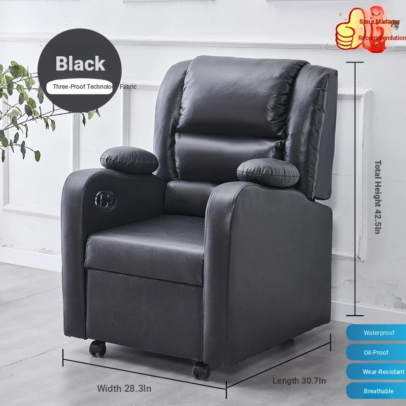 Technology cloth black backrest can be reclined and raised, with leg rest (manual)