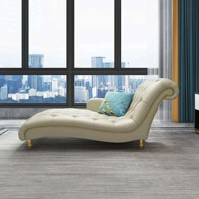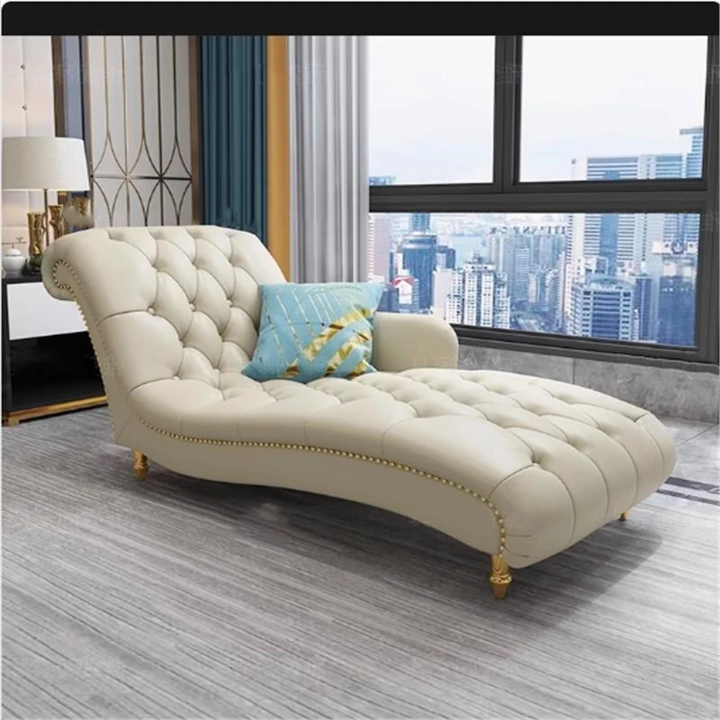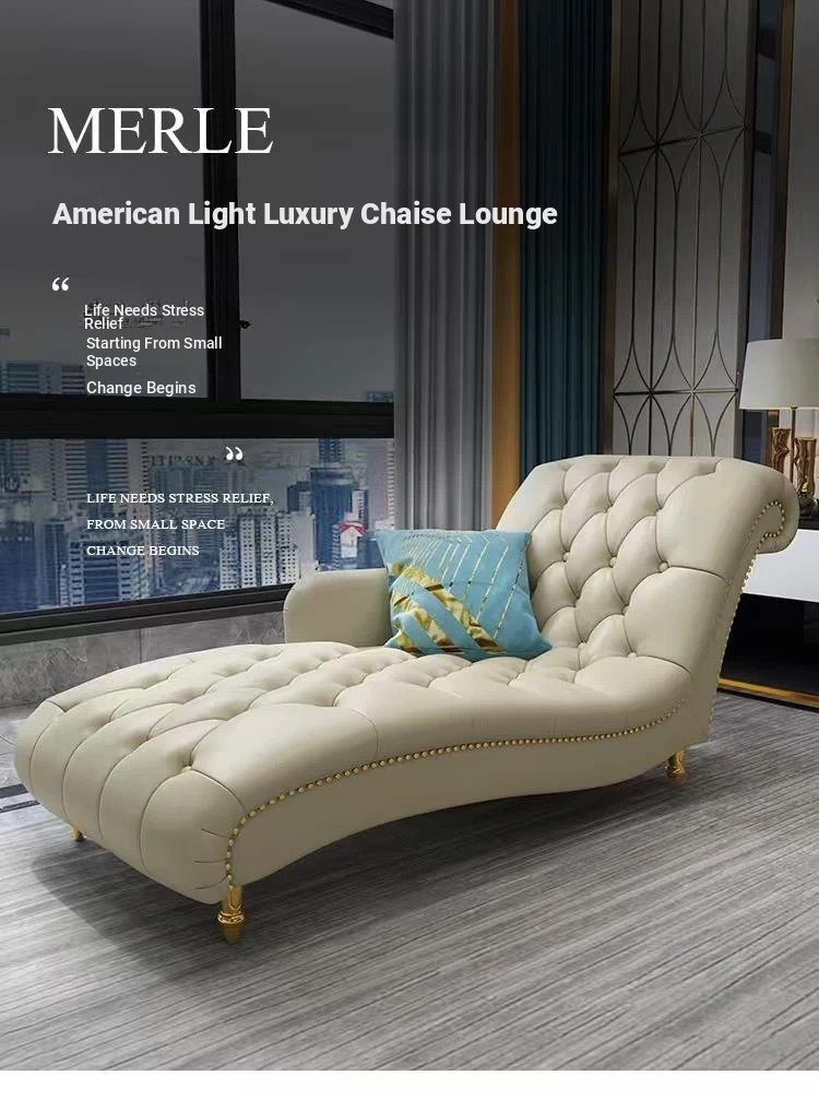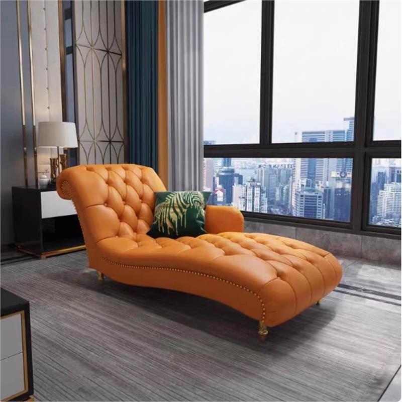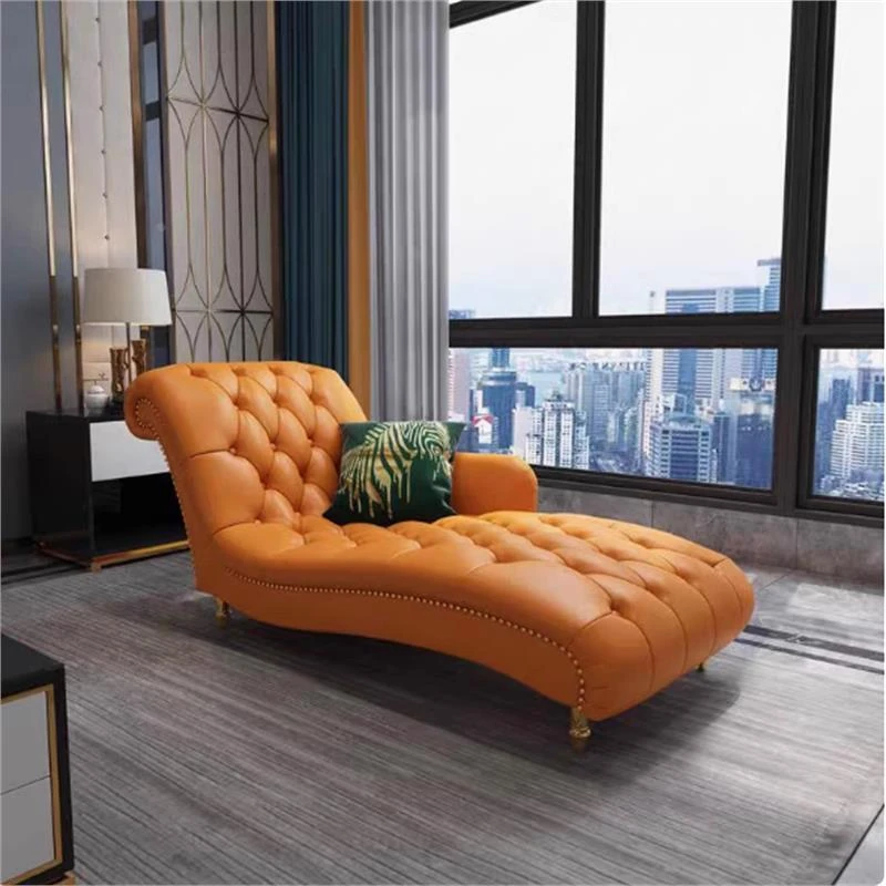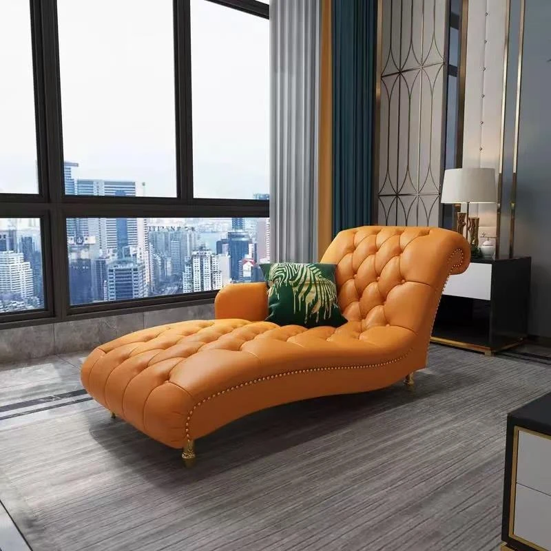 American-style Luxury Leather Chaise Lounge Chair for Small Living Rooms and Bedrooms - Elegant Cream and Orange Single Recliner for Chic Comfort
