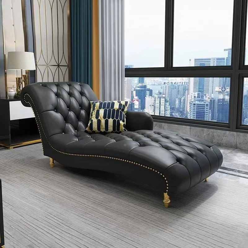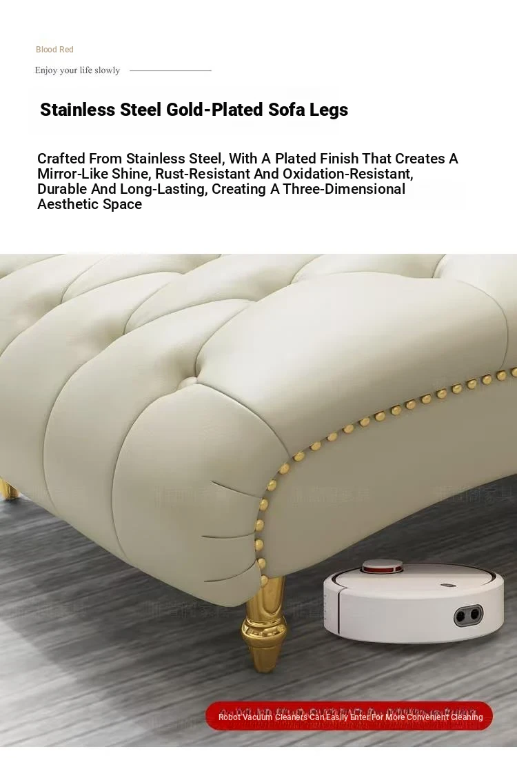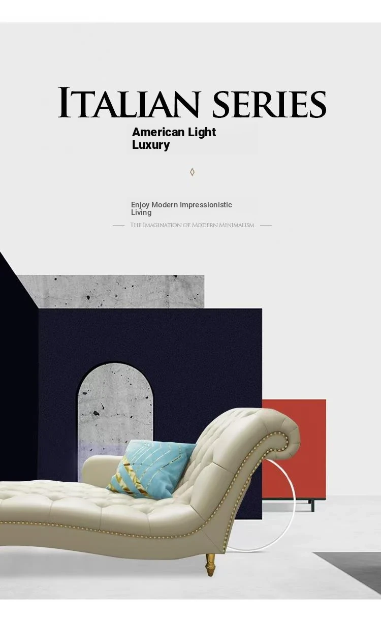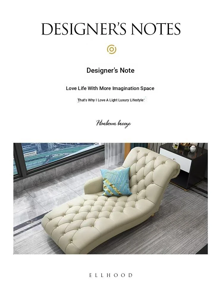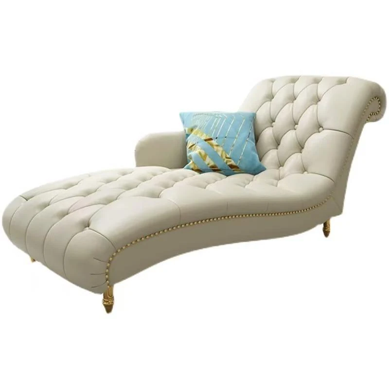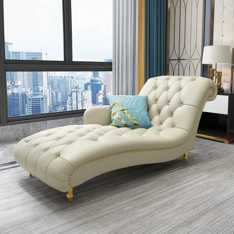 American-style Luxury Leather Chaise Lounge Chair for Small Living Rooms and Bedrooms - Elegant Cream and Orange Single Recliner for Chic Comfort