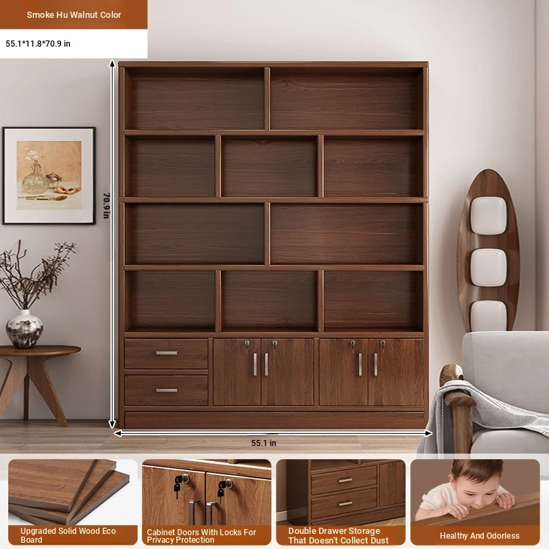 [Solid wood ecological board❥Back plate detachable] 55.12in*11.81in*70.87in hazy walnut color