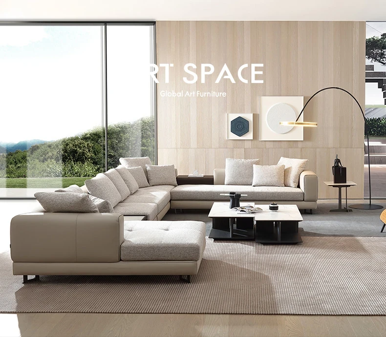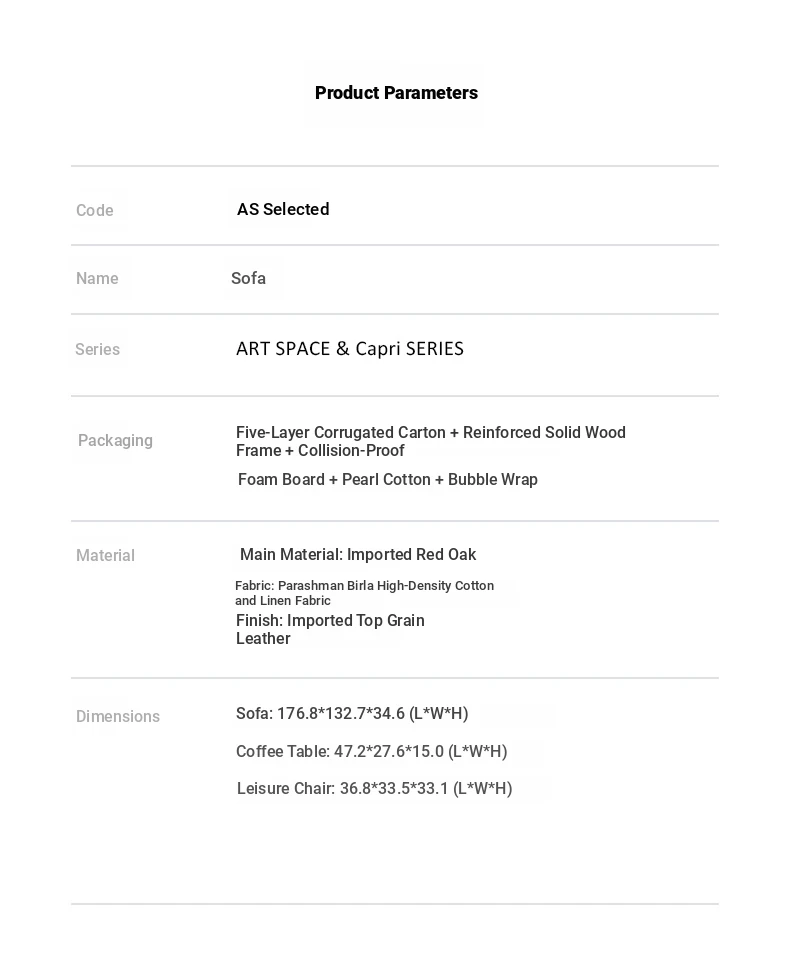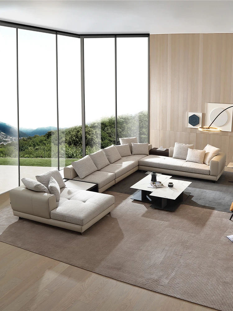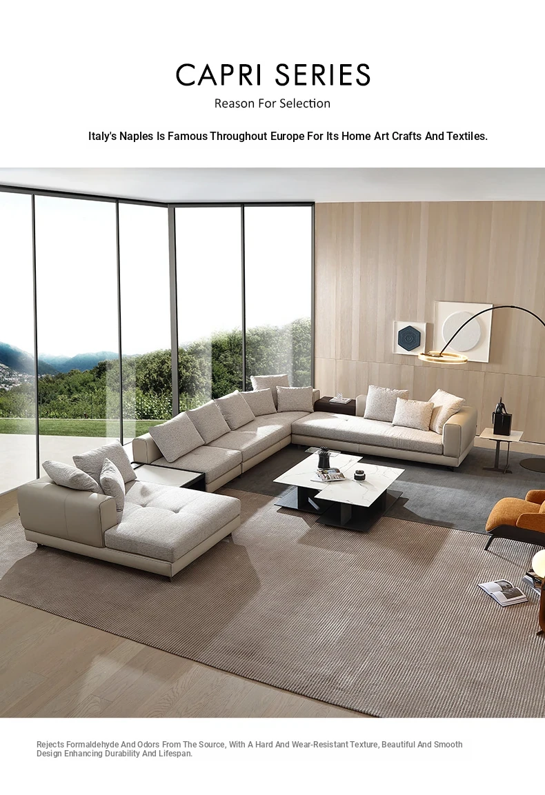 AS Premium Capri Italian Luxury Villa Three-Seater Sofa Set - Modern Minimalist Genuine Leather Corner Sofa