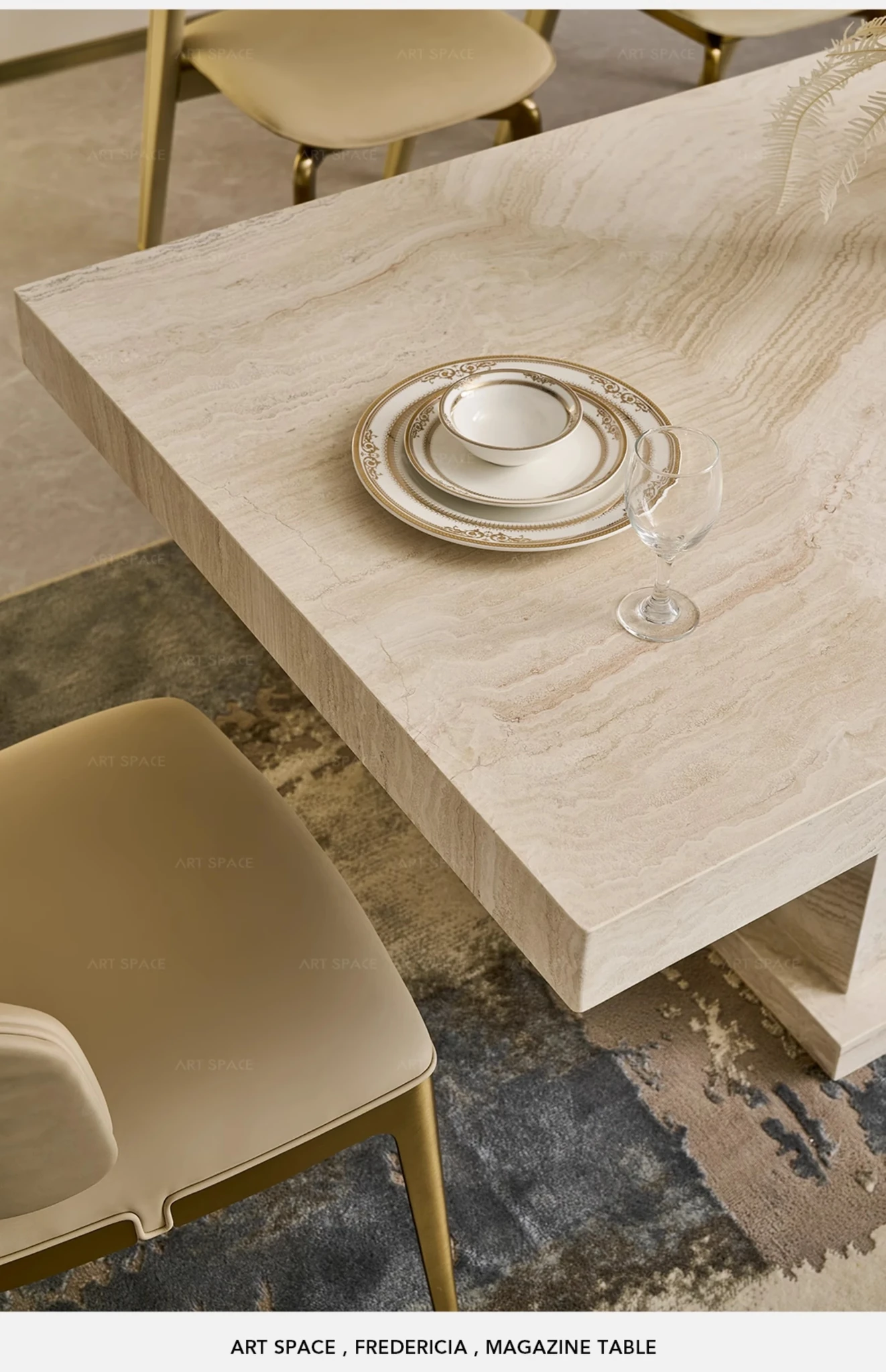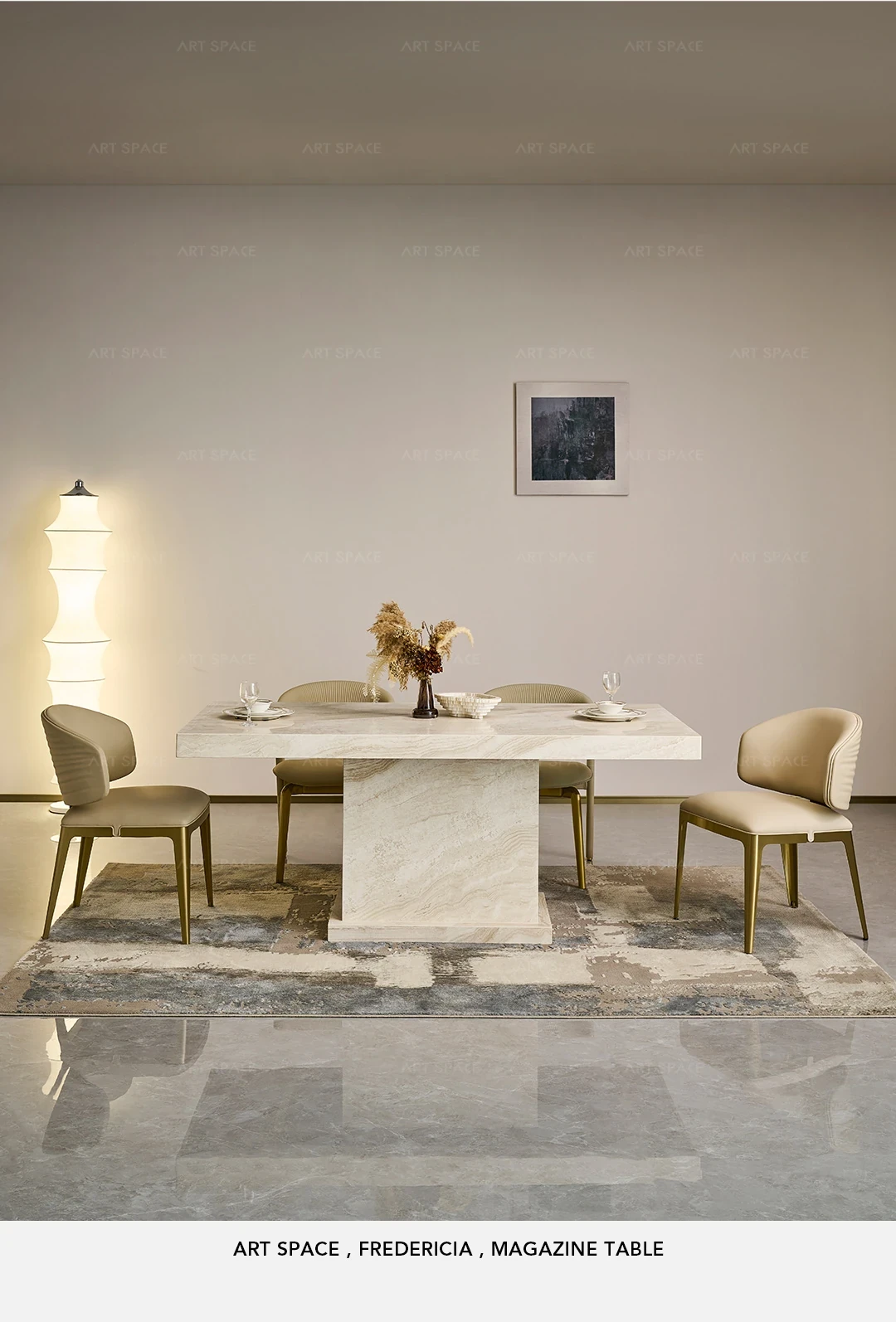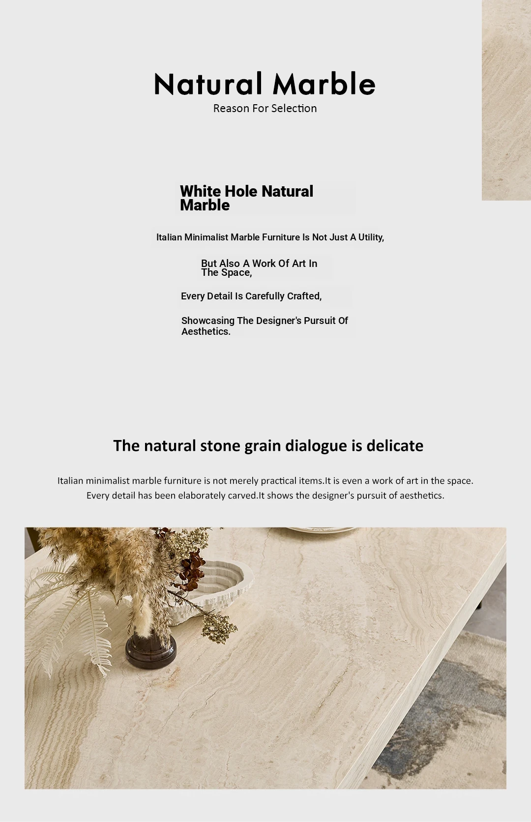AS Selected Carrara Italian Minimalist Natural White Hole Stone Rectangular Marble Dining Table for Living Room - Stylish and Durable Home Essential