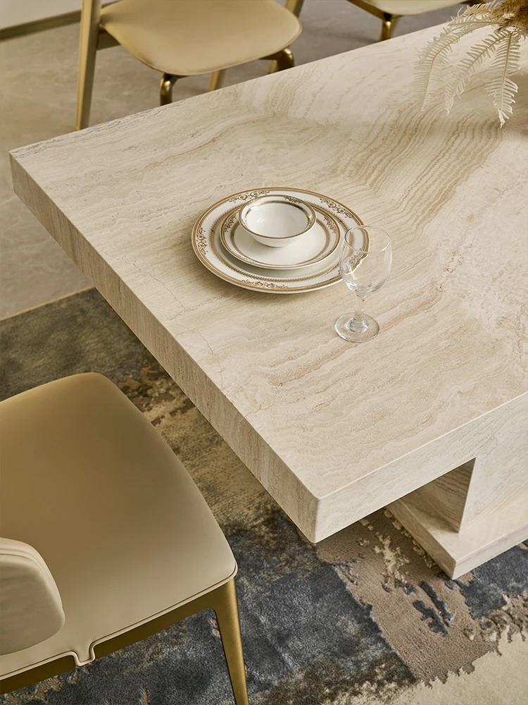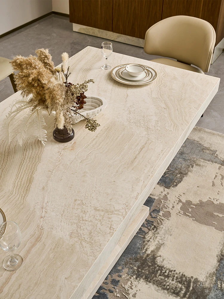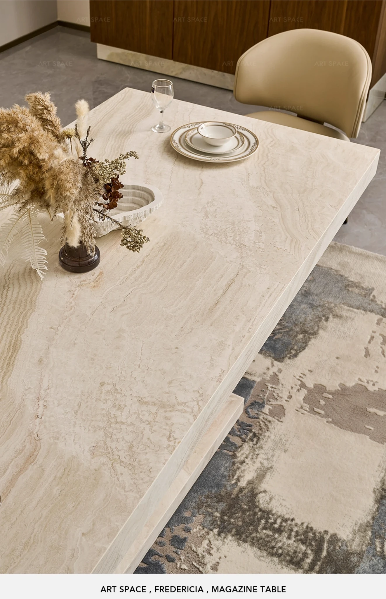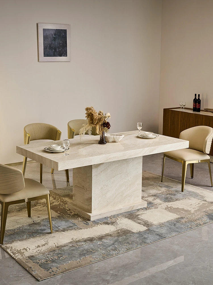 AS Selected Carrara Italian Minimalist Natural White Hole Stone Rectangular Marble Dining Table for Living Room - Stylish and Durable Home Essential
