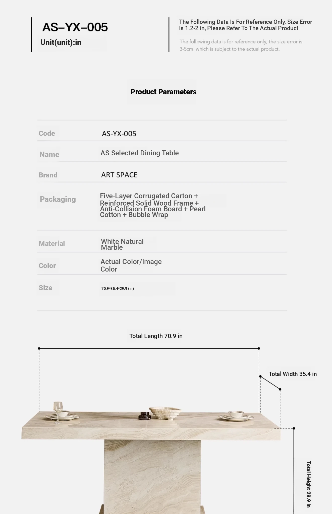 AS strict selection of marble dining table [white hole Natural Stone]](1800*900*760)
