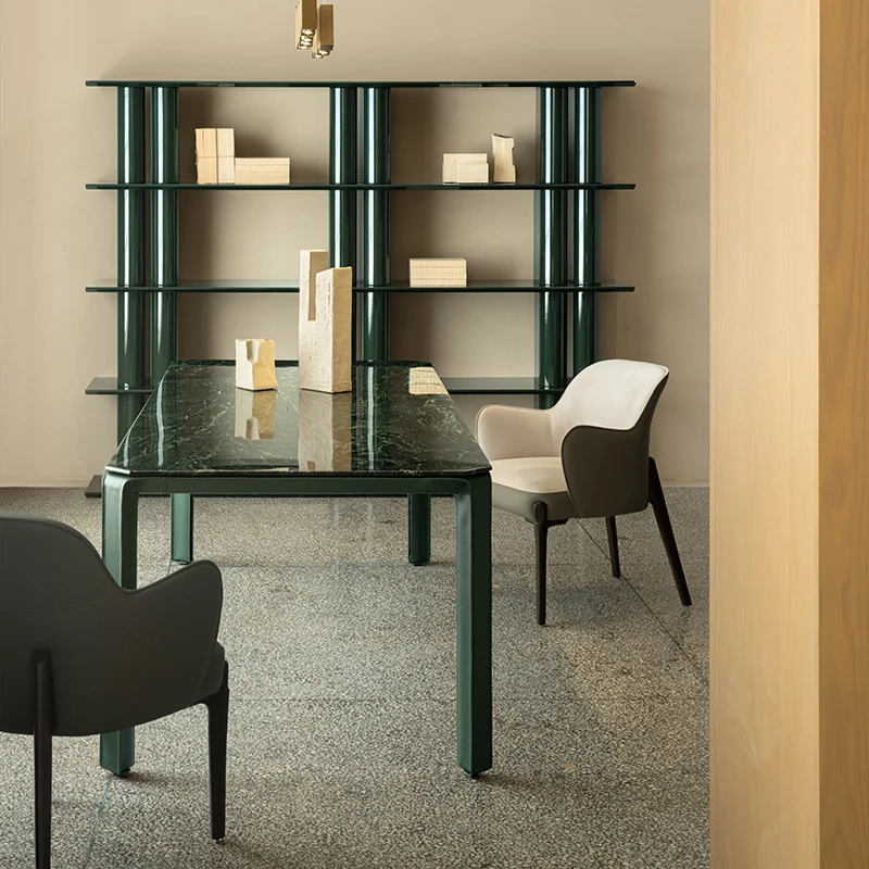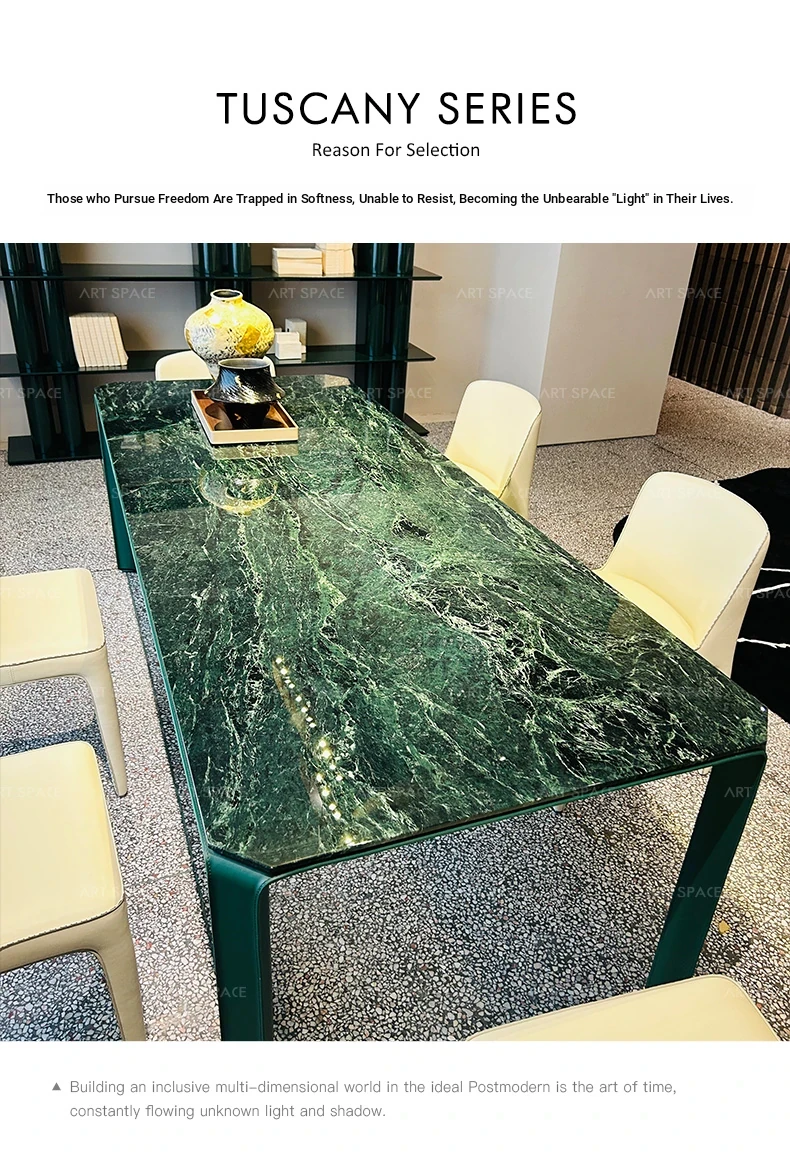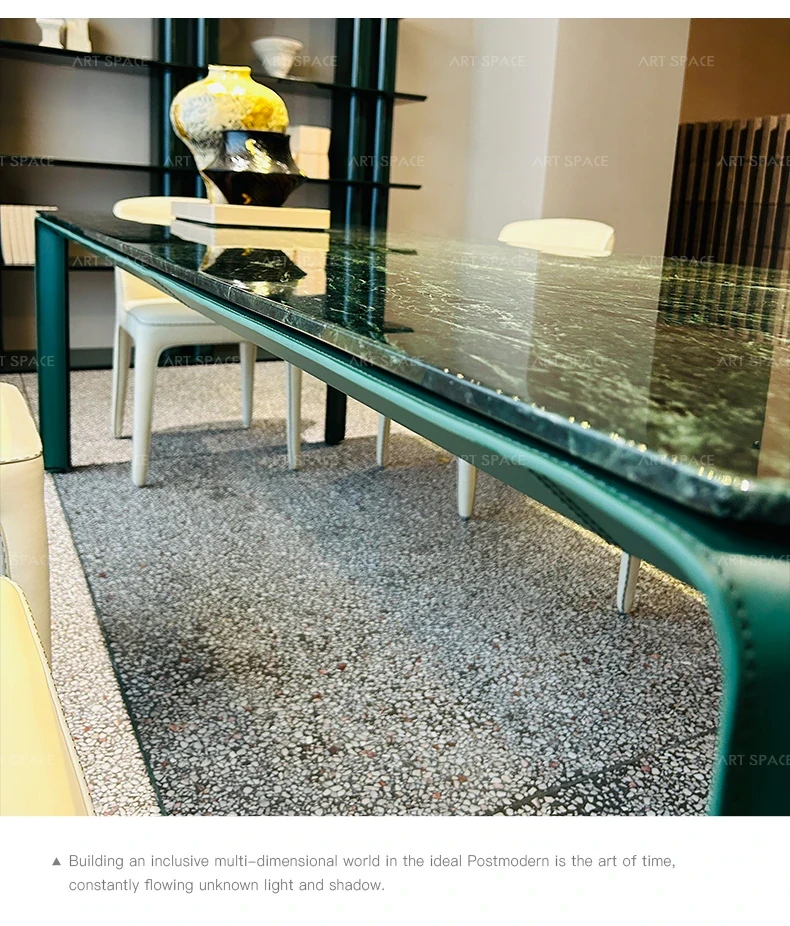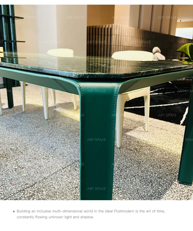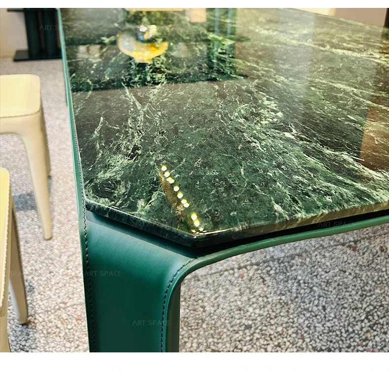 AS Selected TOLKO Collaboration: Original Italian Natural Marble Long Dining Table - Modern Minimalist Leather Luxury Stone Dining Table