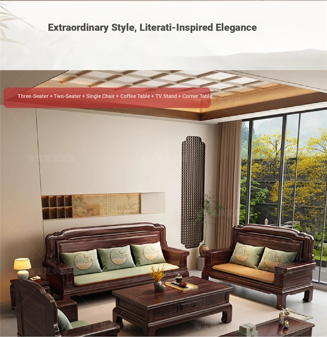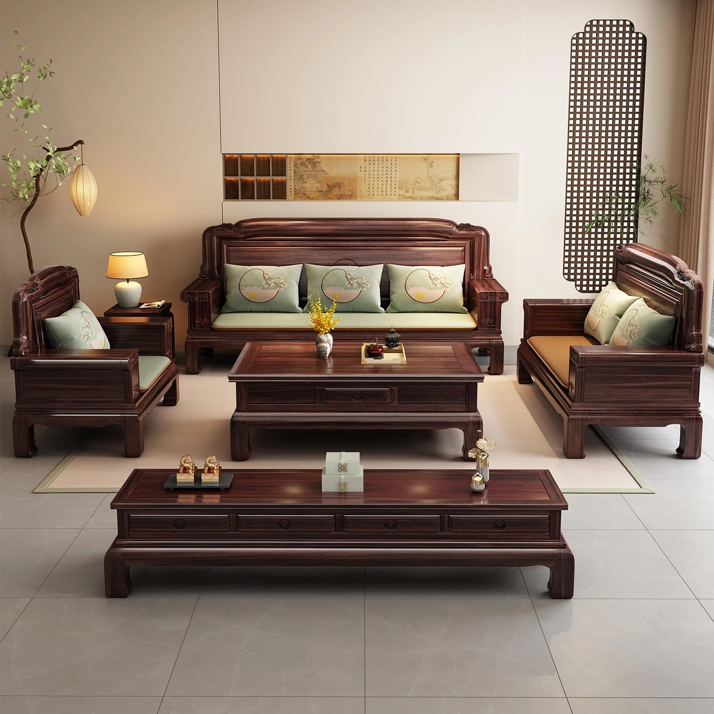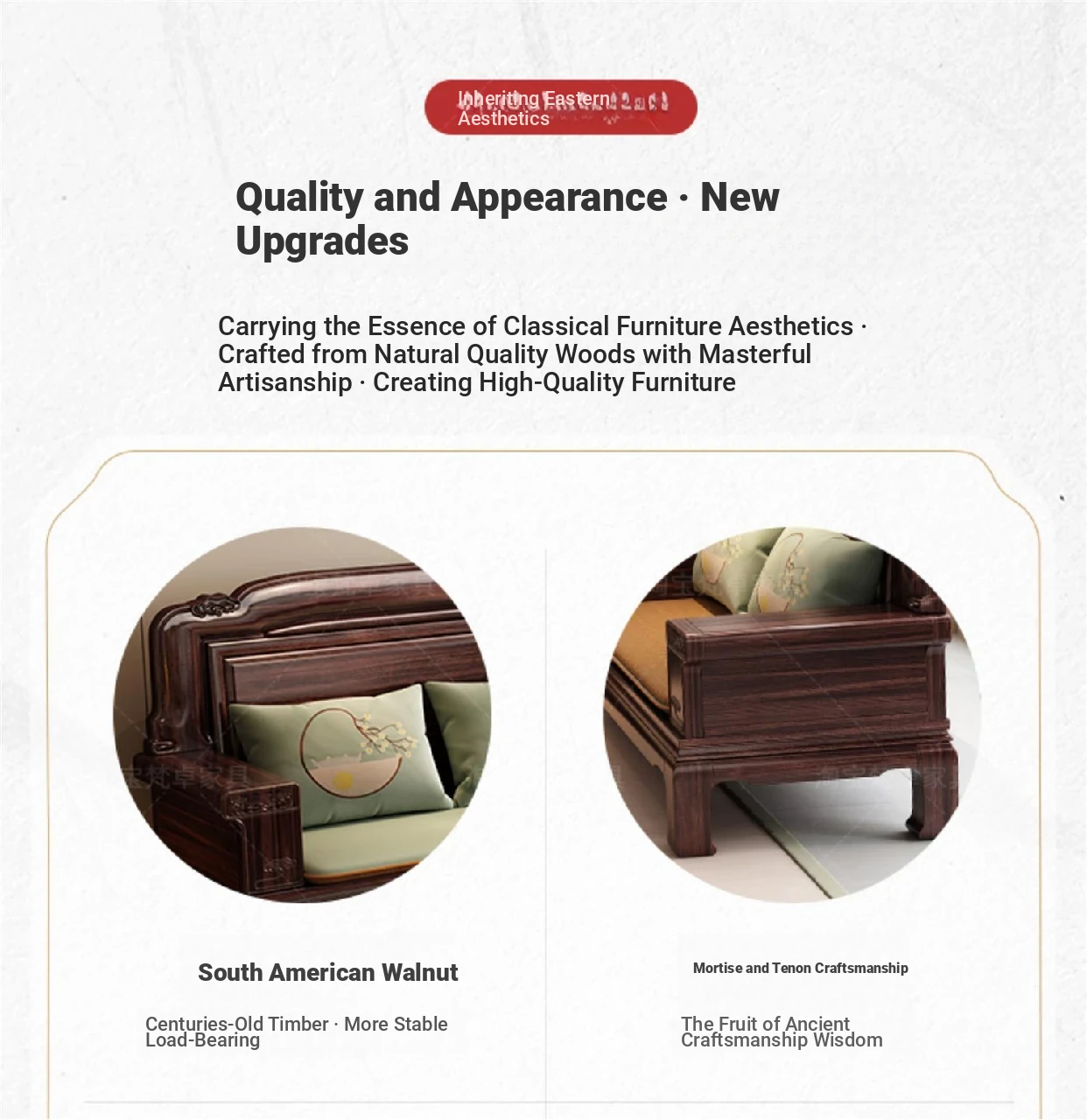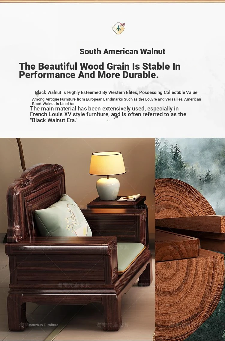 Classic Walnut Solid Wood Sofa Set - Versatile for Winter and Summer, Perfect for Villas and Spacious Living Rooms, Embrace National Style Furniture in Your Home