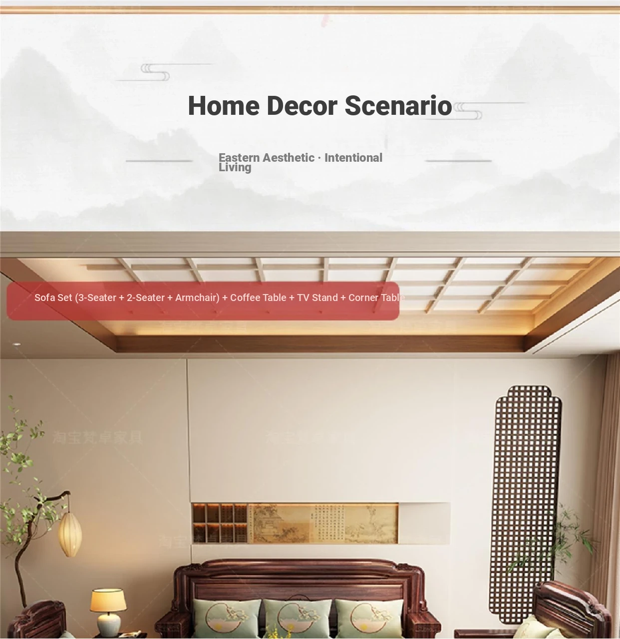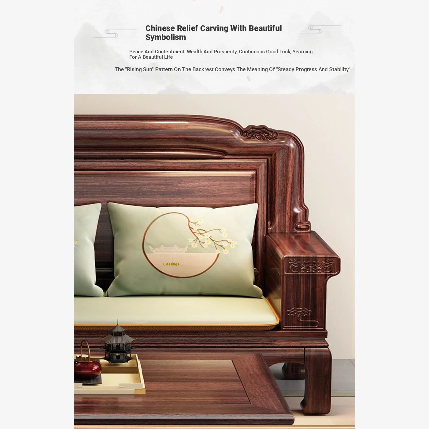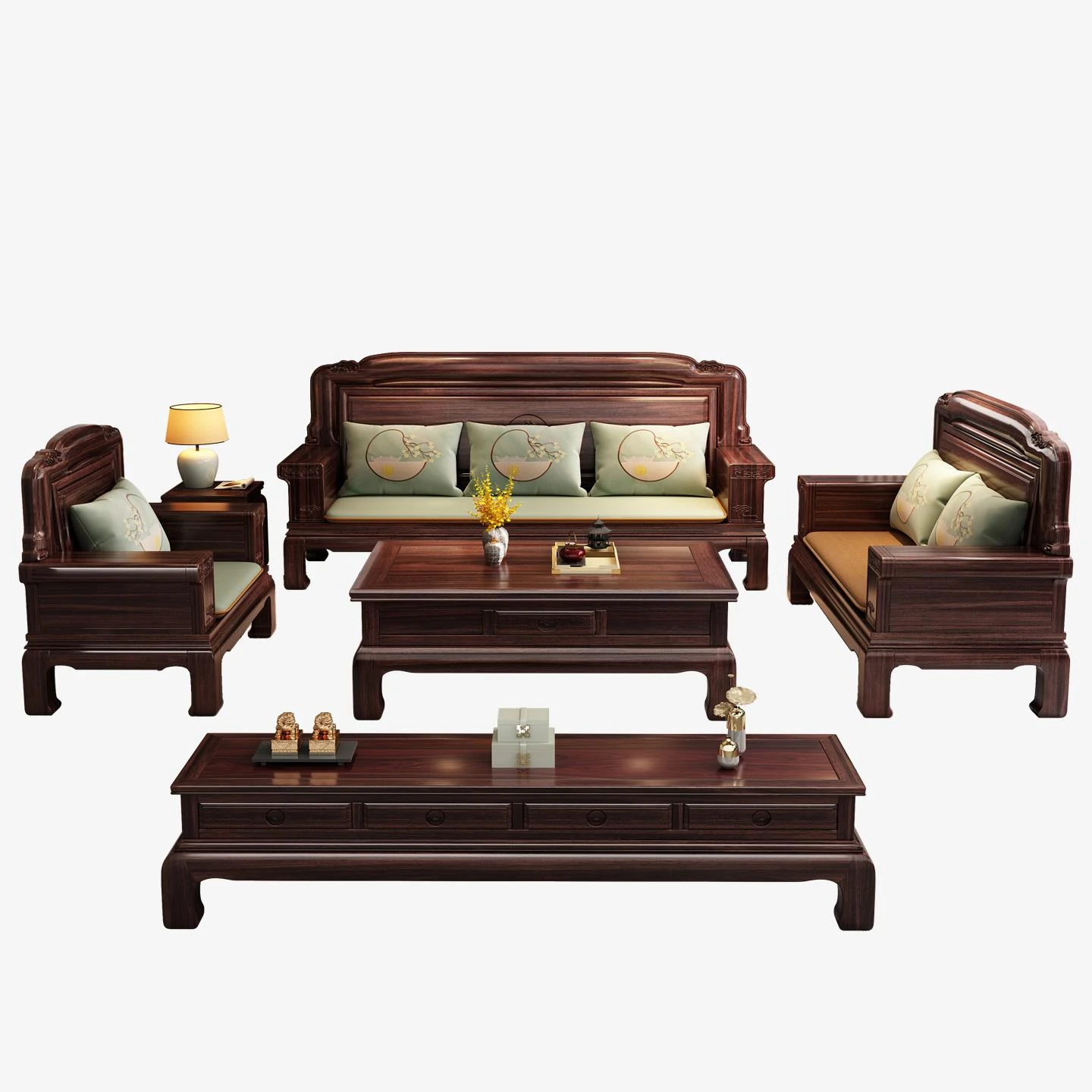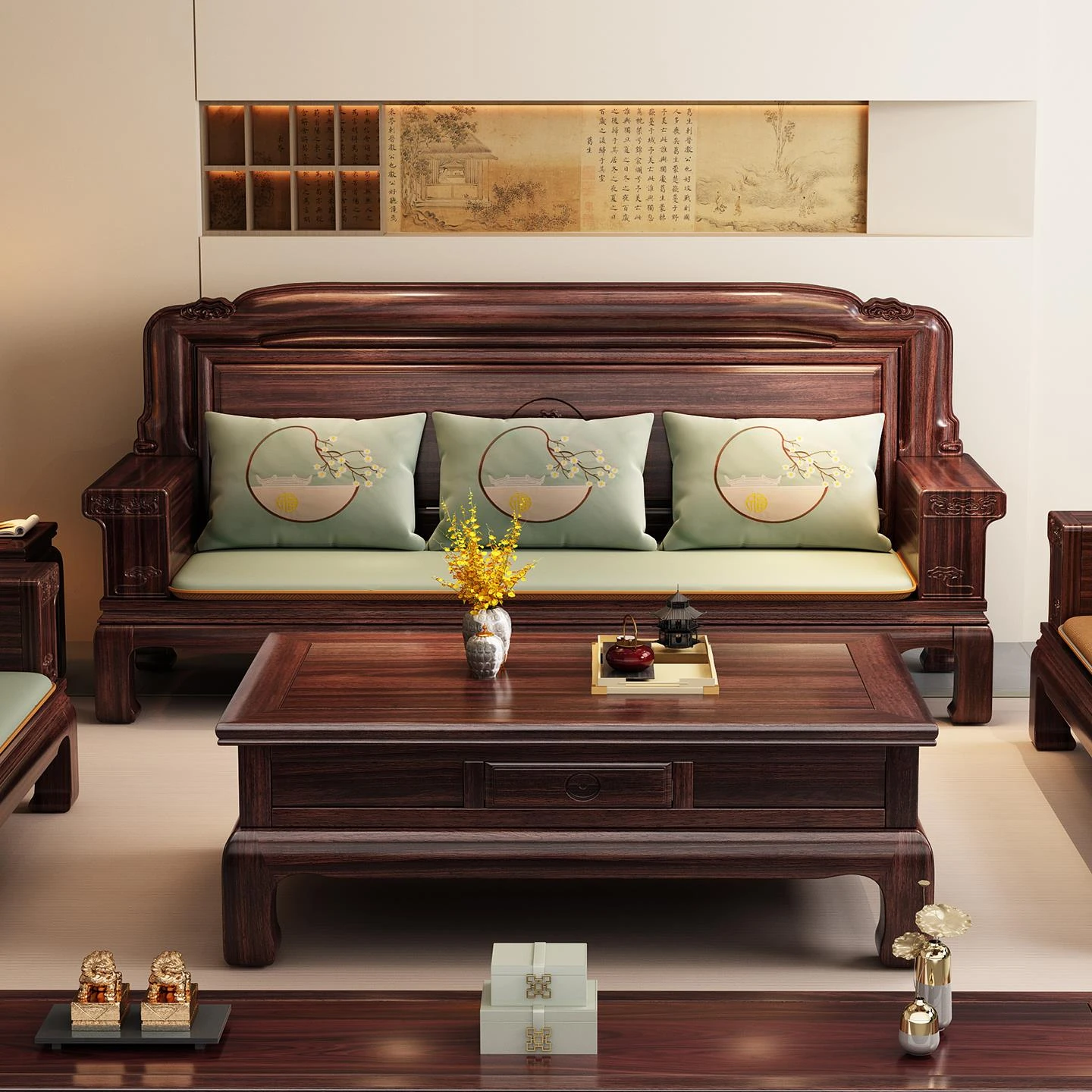 Classic Walnut Solid Wood Sofa Set - Versatile for Winter and Summer, Perfect for Villas and Spacious Living Rooms, Embrace National Style Furniture in Your Home