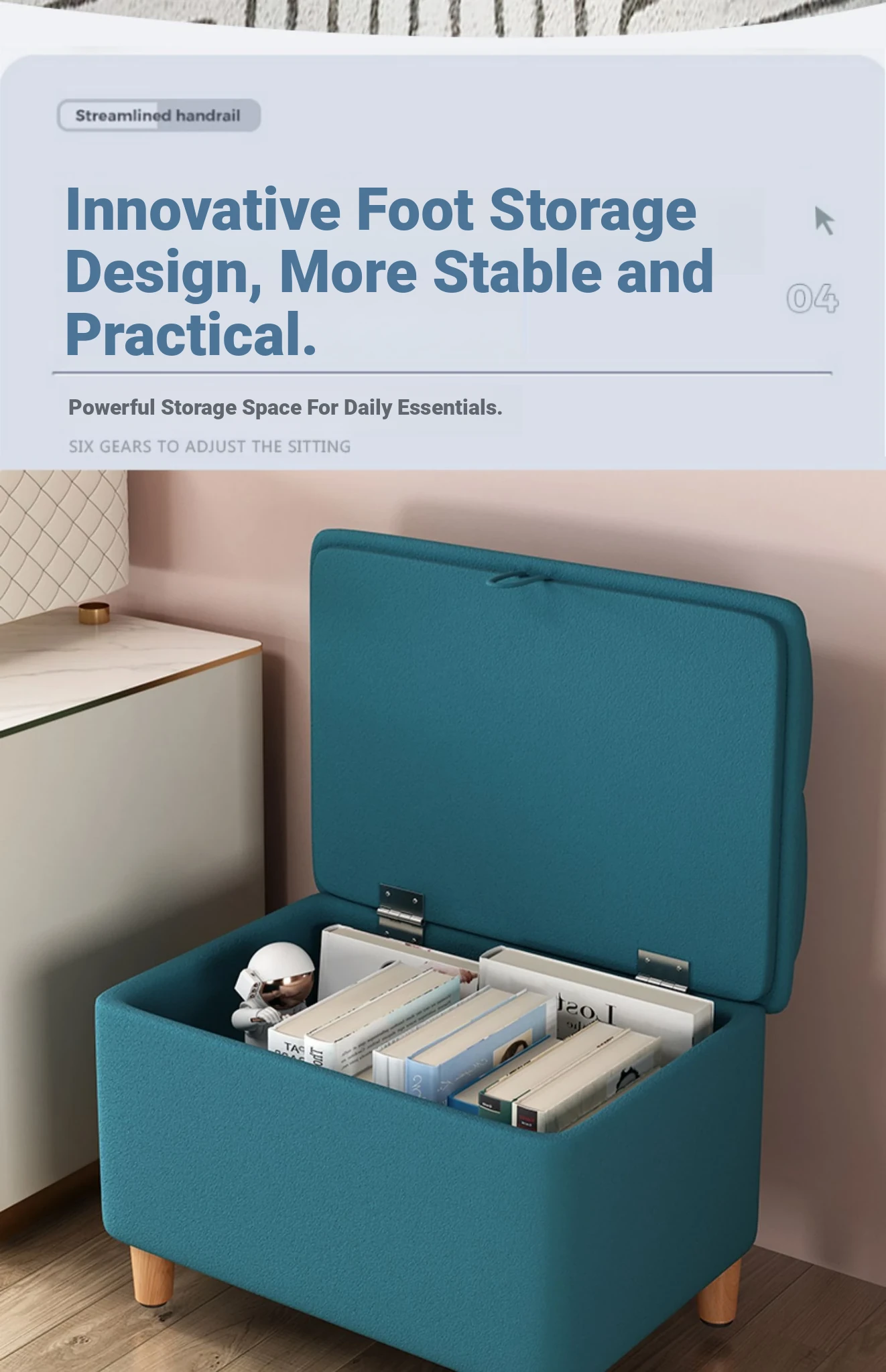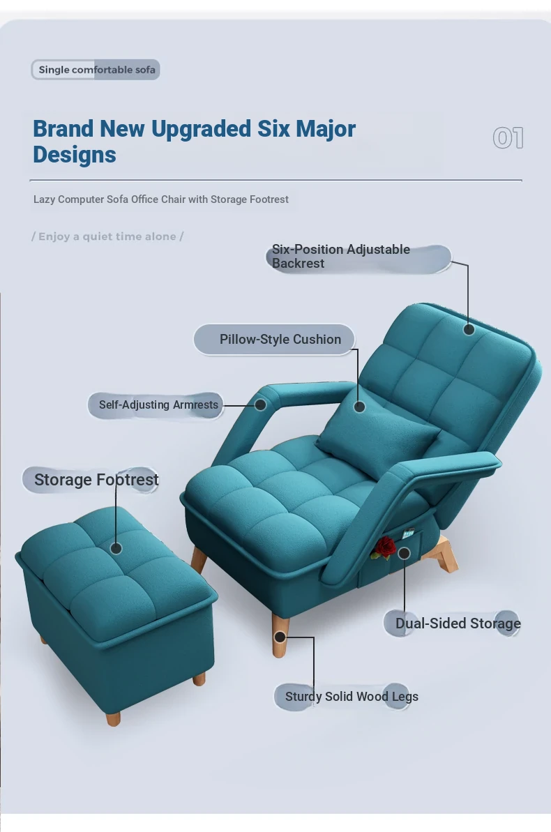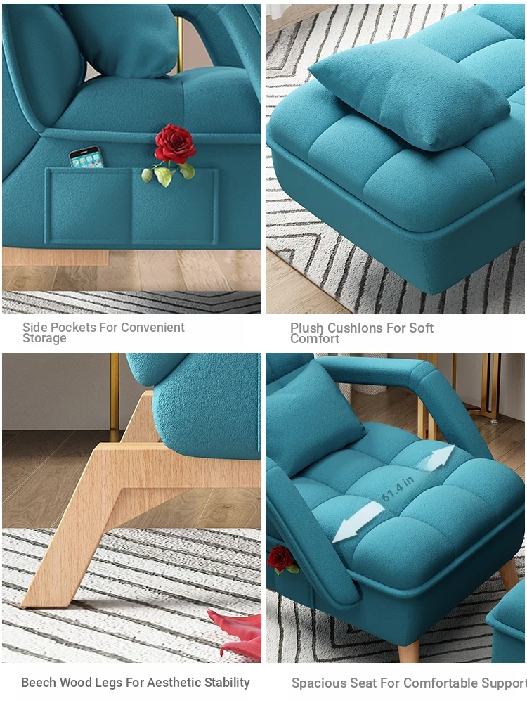 Upgraded latex lake blue sofa + pedal (Comfortable cotton and linen fabric)
