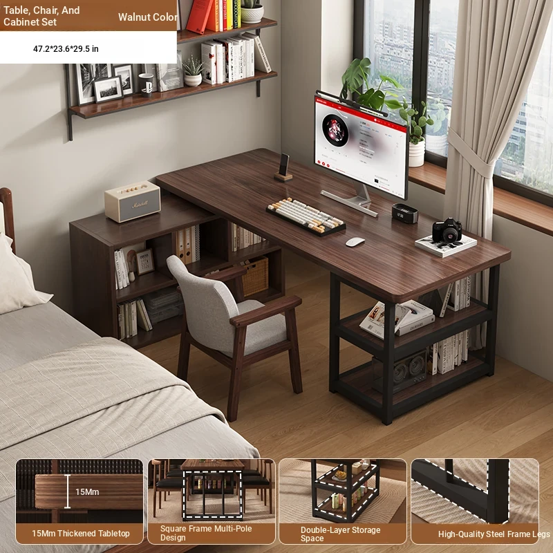 [Table and Chair Cabinet combination] steel frame leg black walnut color 47.24in*23.62in