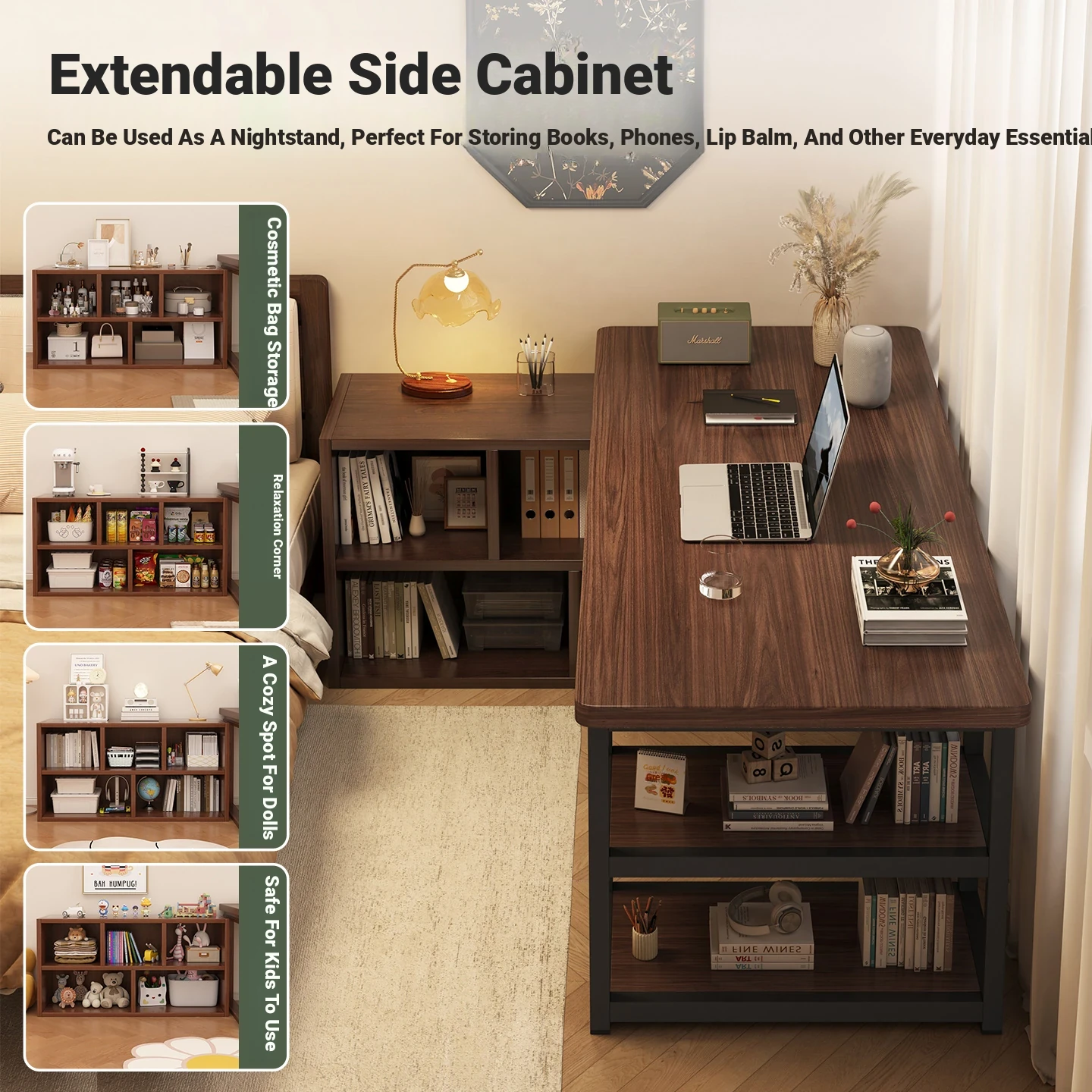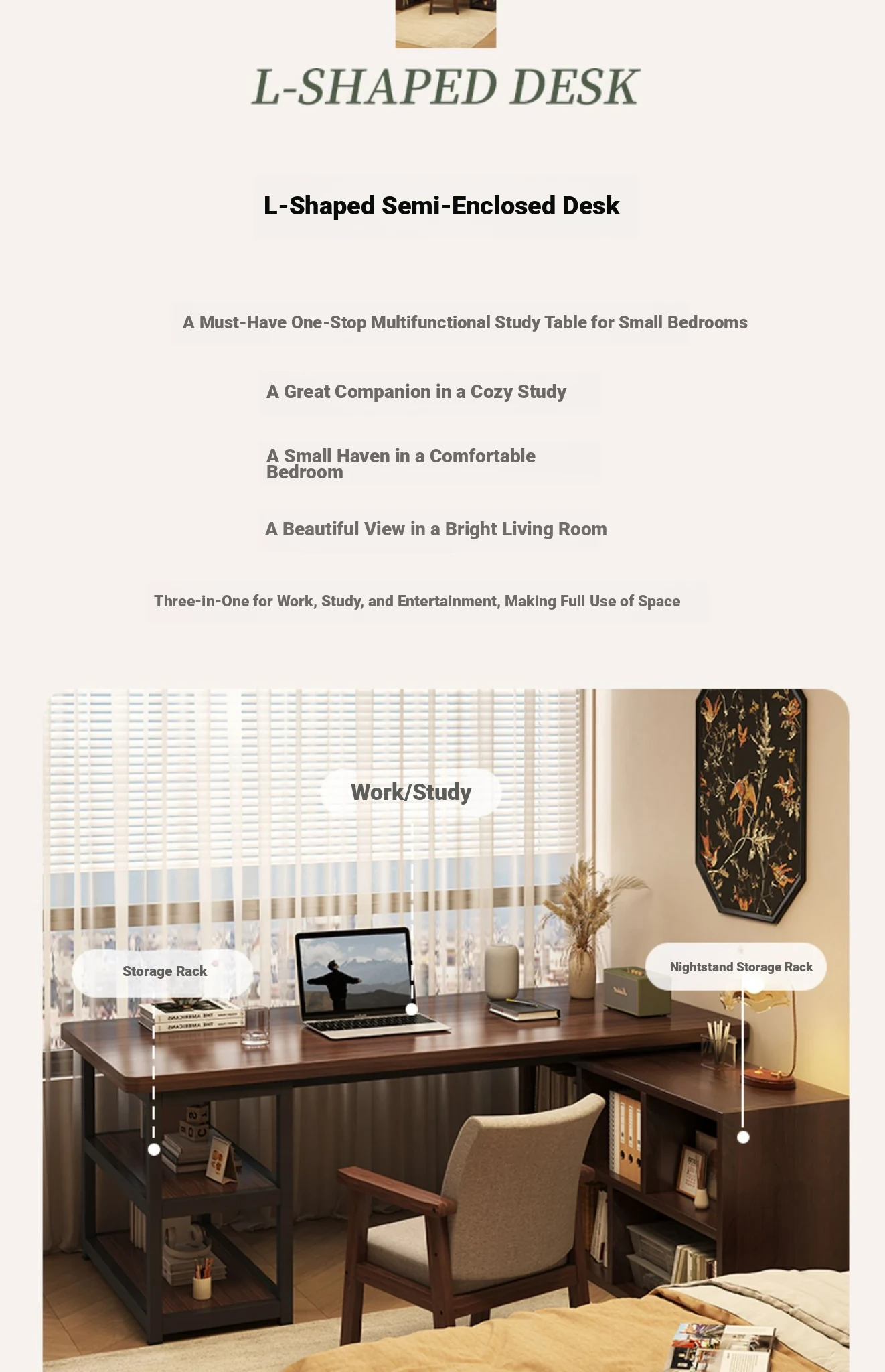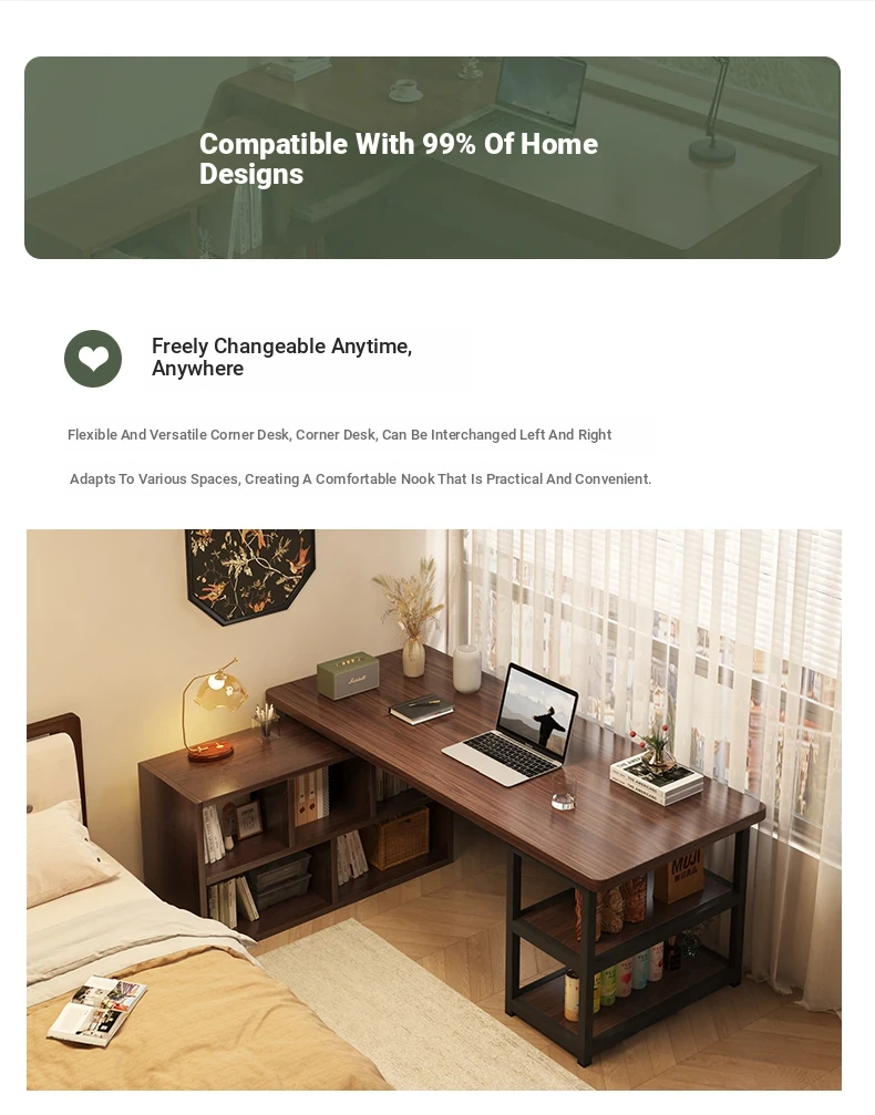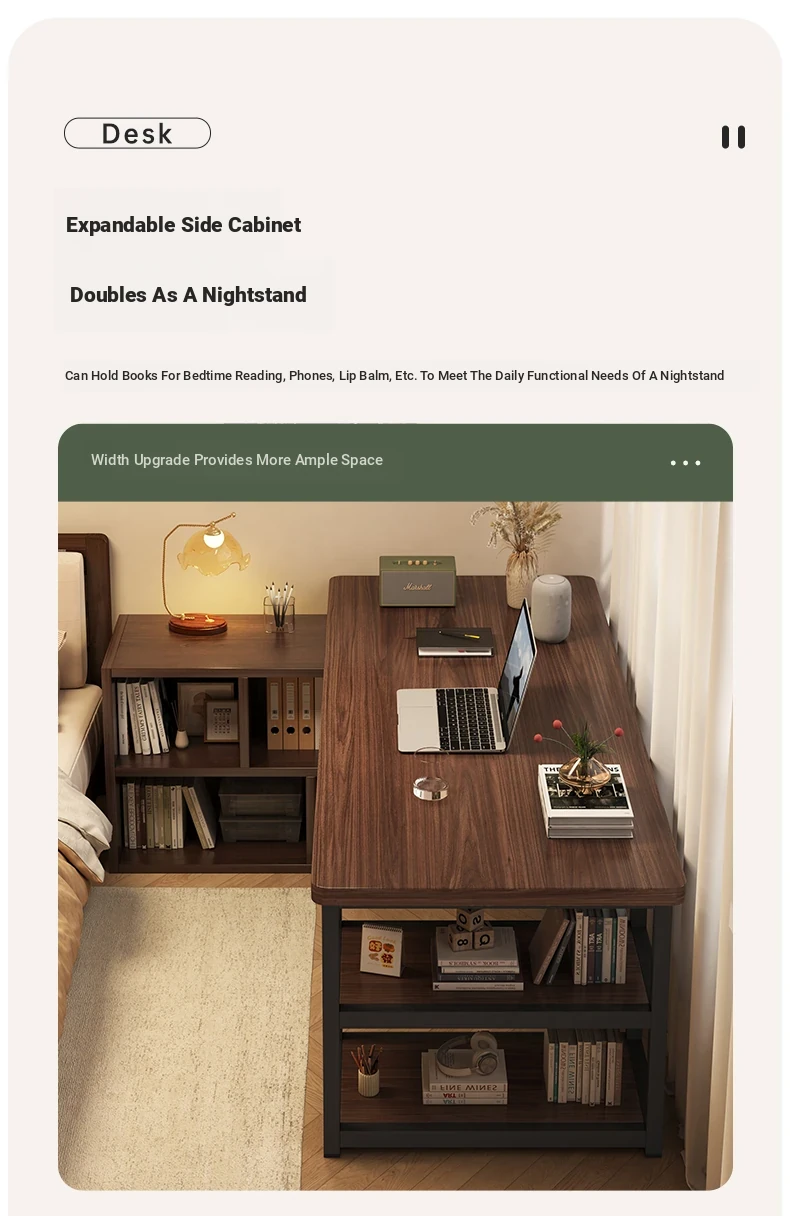 Compact Bedroom Corner Desk with Bookshelf and Nightstand - Space-Saving Wall-Mounted Design Perfect for Small Apartments and Versatile Living Rooms