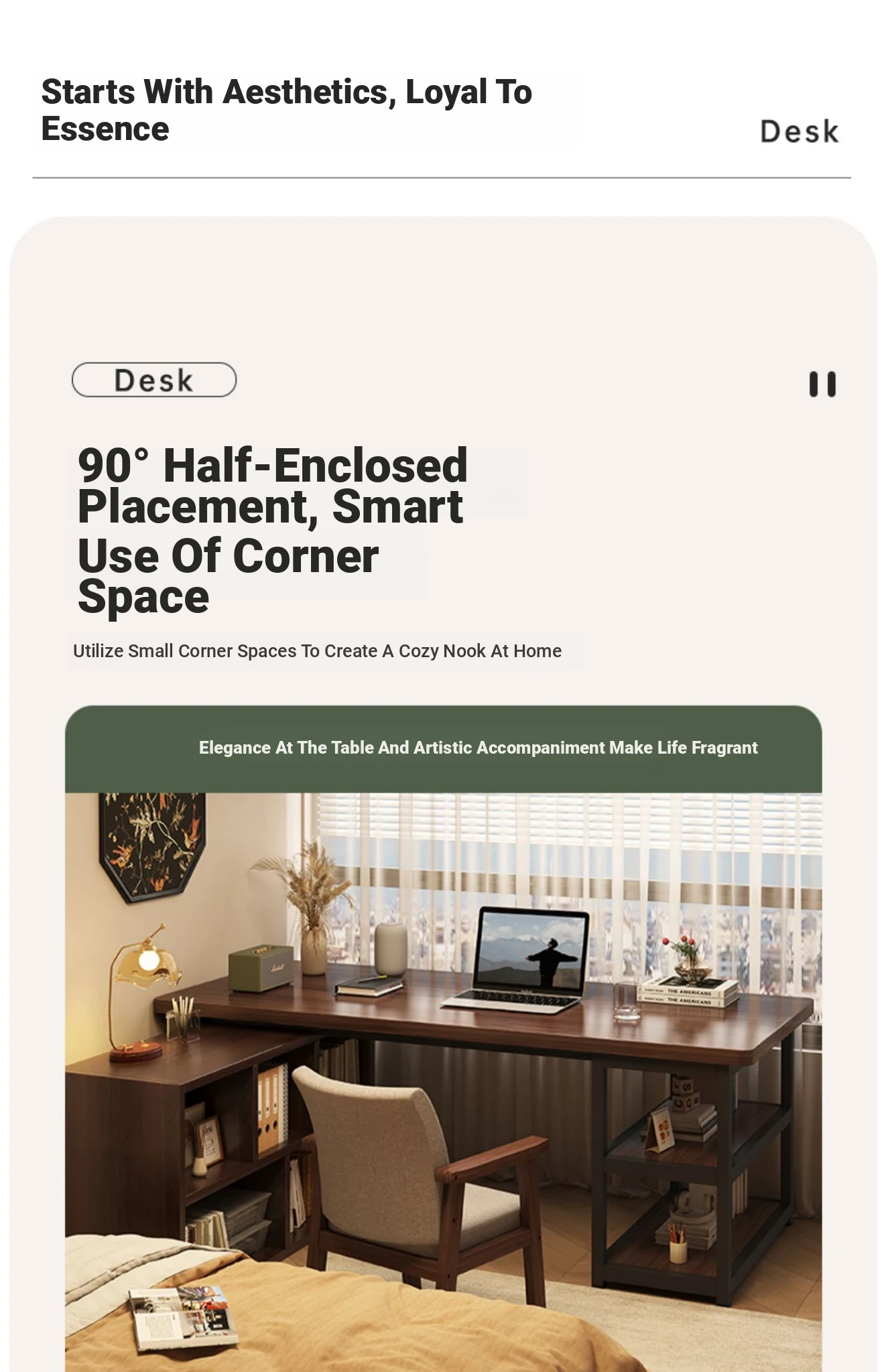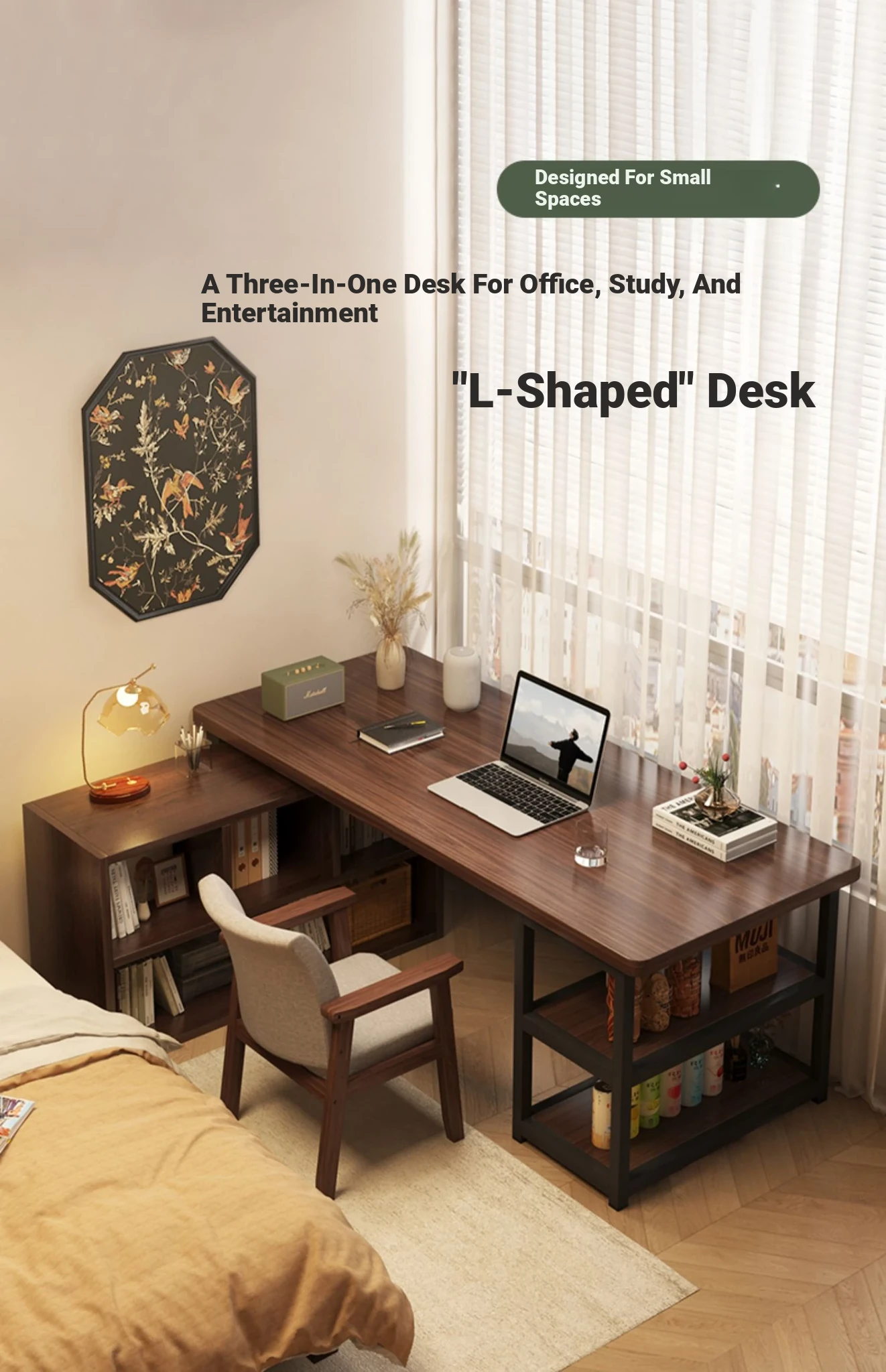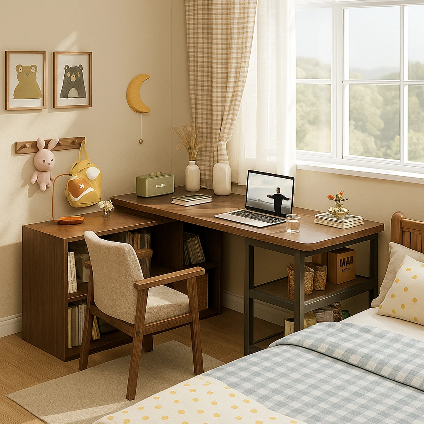 Compact Bedroom Corner Desk with Bookshelf and Nightstand - Space-Saving Wall-Mounted Design Perfect for Small Apartments and Versatile Living Rooms