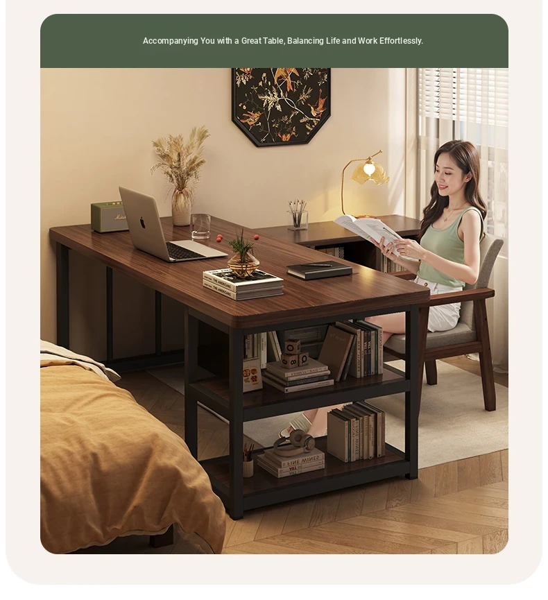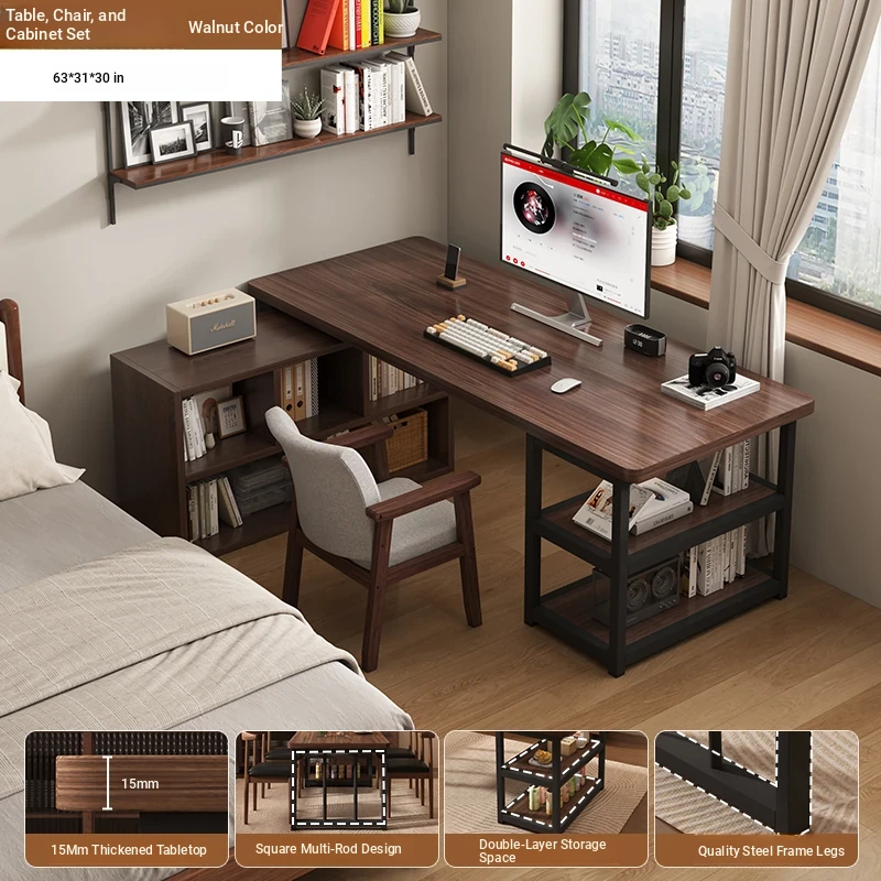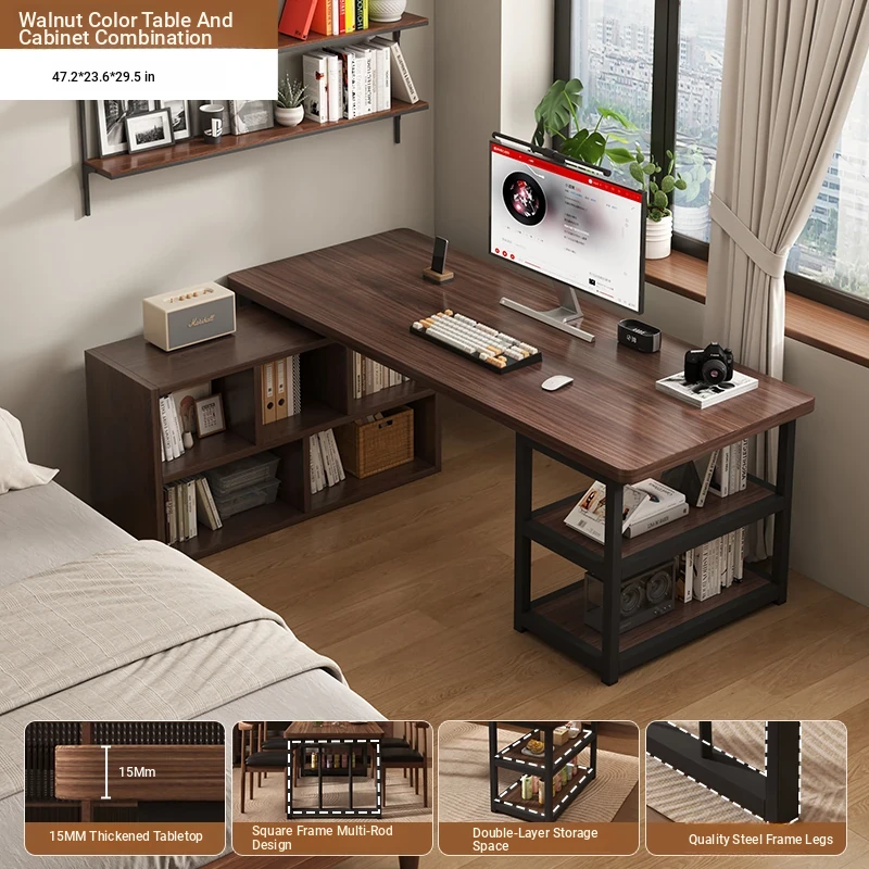 [Table cabinet combination] steel leg black walnut color 55.12in*27.56in