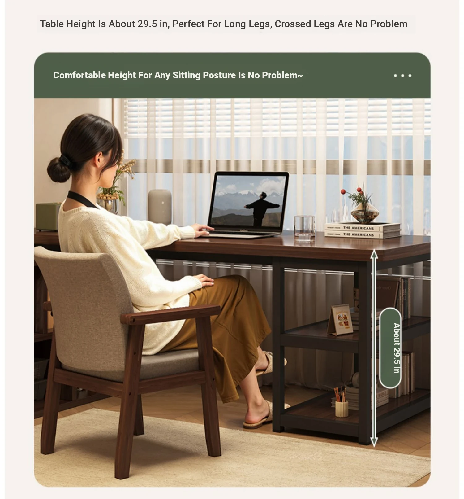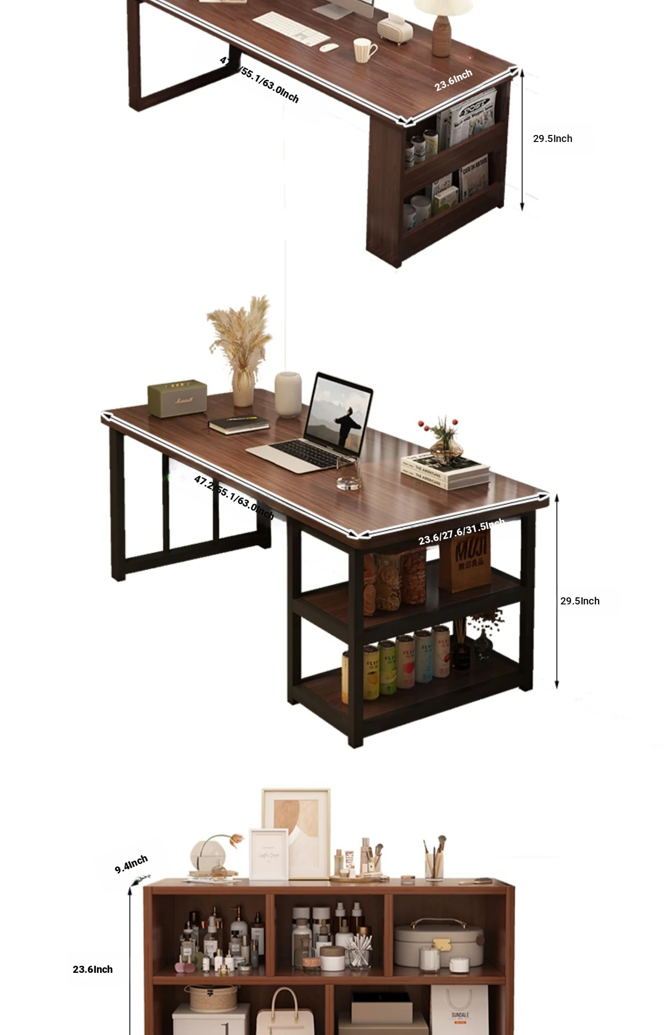 [Table cabinet combination] steel frame leg black walnut color 47.24in*23.62in