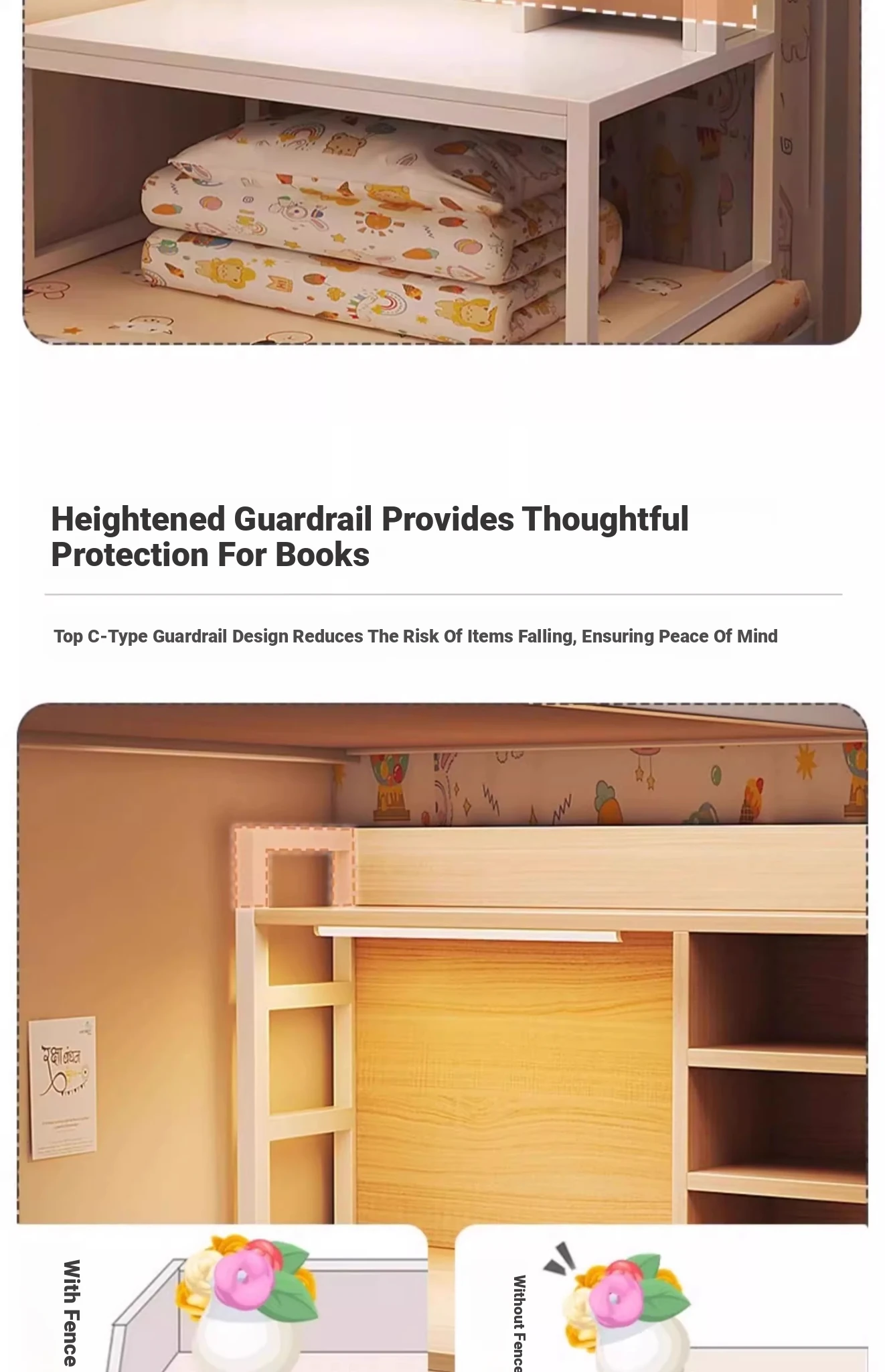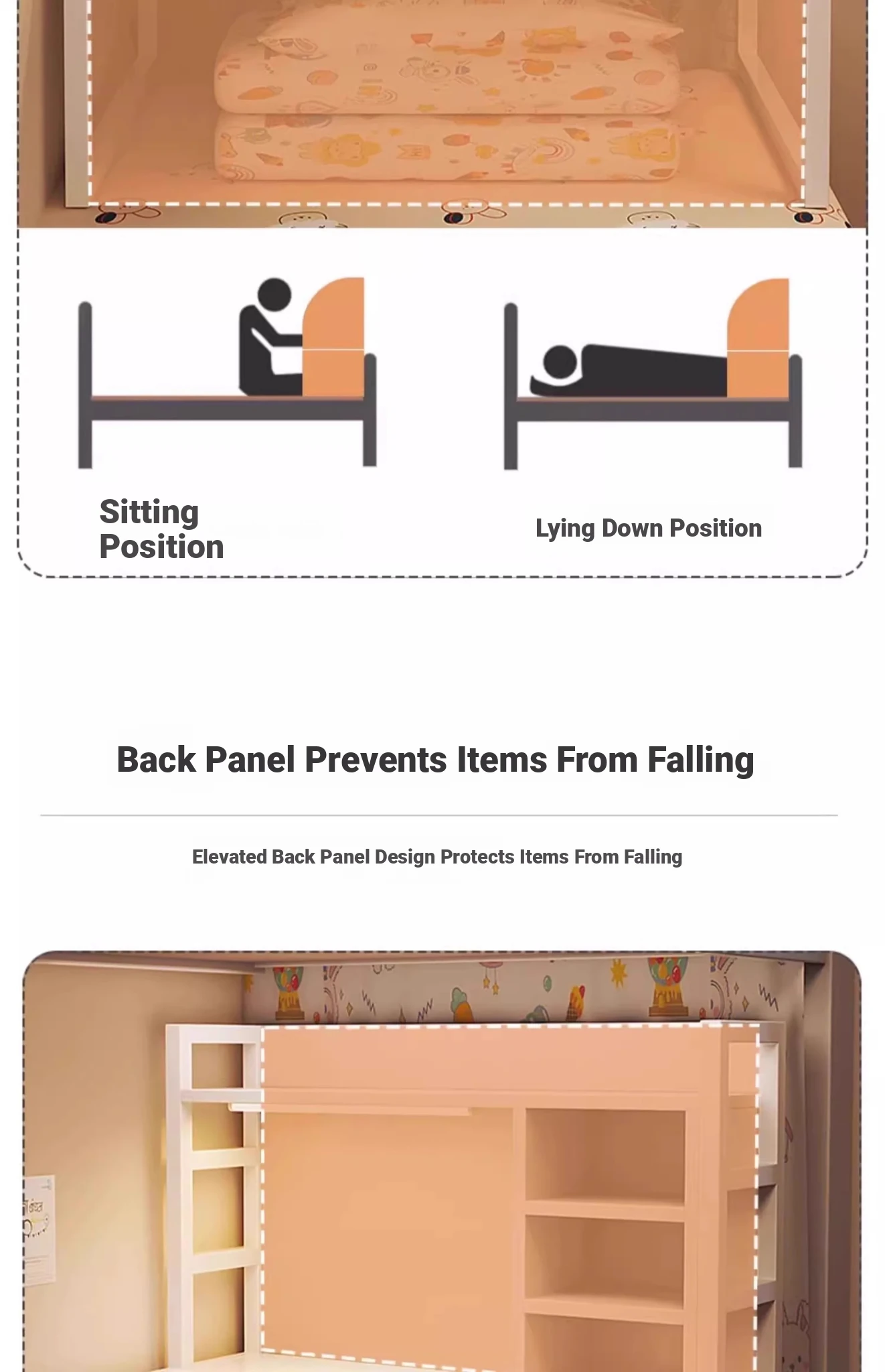 [Full back + Movable bookshelf] warm white 31.50in*15.75in*33.86in⭐Bunk Neutral