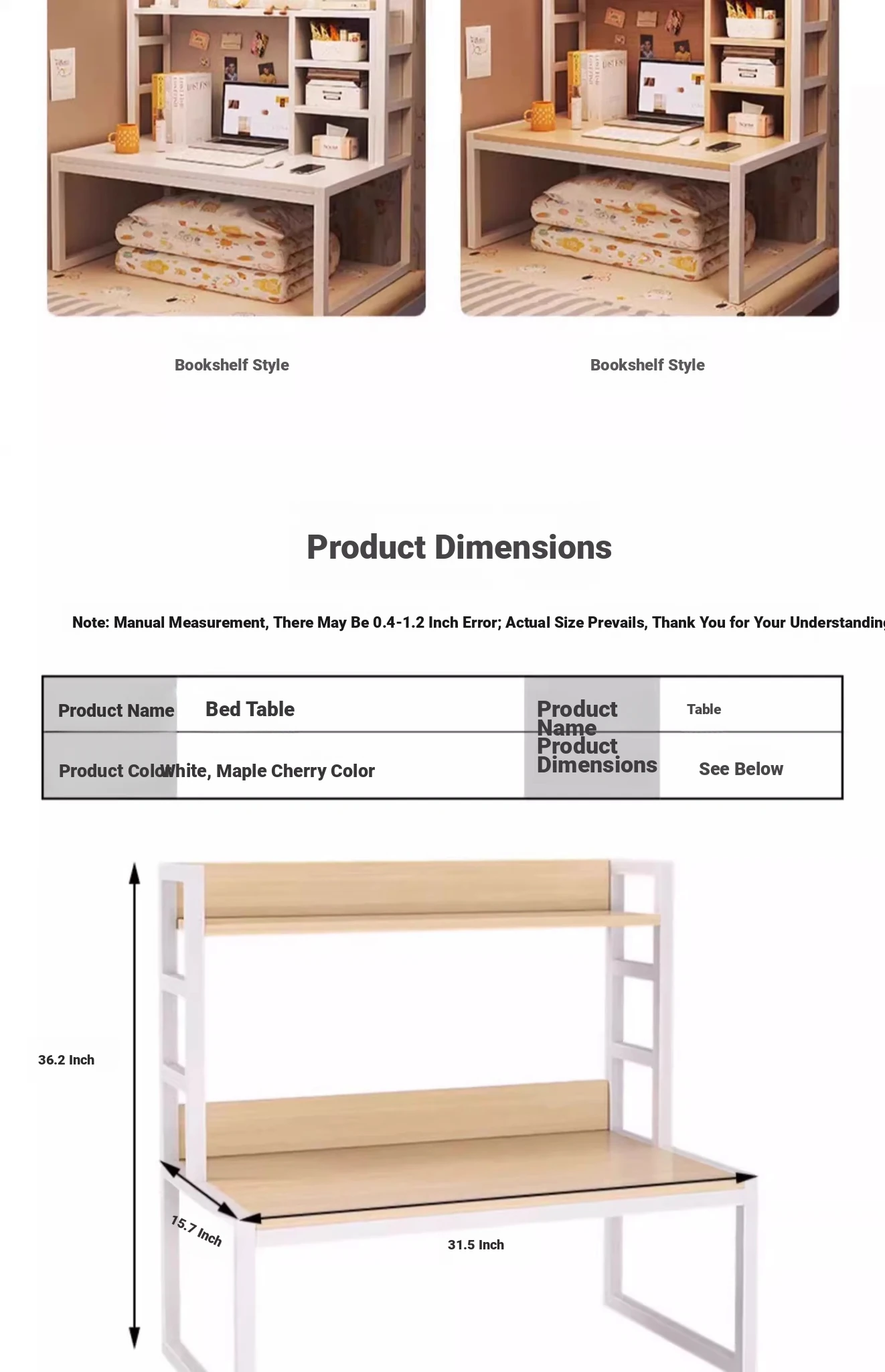 [Full back + Movable bookshelf + LED lamp] Maple cherry wood color 31.50in*15.75in*33.86in⭐Bunk Neutral