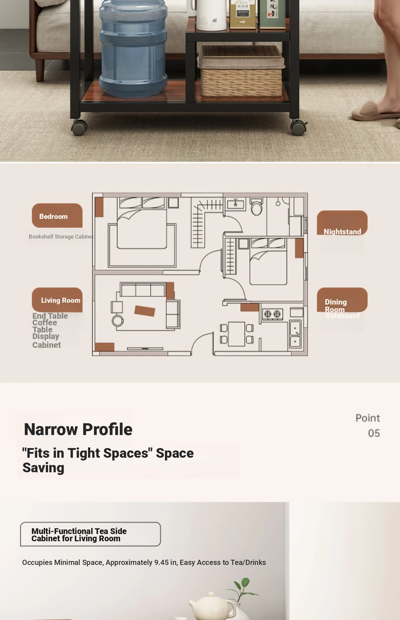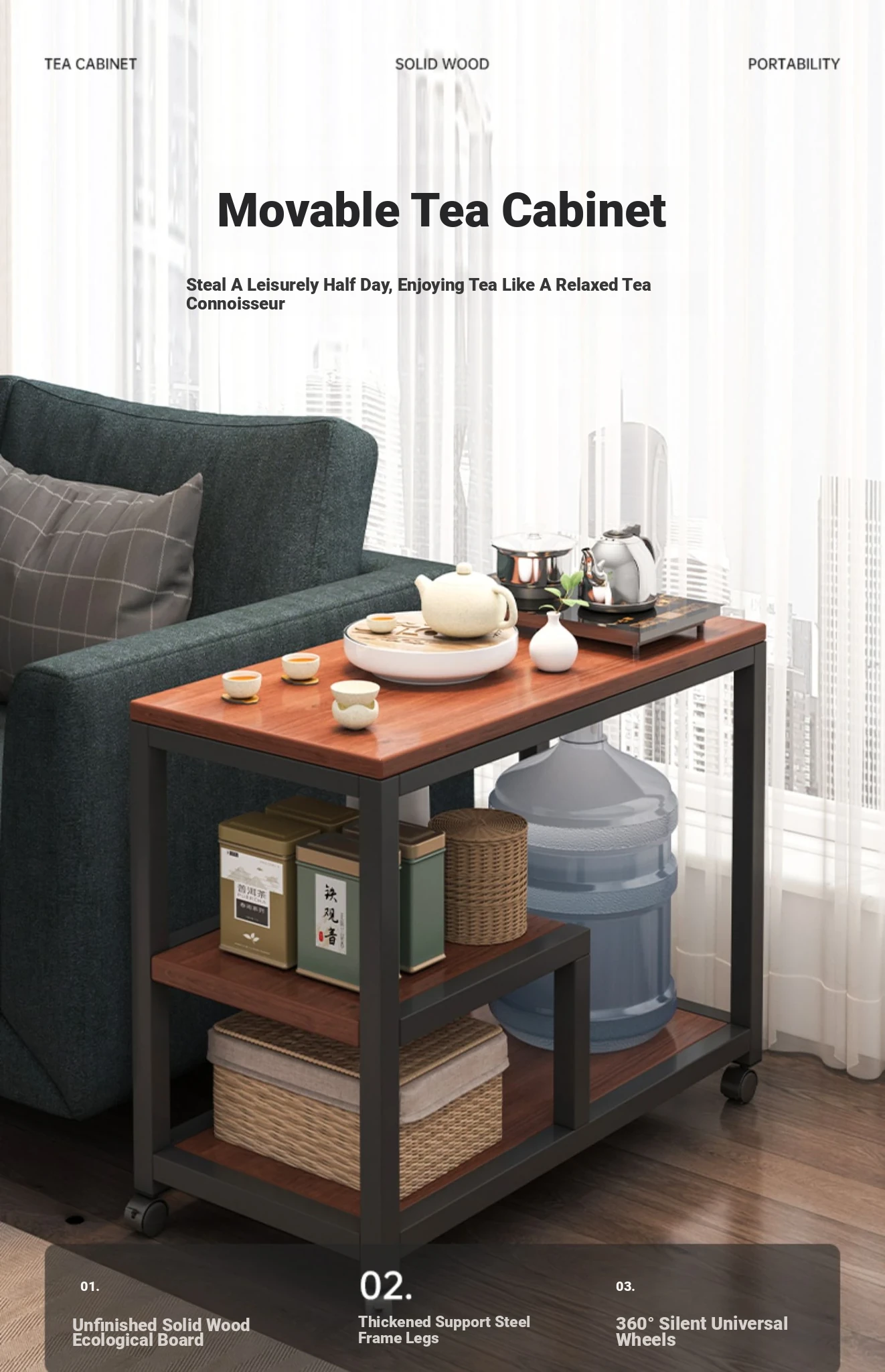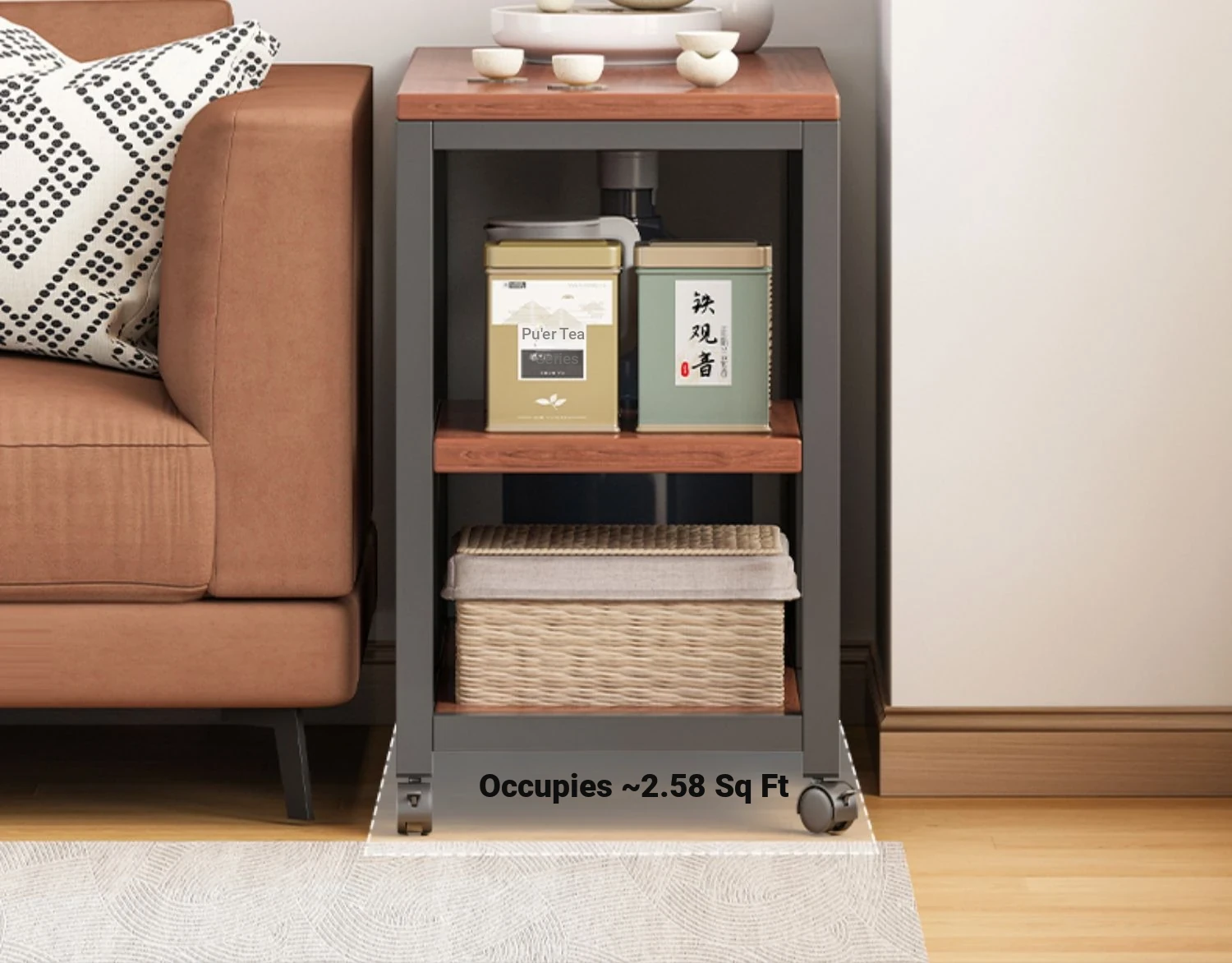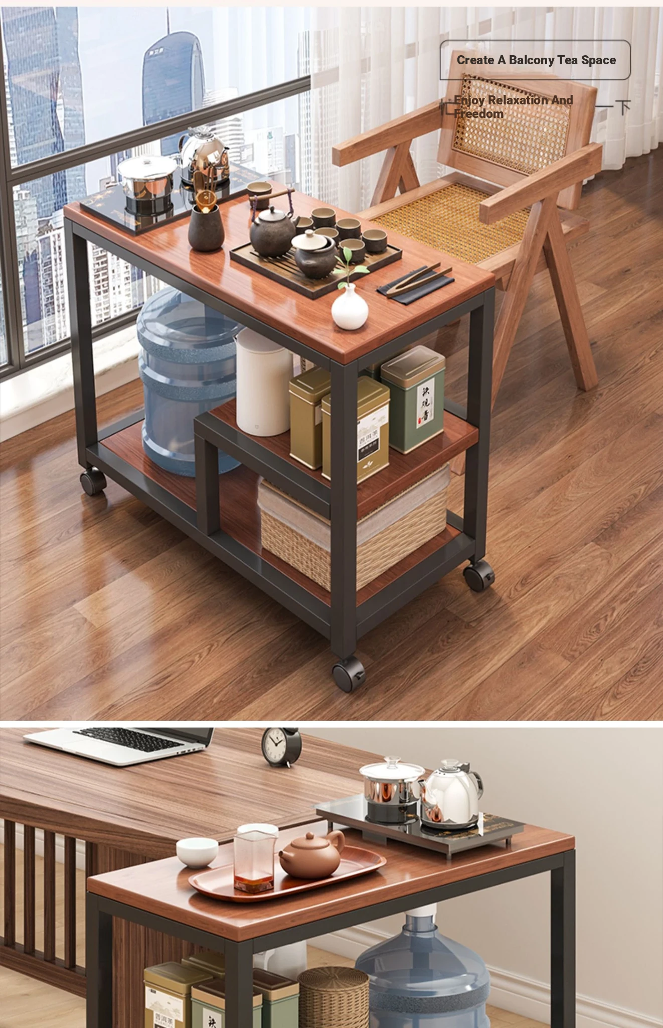 Compact Folding Tea Table with Kettle - Ideal for Small Spaces, Balconies, and Living Rooms - Stylish and Functional Tea Station for Home Use