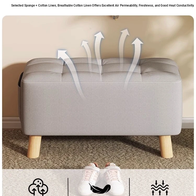 [Bench sofa stool] light gray cotton