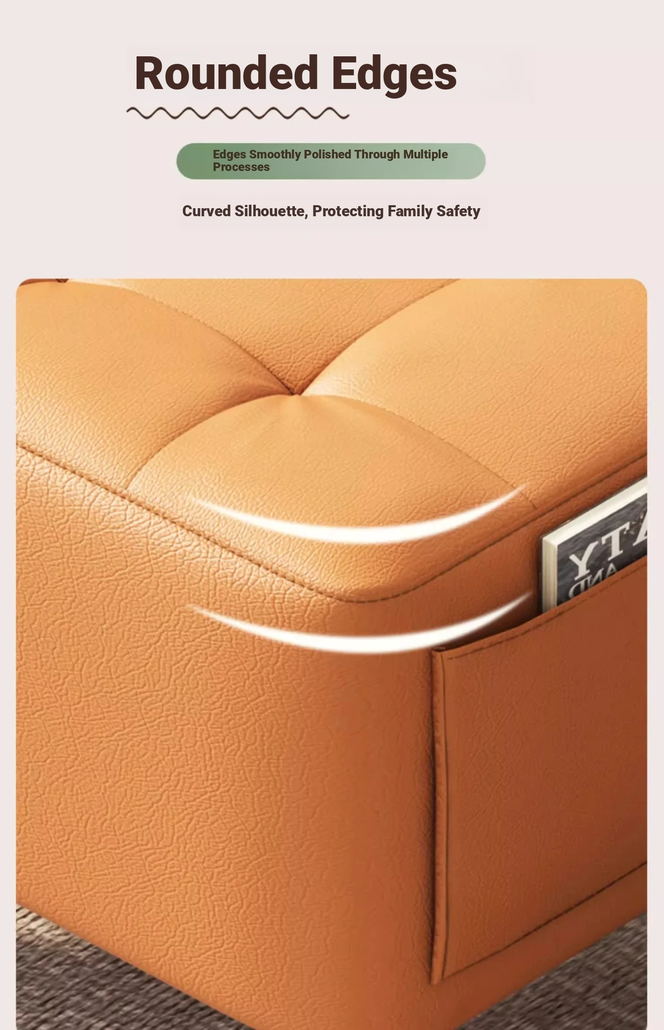 Solid wood frame★Pu skin] Rice White 15.75in*11.02in*9.06in