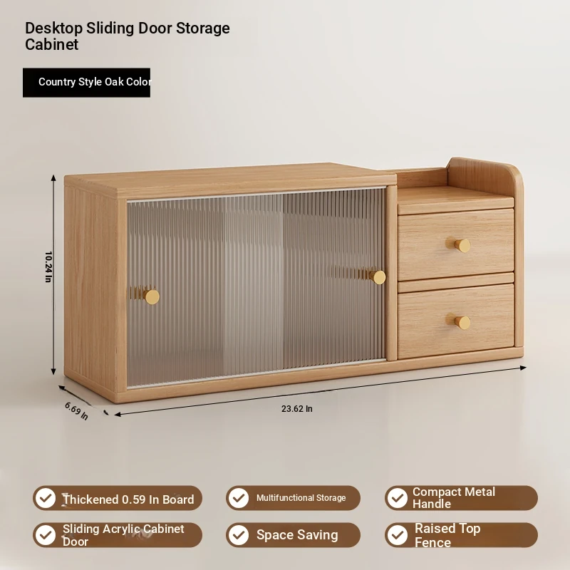 [Hot three-layer double sliding door] Pastoral oak color 18.90in*9.45in*21.26in-thickened 0.59in